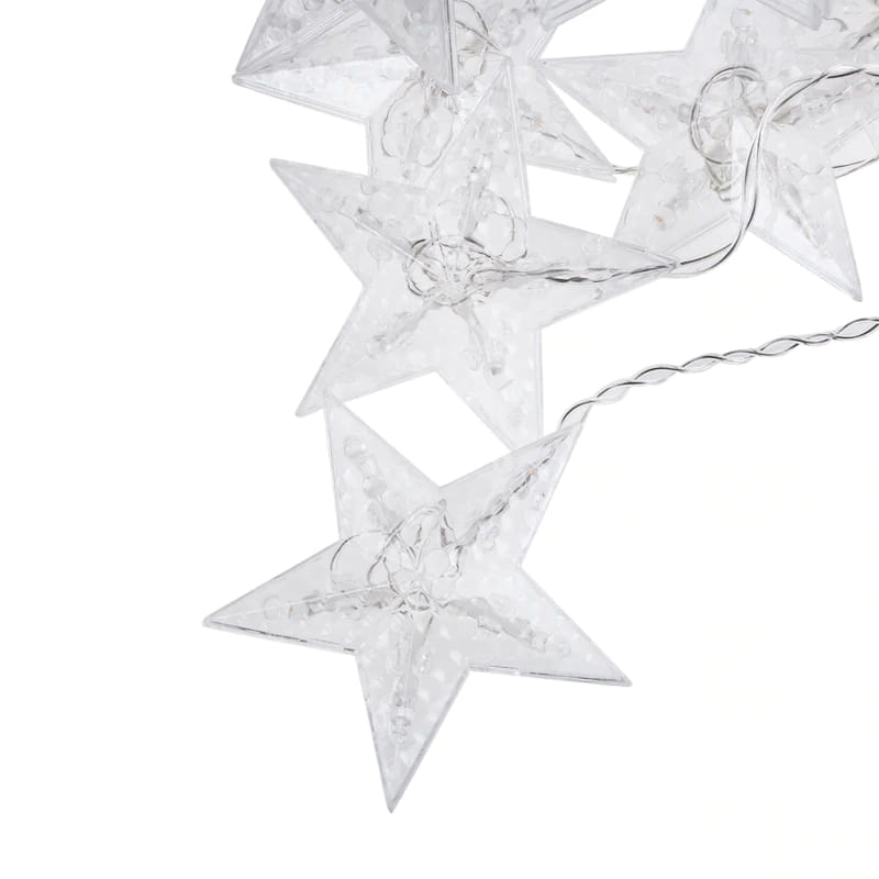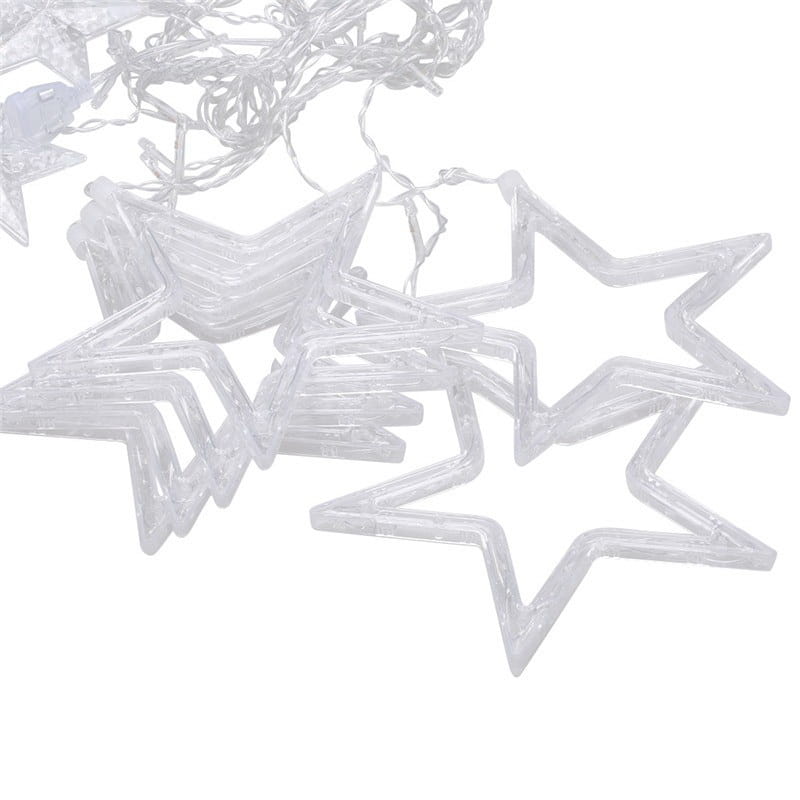 Wiszące lampki LED GWIAZDY. Kurtyna z gwiazdkami składa się z 6 dużych i 5 małych gwiazdek zawieszonych na różnych wysokościach. Jest to świetna ozdoba, która nada Twojemu wnętrzu magicznego charakteru świąt!