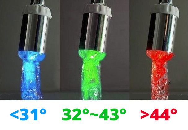 Fabrycznie nowa, wysokiej jakości nakładka świecąca na kran. Wzbogaca zwykły, nudny kran o fascynującą grę świateł czerwonych, zielonych lub niebieskich - zależnie od temperatury płynącej wody!