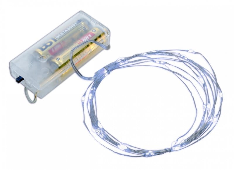 50 MIKRO LED DRUCIK LAMPKI NA BATERIE BIAŁE ZIMNE Mikro Żyłki ŚWIATEŁKA