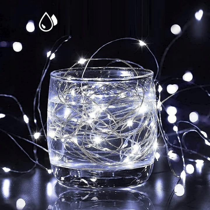 Lampki choinkowe LED na cienkim srebrnym druciku zasilane bateriami 3 x AA ( paluszki ). Idealnie sprawdzą się jako ozdoba świąteczna. Oświetlenie doskonale nadaje się do dekoracji ślubnych, pokoju dziecięcego, podświetlania wazonów itp. Można je stosować do wewnątrz i na zewnątrz. Źródłem światła są diody LED które cechuje niski pobór prądu i długa żywotność