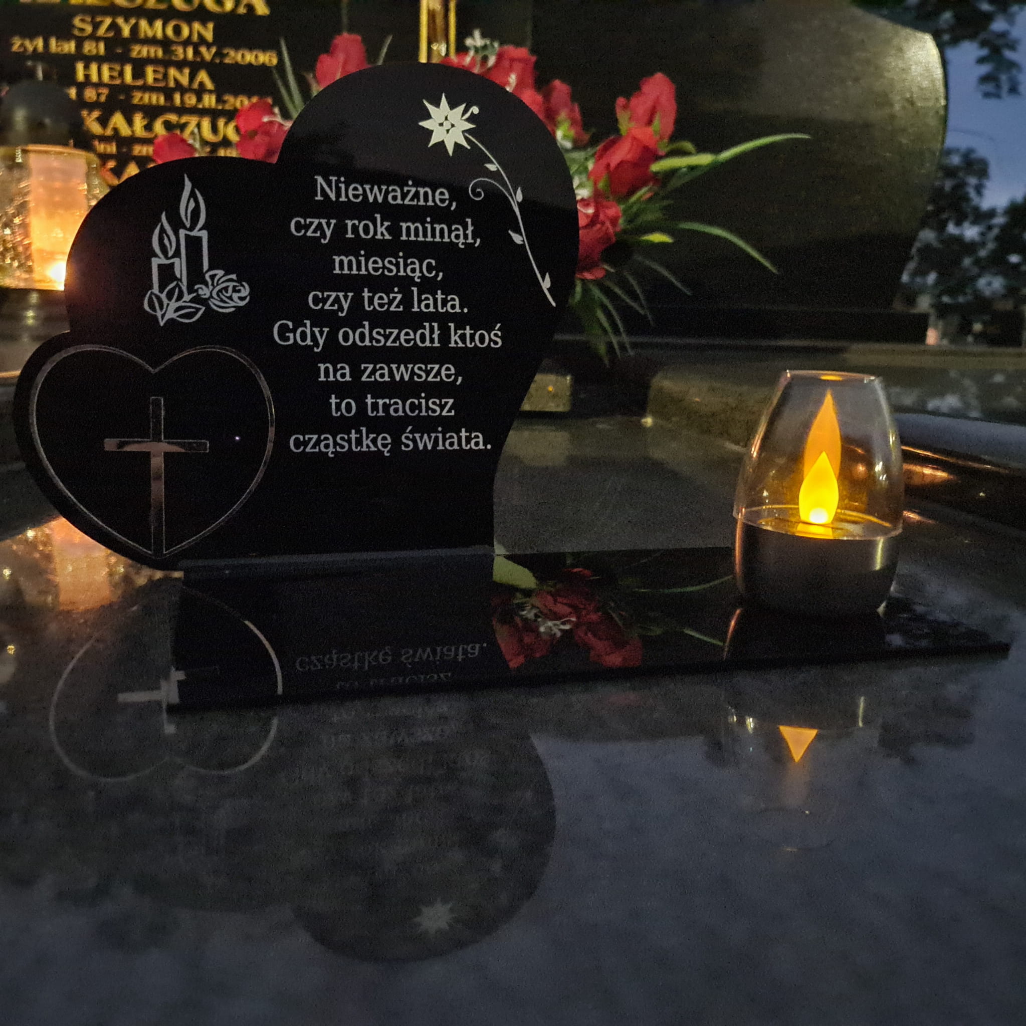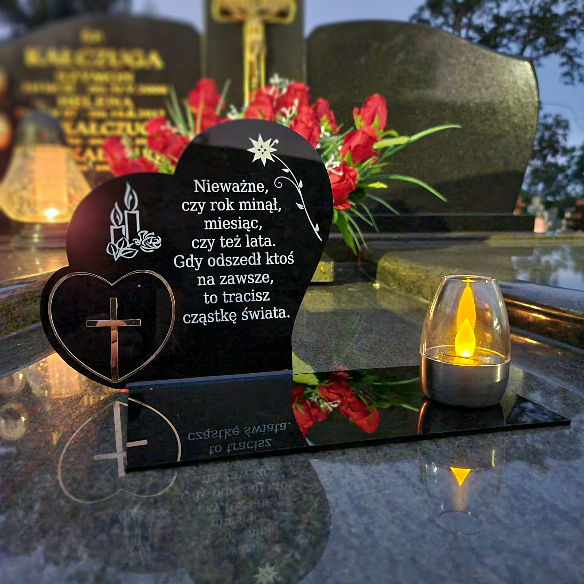 ZNICZ SOLARNY z Grawerem Wieczna Lampka Latarenka LED STATUETKA na GRÓB