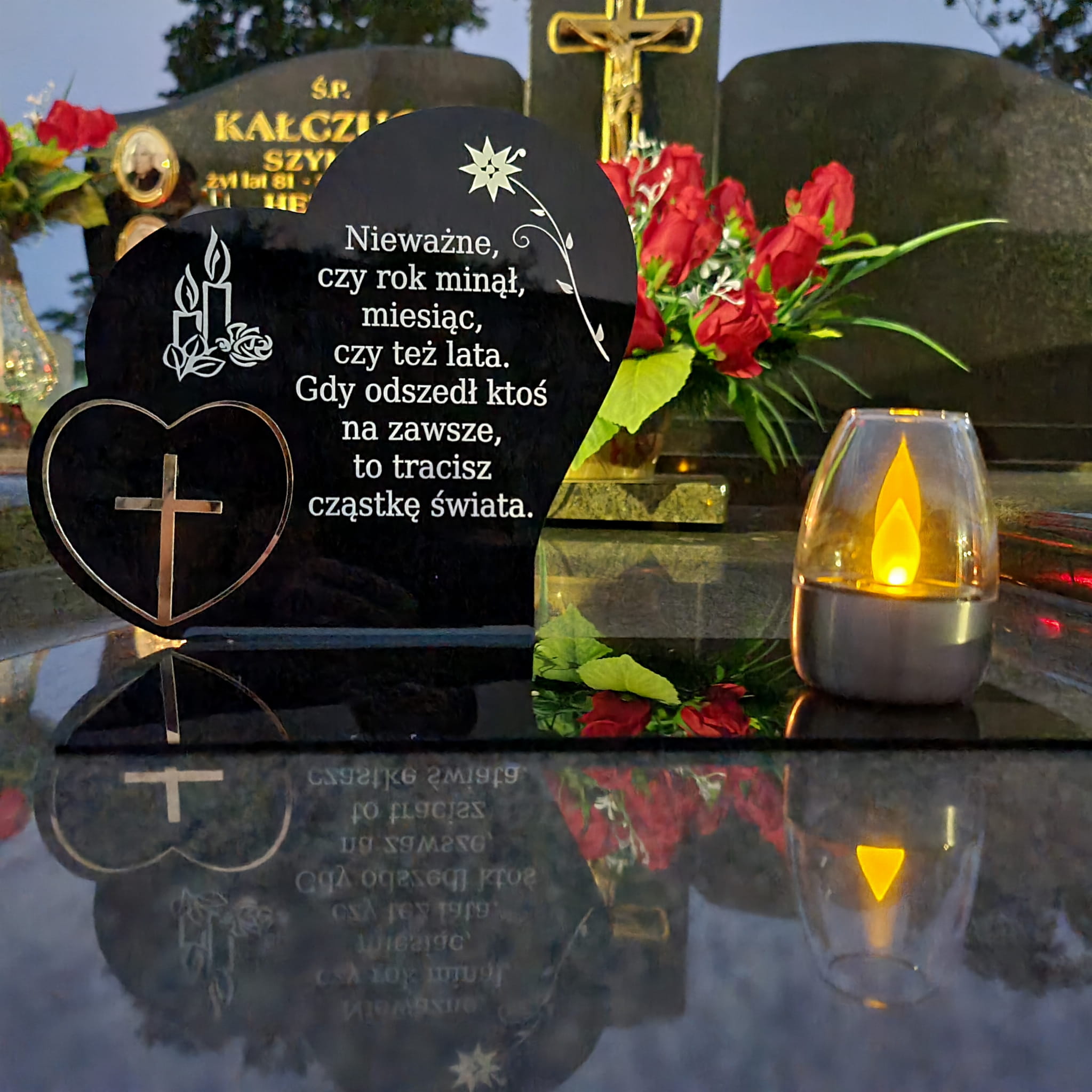 - tabliczka z sentencją nachylona pod lekkim kątem