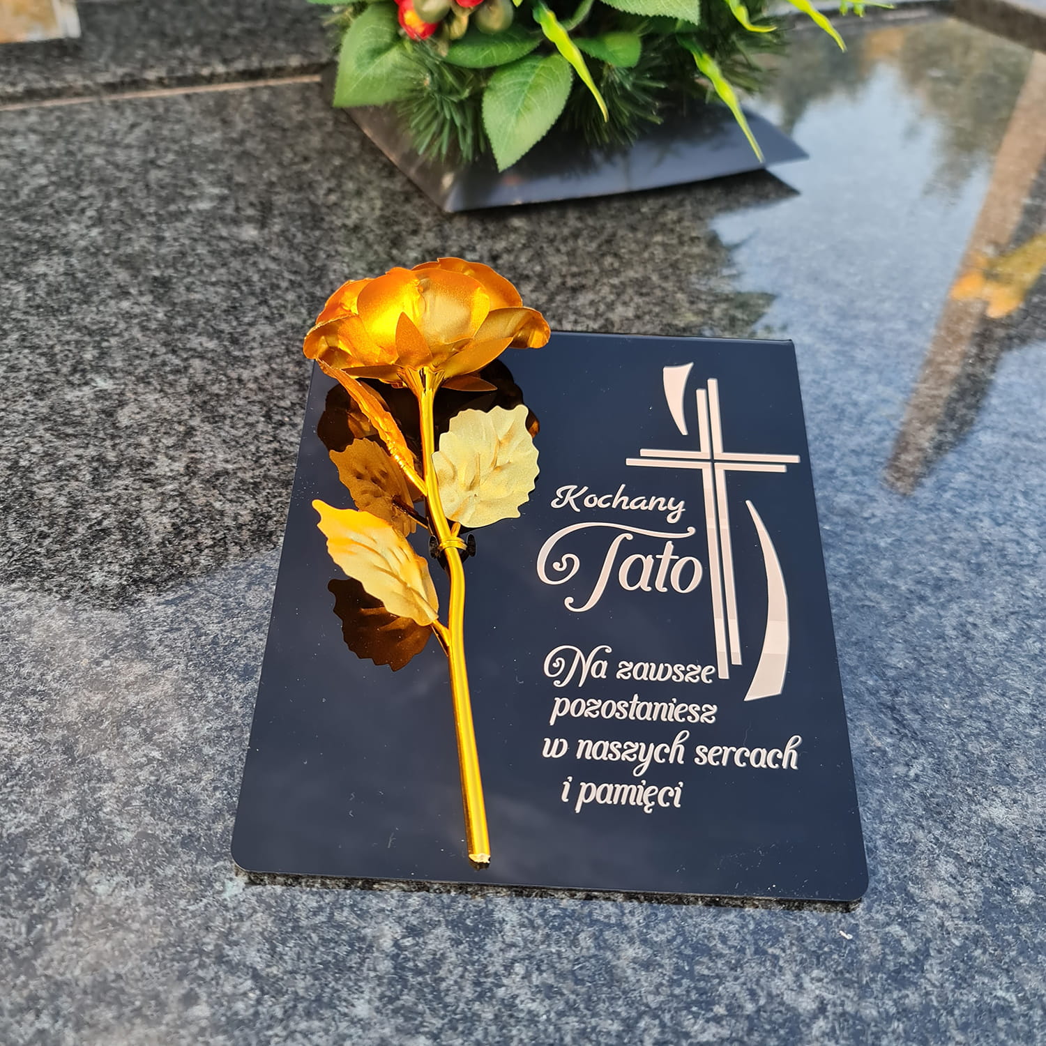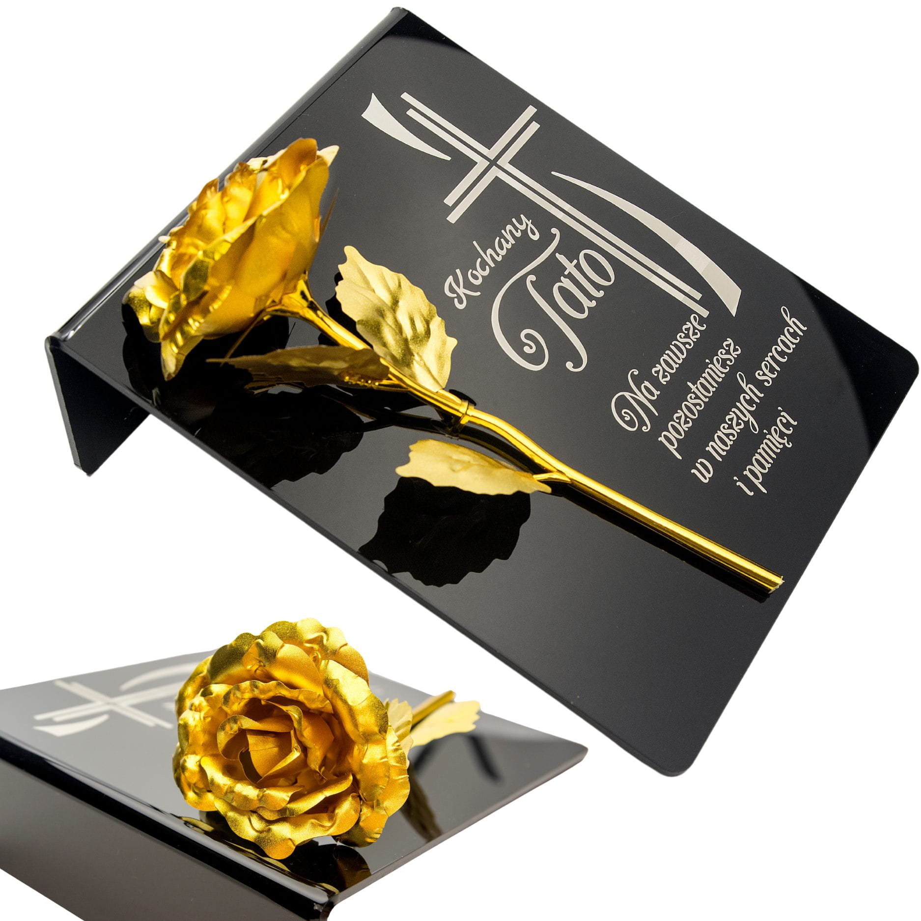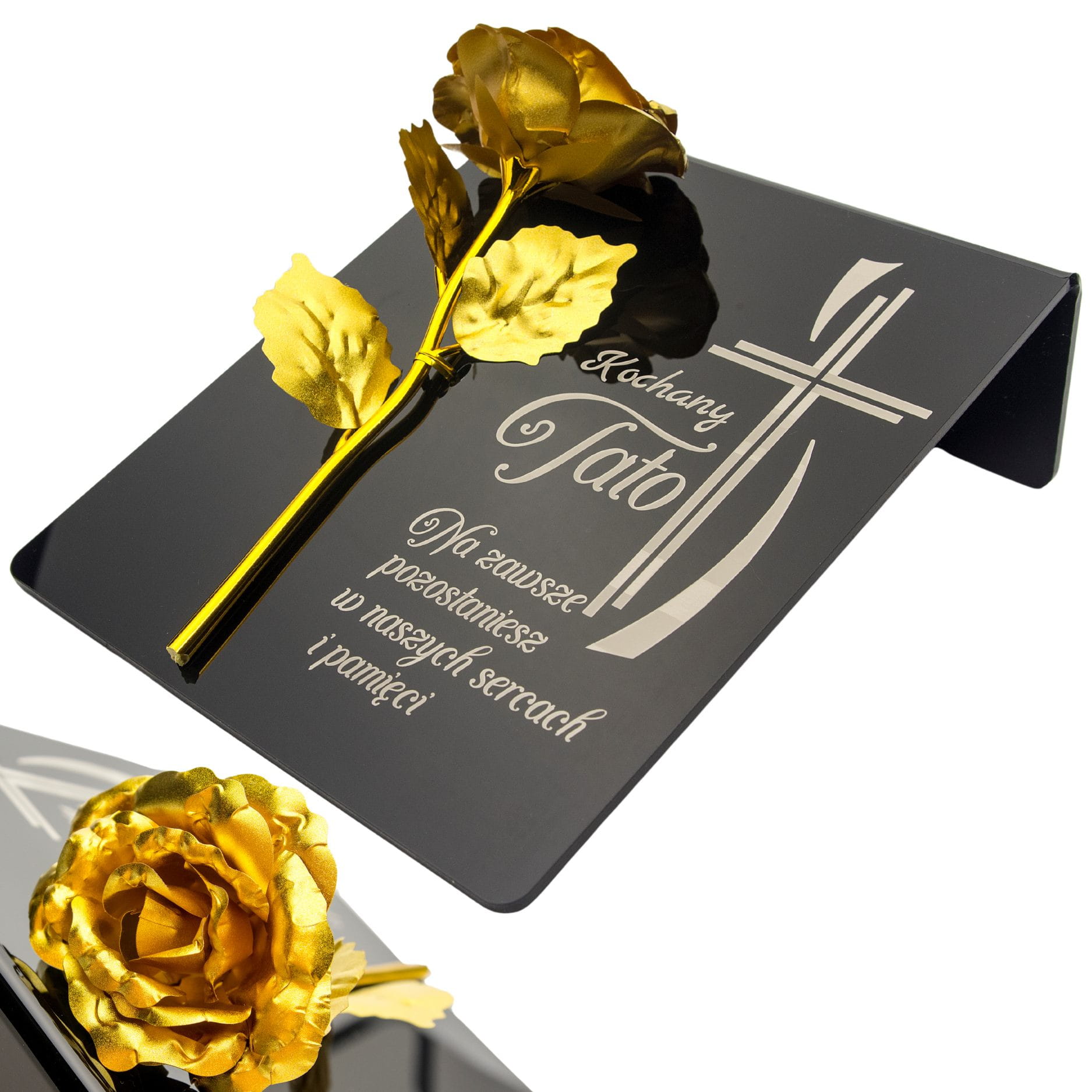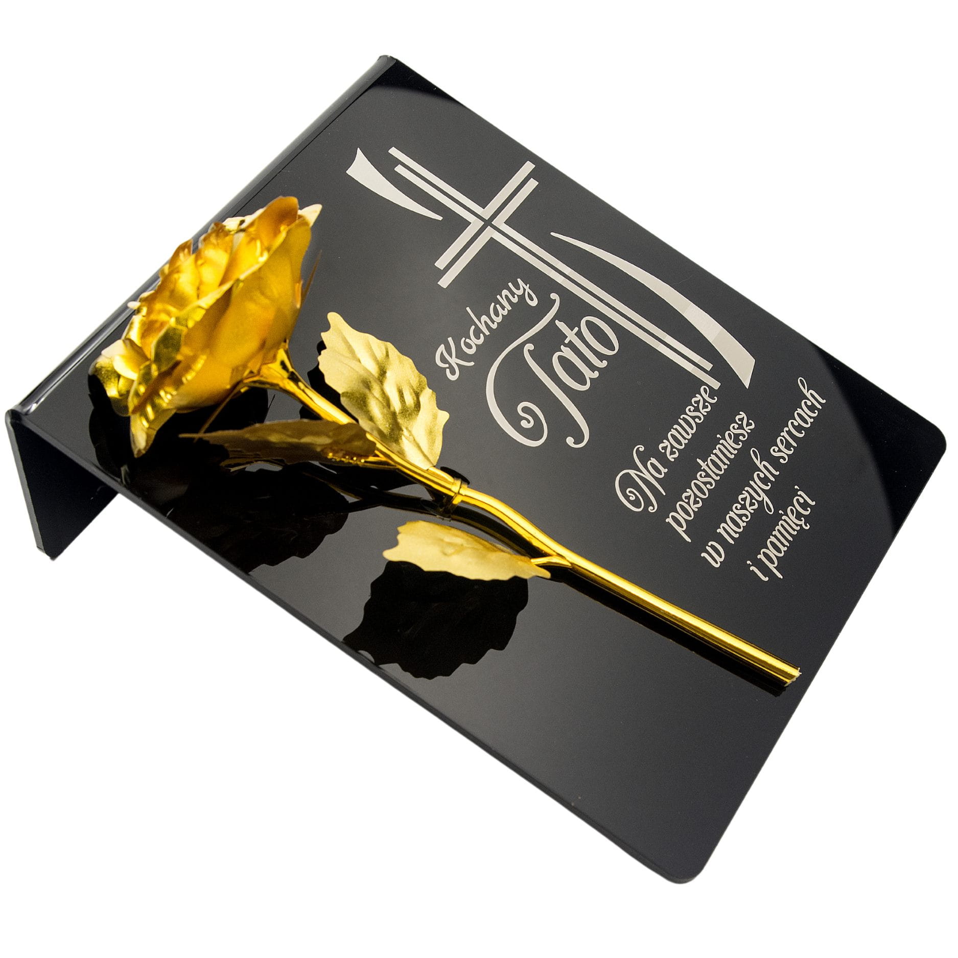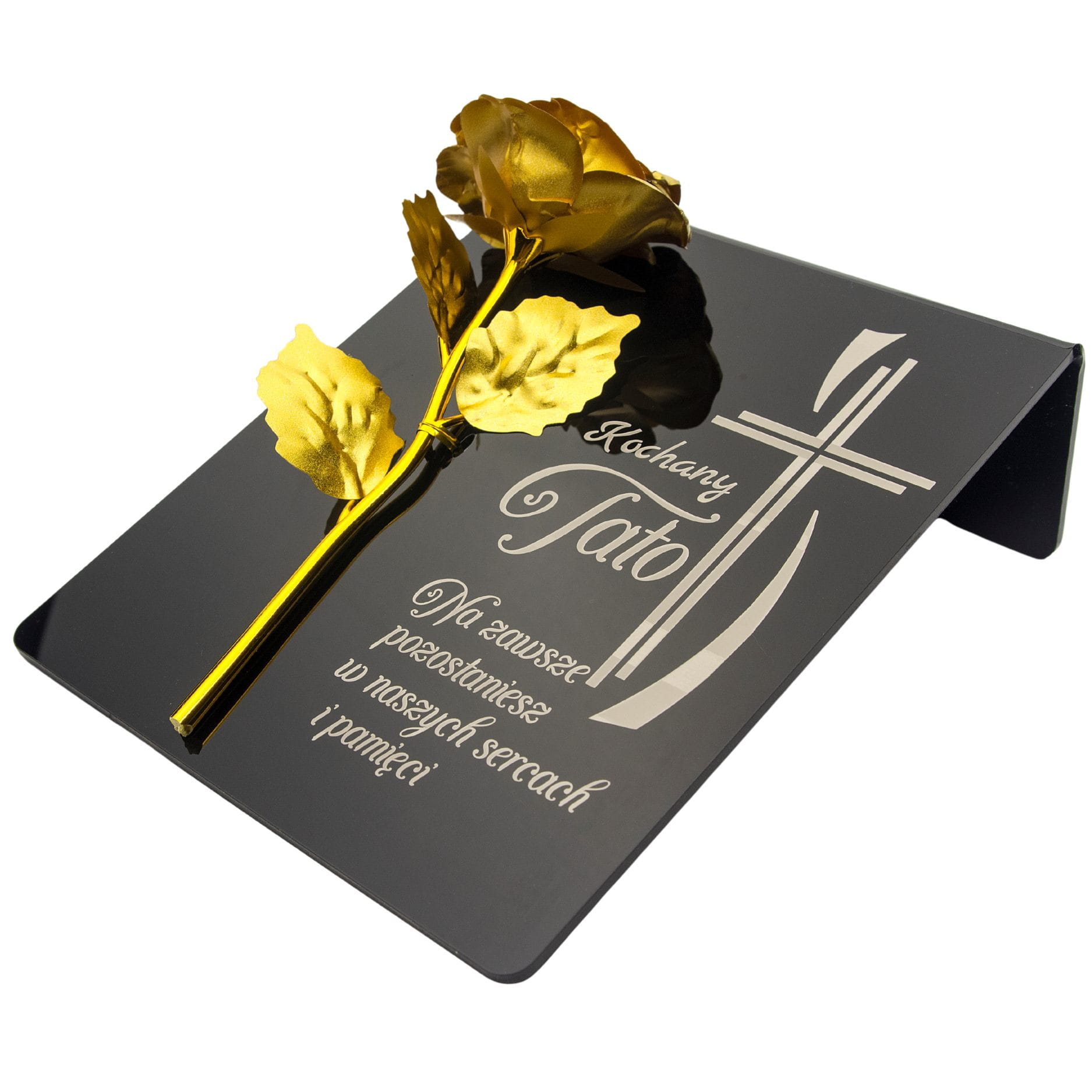 Złota róża na postumencie z grawerem dla TATY