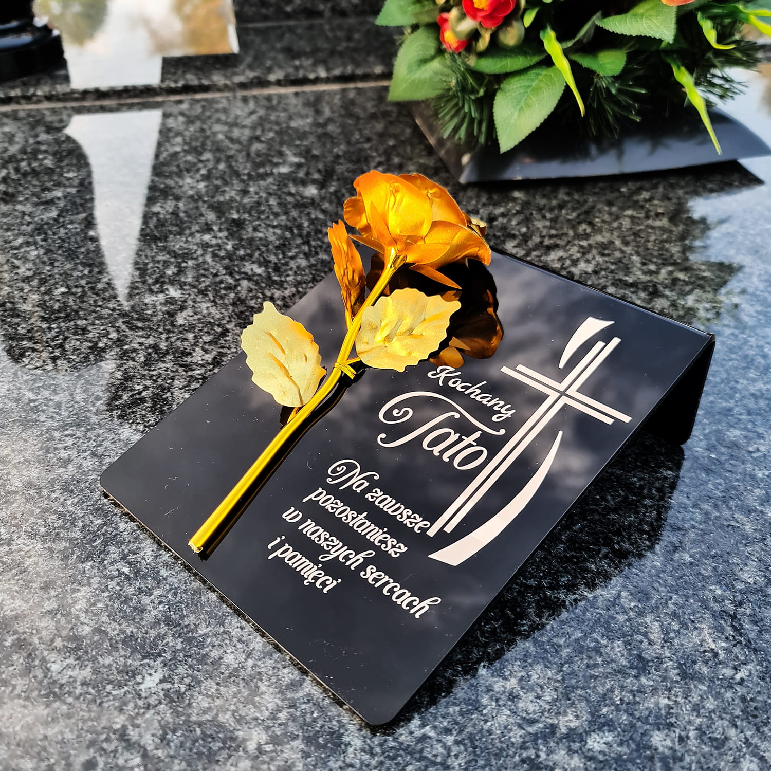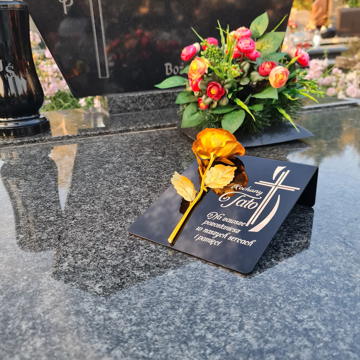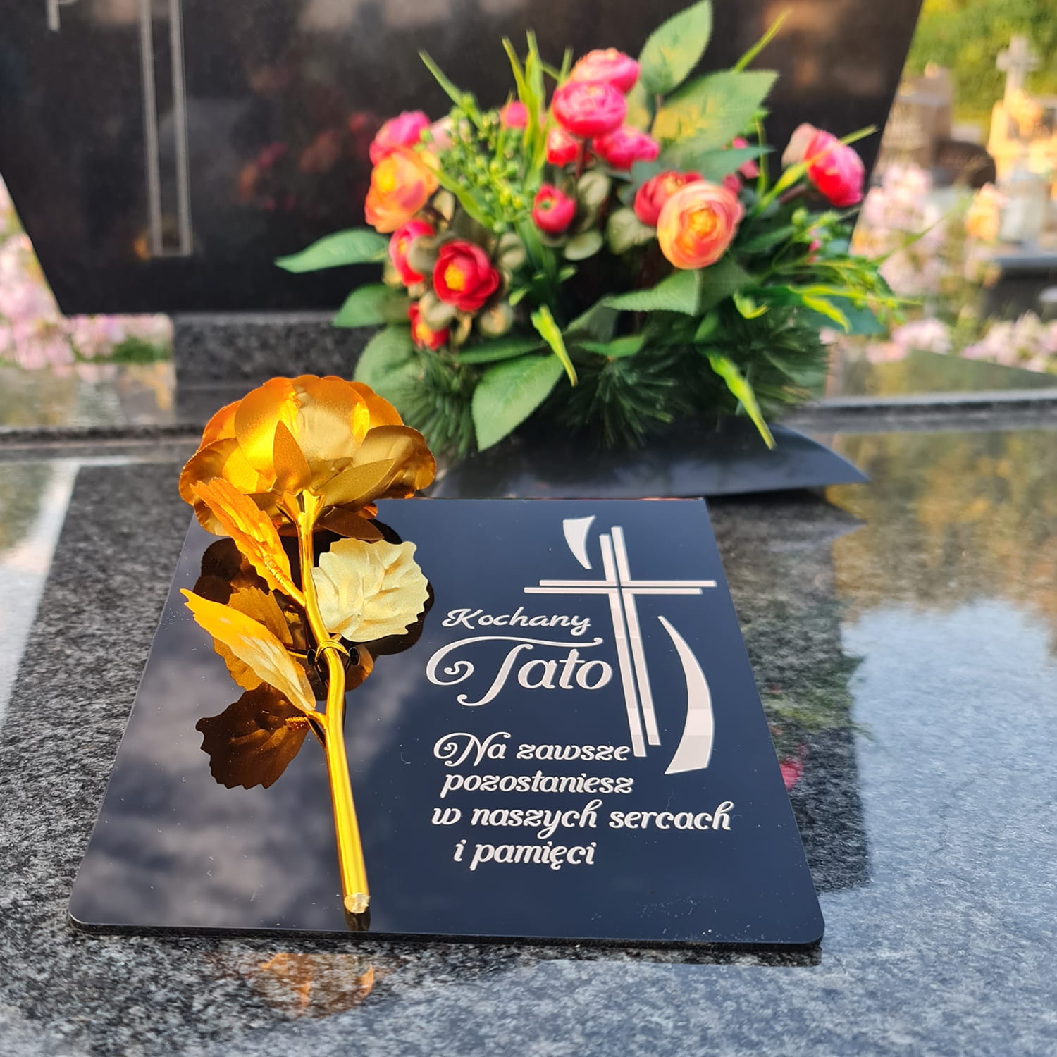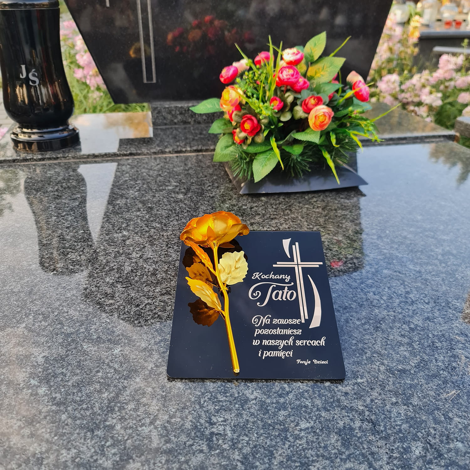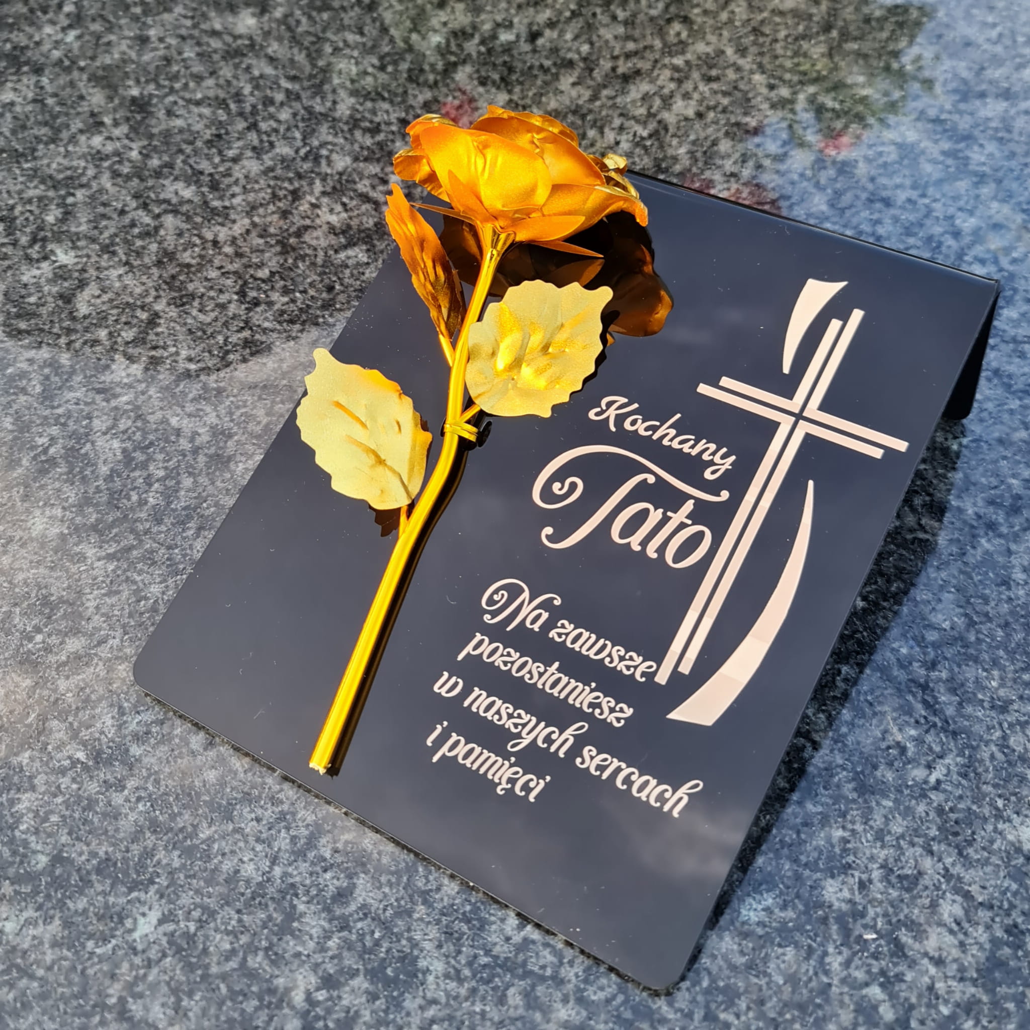 ZNICZ dla Taty DEKORACJA na grób GRAWEROWANY podstawka na cmentarz RÓŻA