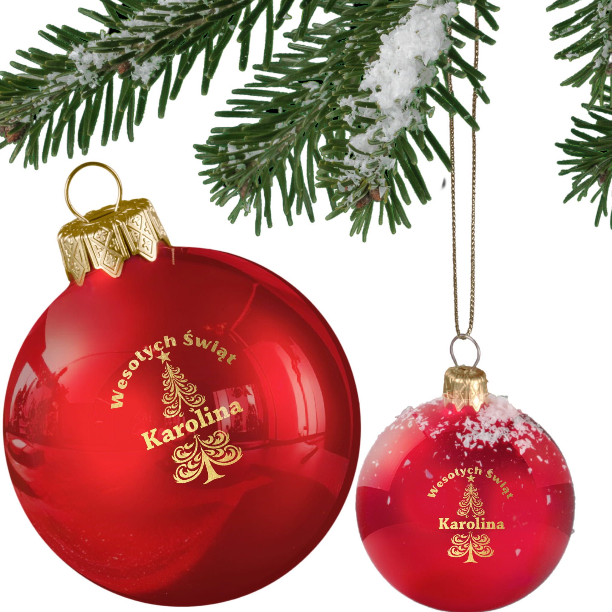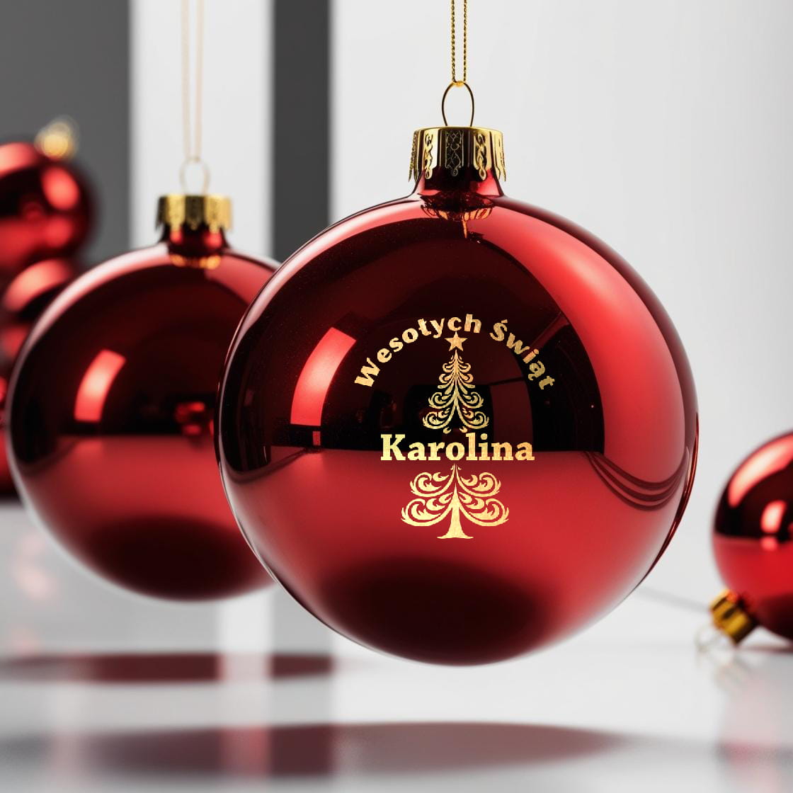 Treść, którą prześlesz w wiadomości do sprzedającego (imię) zostanie umieszczona w wybranym projekcie i wygrawerowana na bombce.