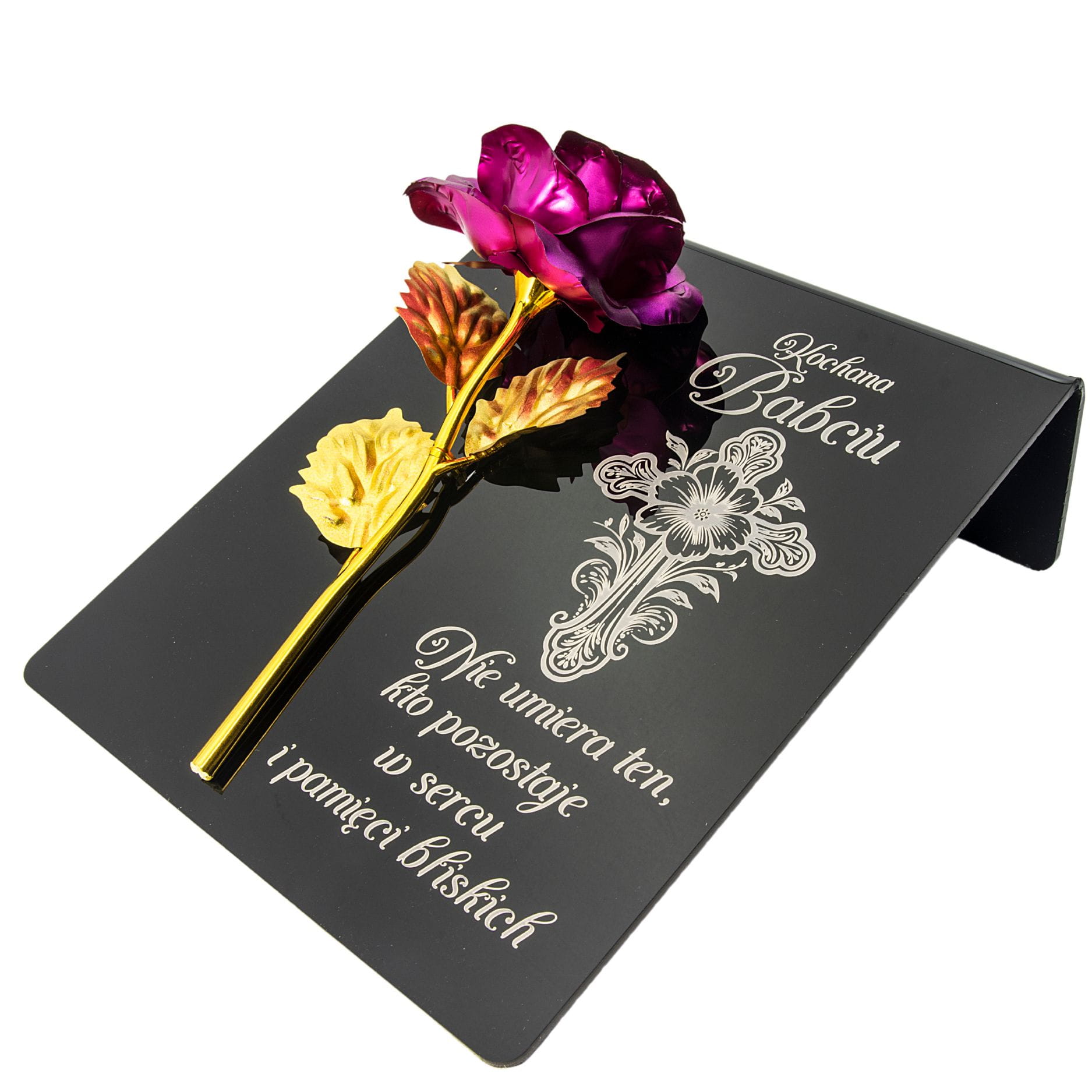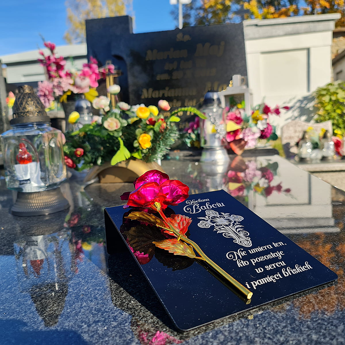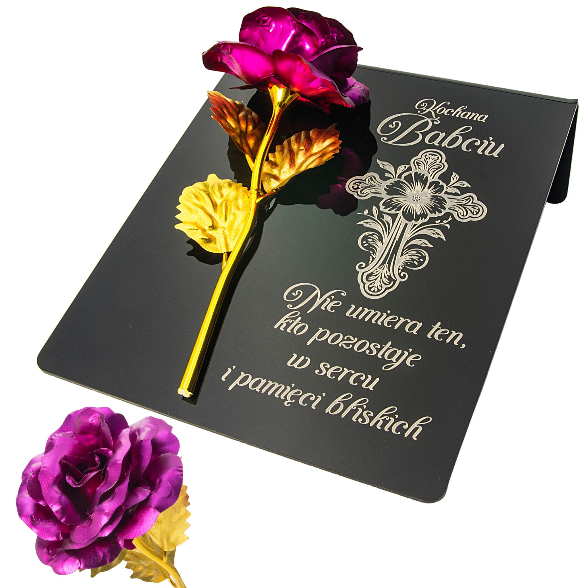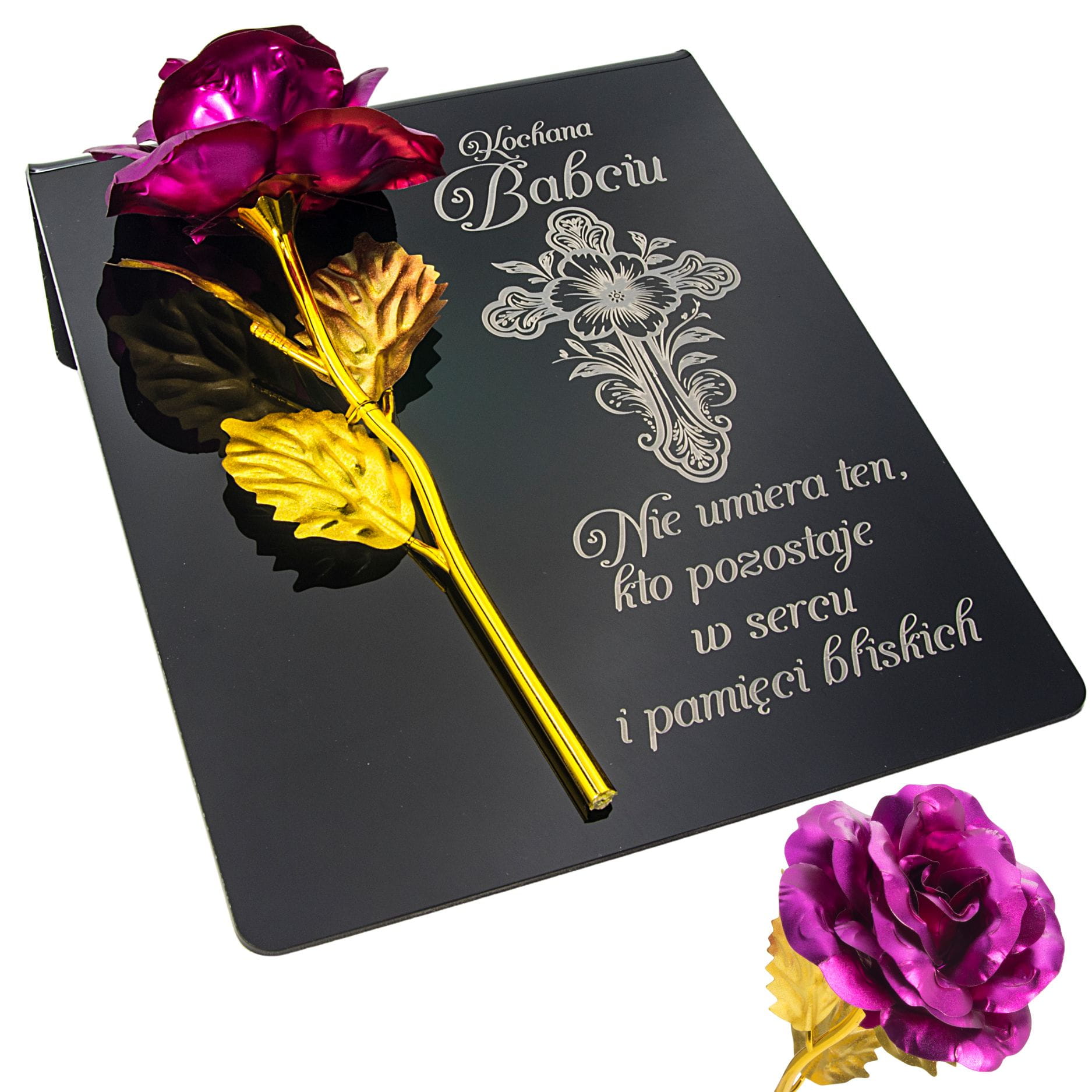 DEKORACJA na grób GRAWEROWANY ZNICZ podstawka na cmentarz RÓŻA DLA BABCI