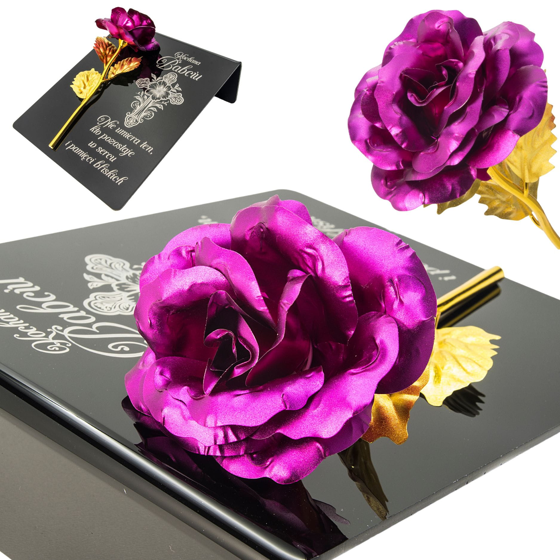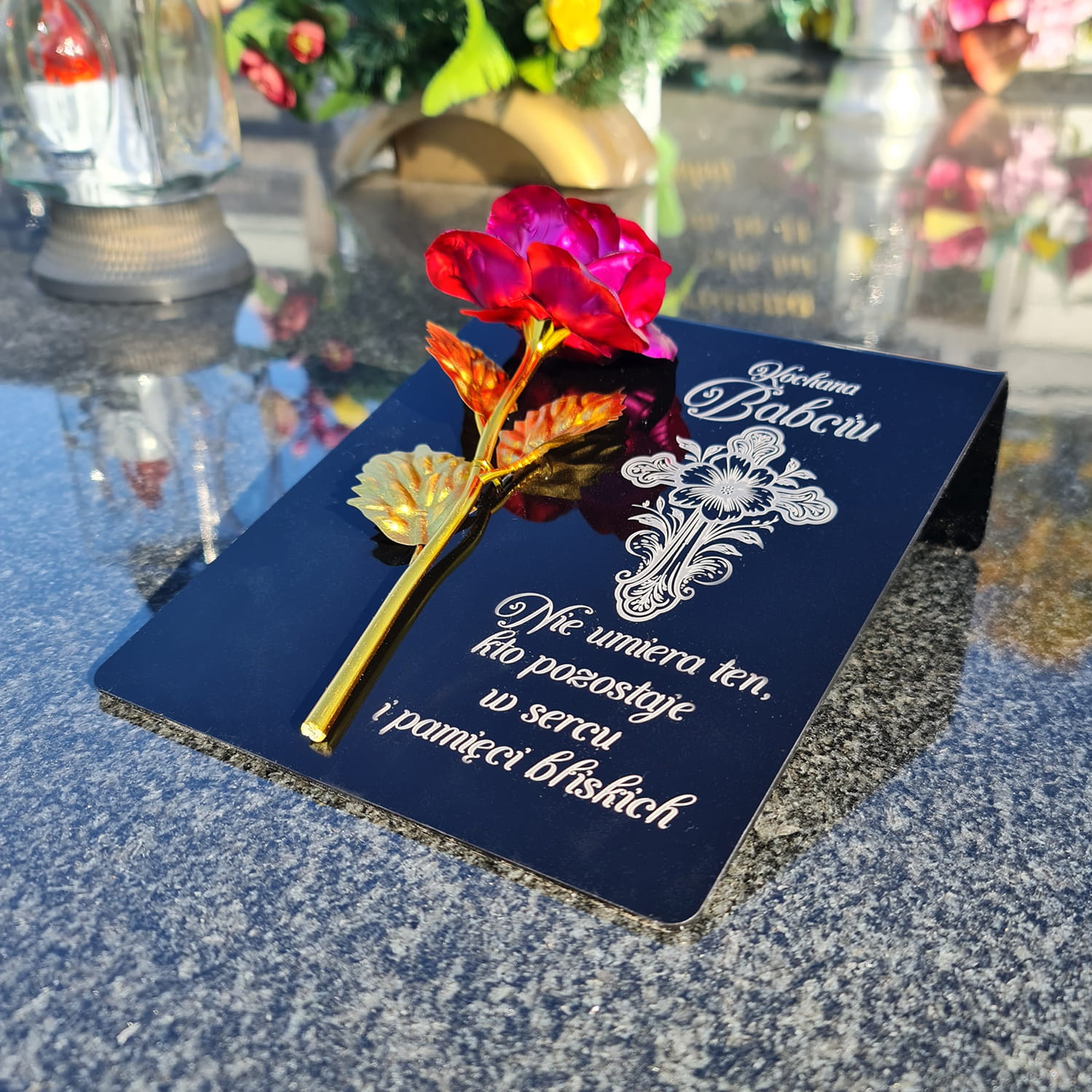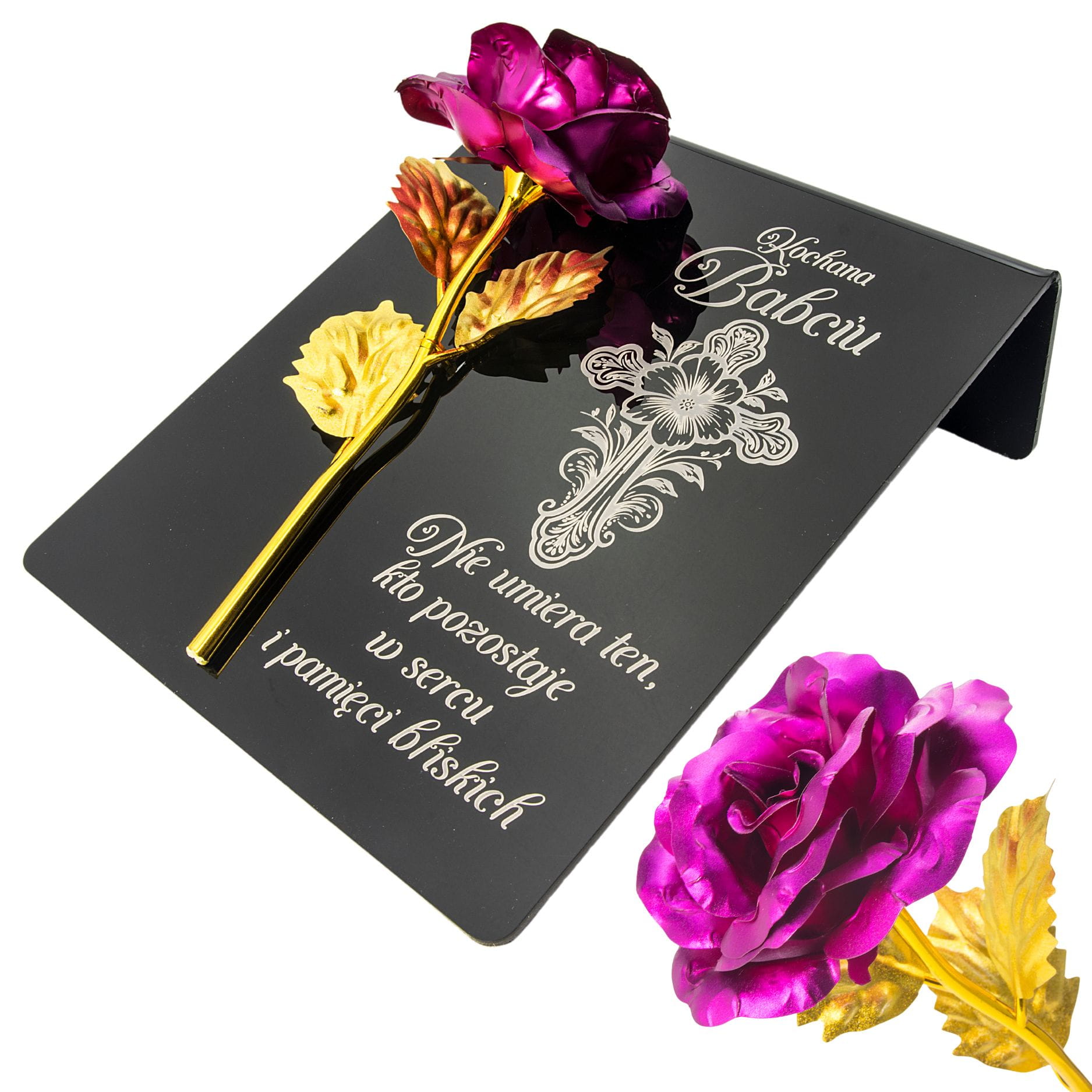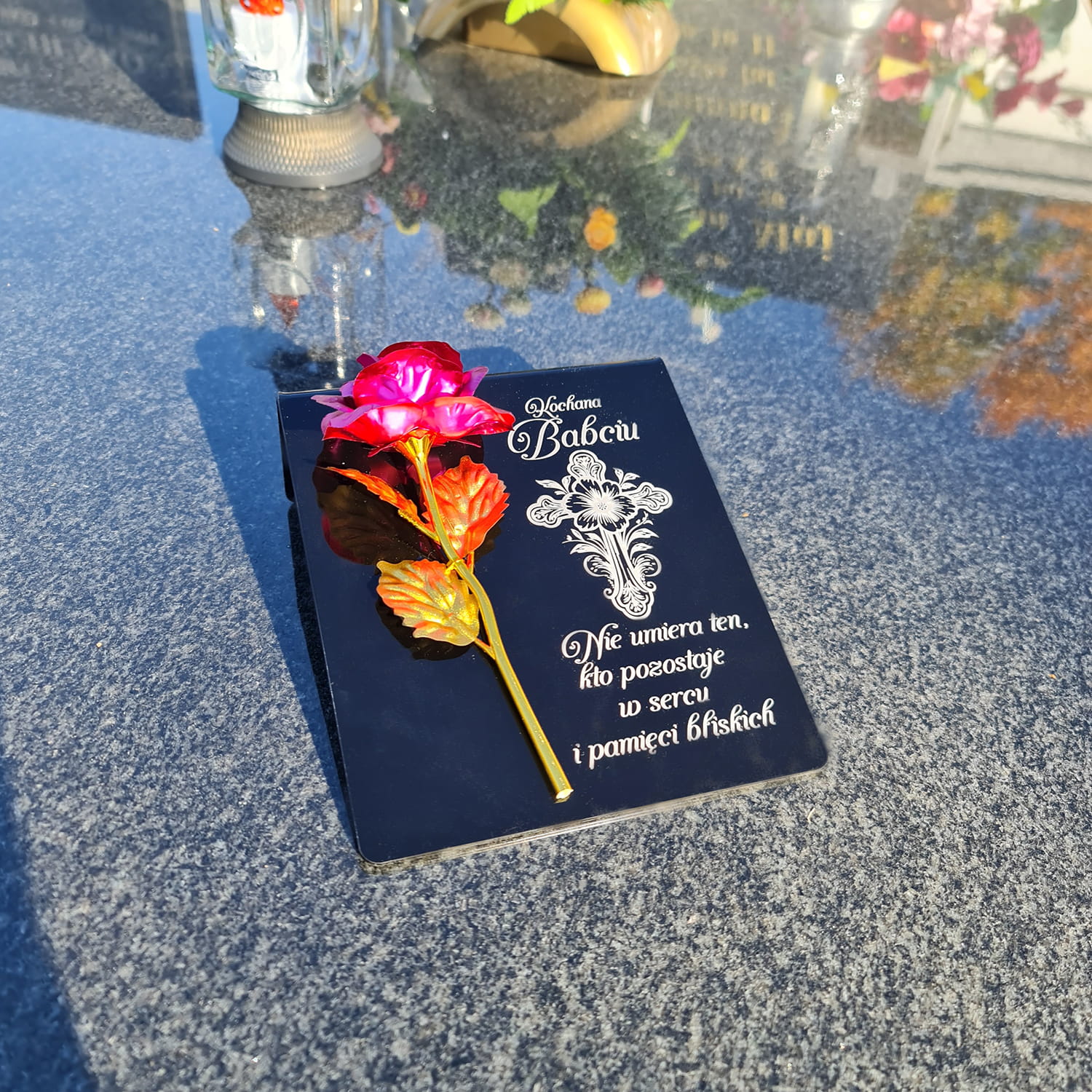 DEKORACJA na grób GRAWEROWANY ZNICZ podstawka na cmentarz RÓŻA DLA BABCI