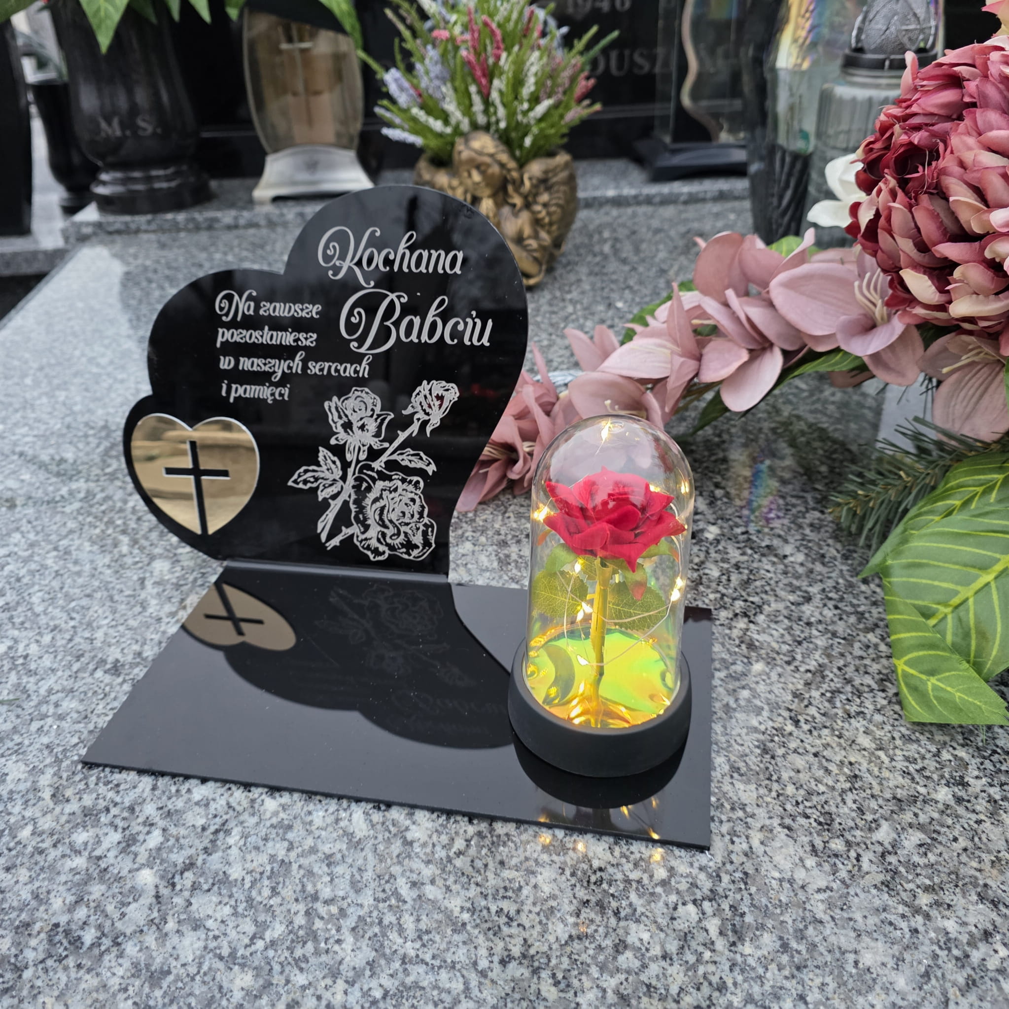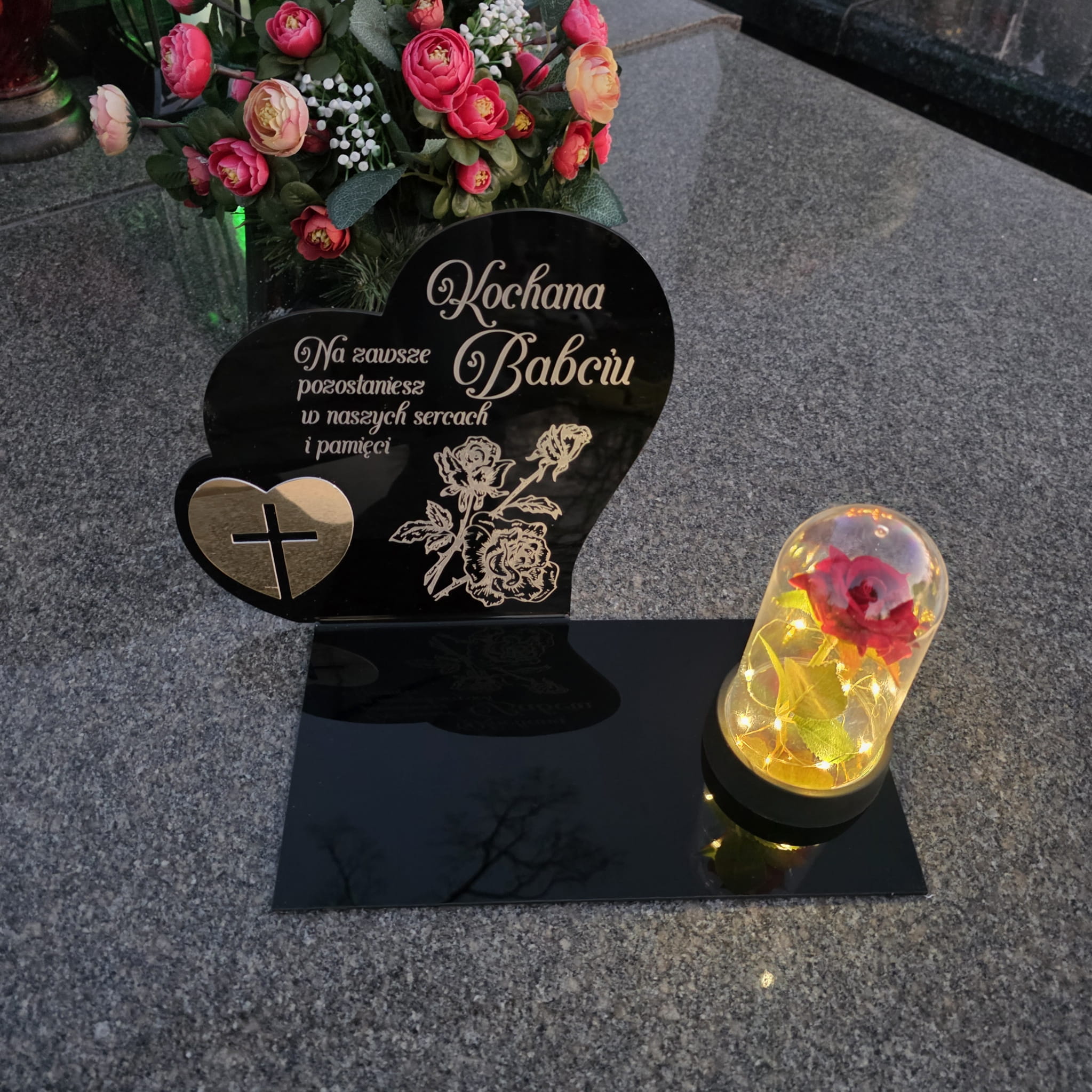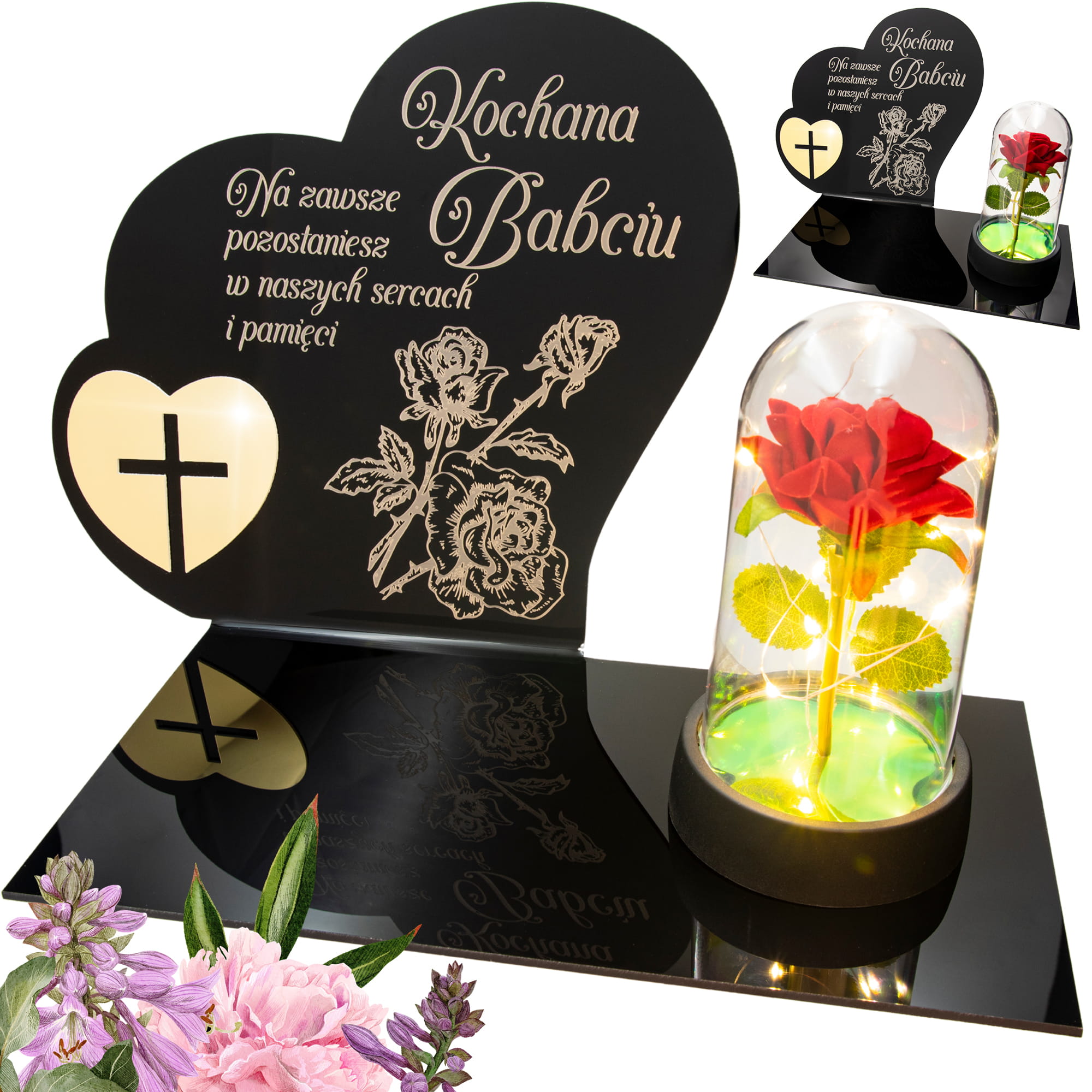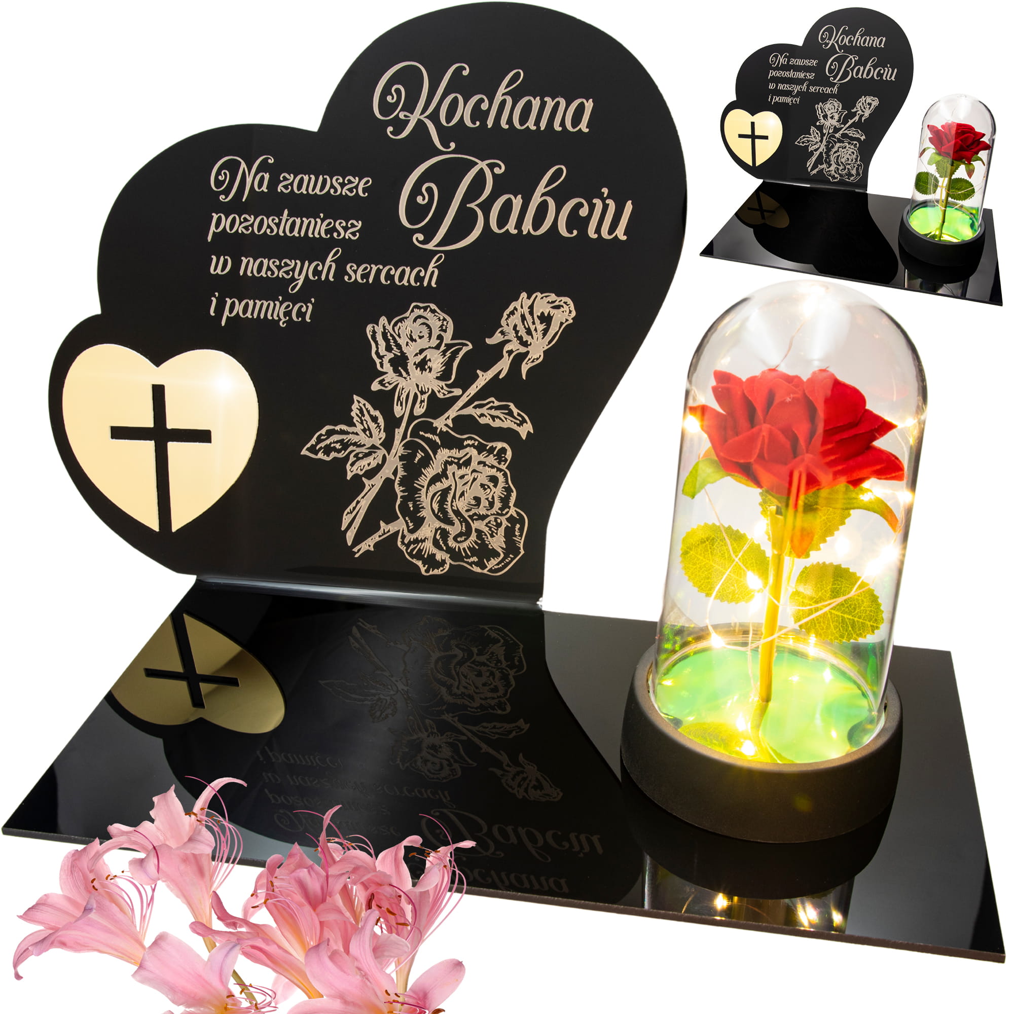 DEKORACJA na grób GRAWEROWANY ZNICZ podstawka na cmentarz RÓŻA DLA BABCI
