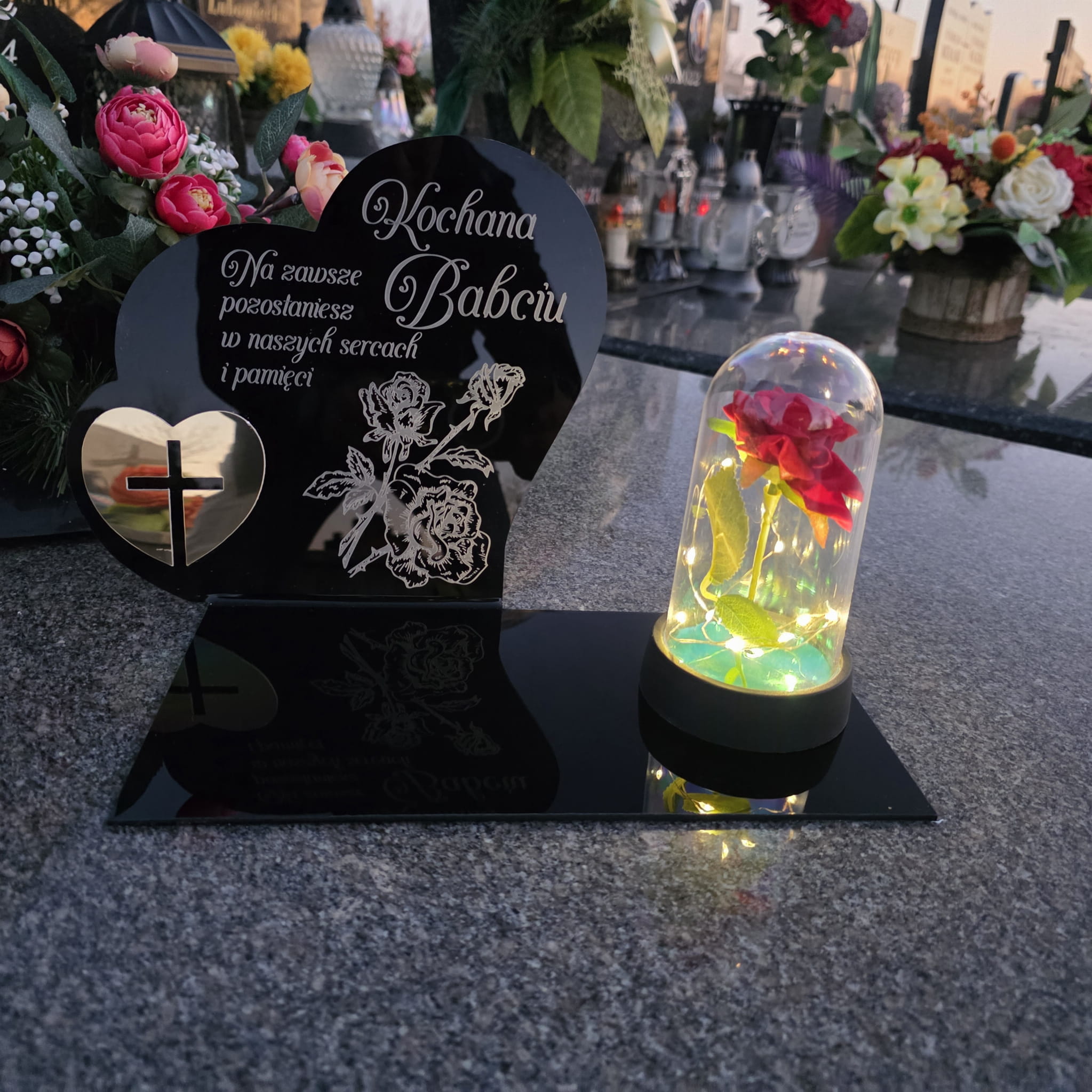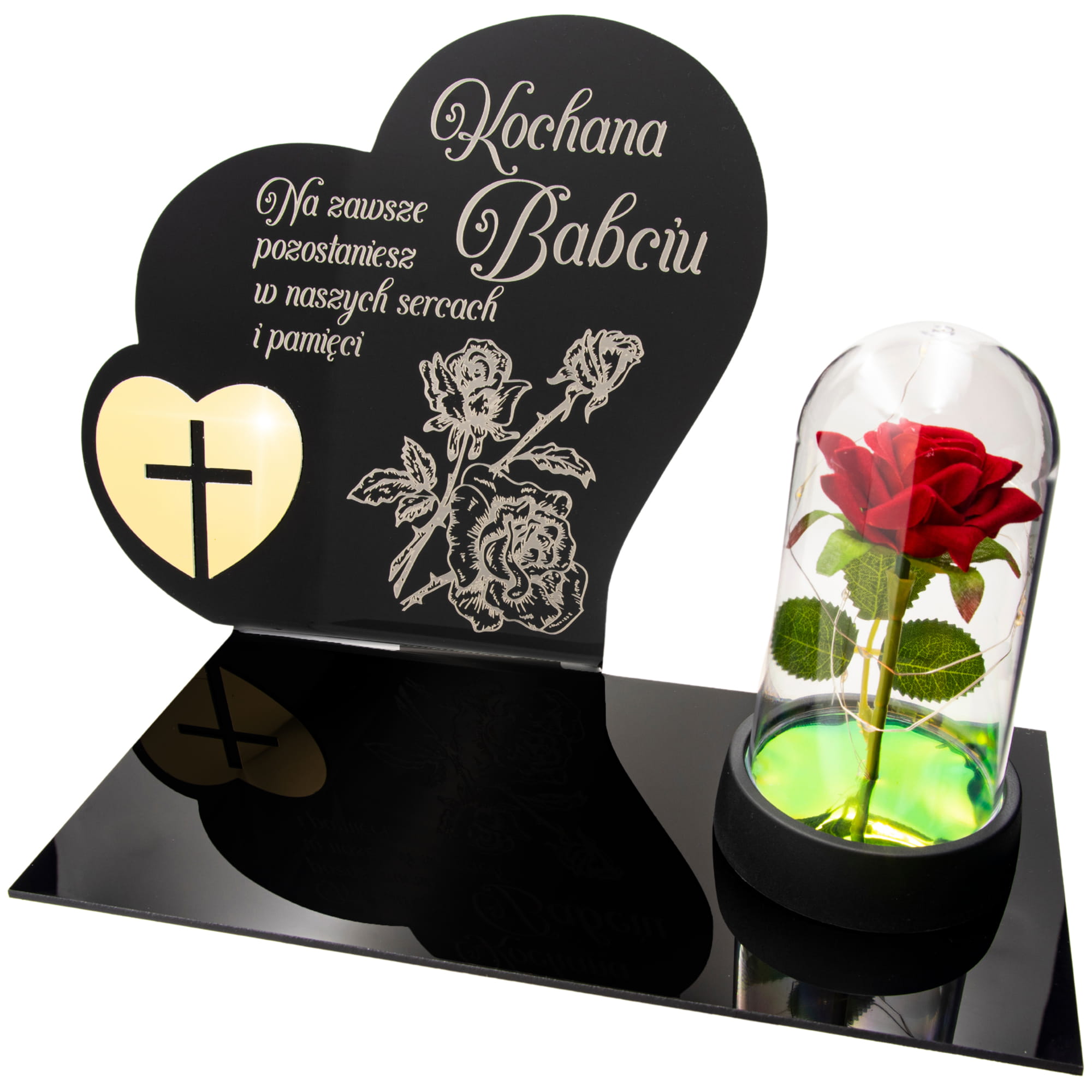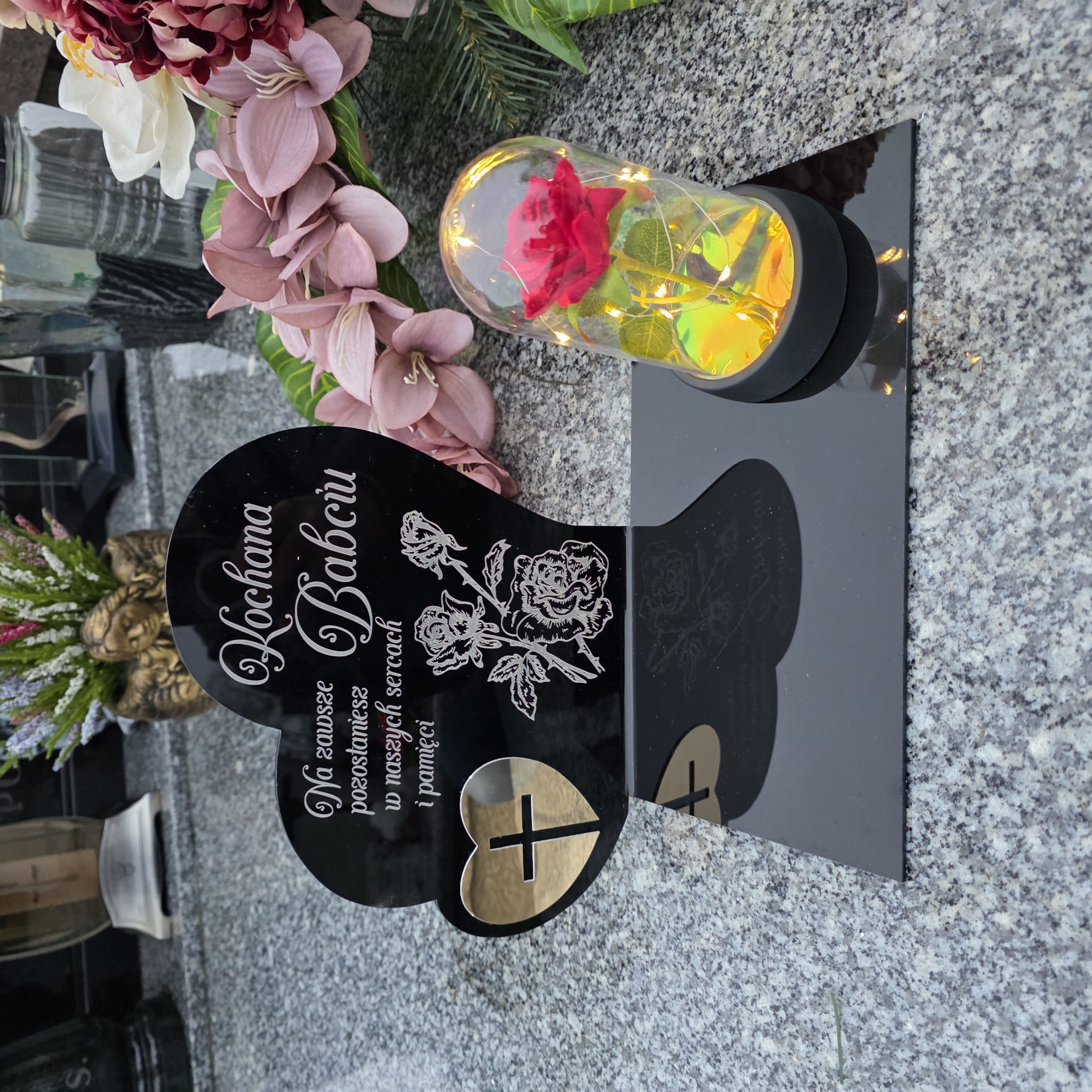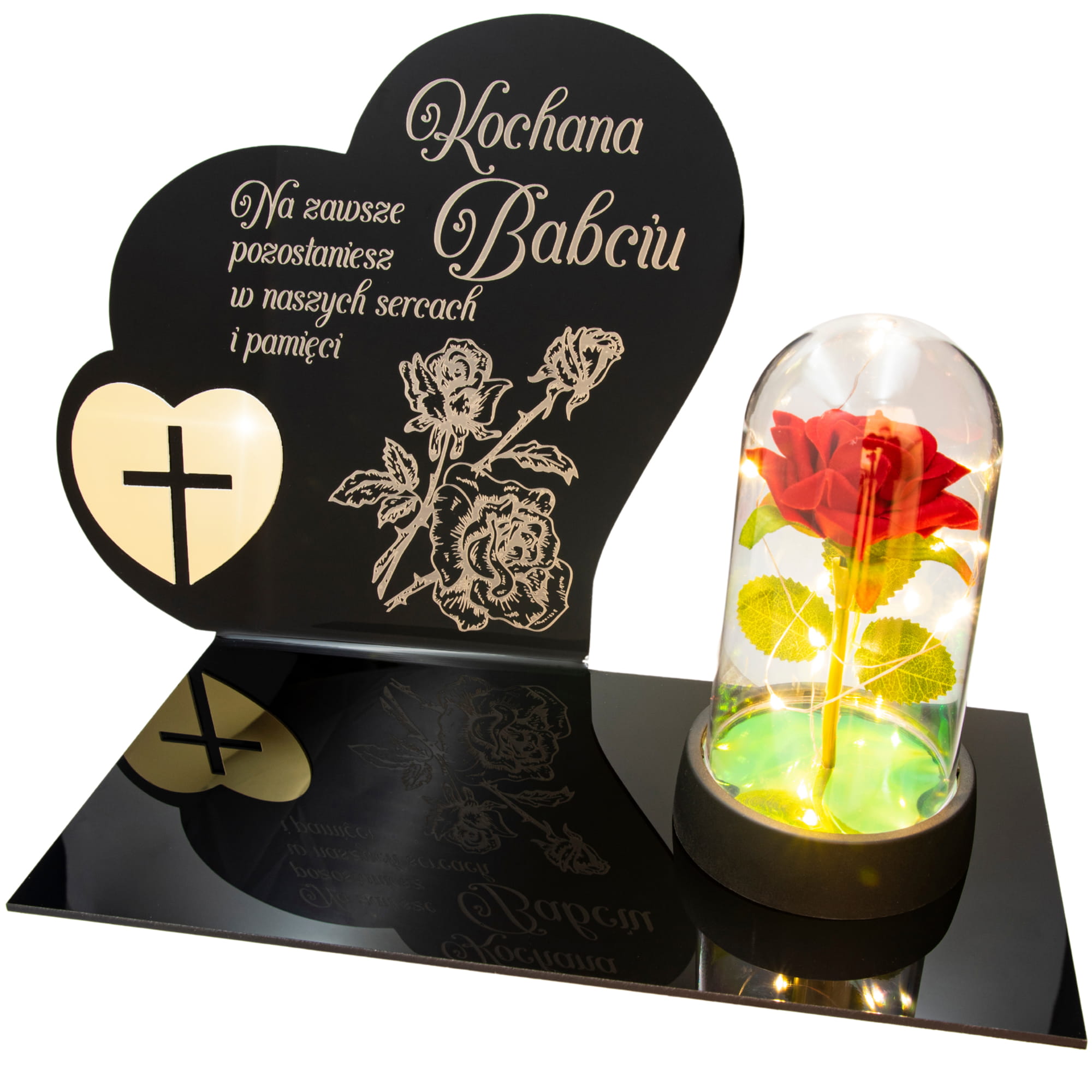 DEKORACJA na grób GRAWEROWANY ZNICZ podstawka na cmentarz RÓŻA DLA BABCI