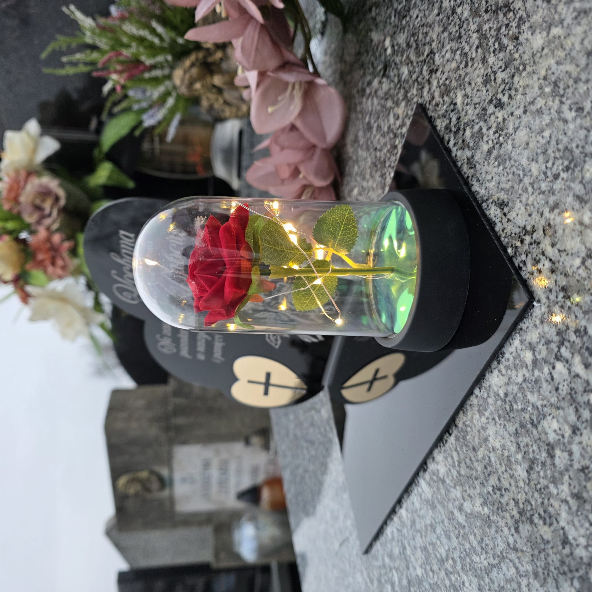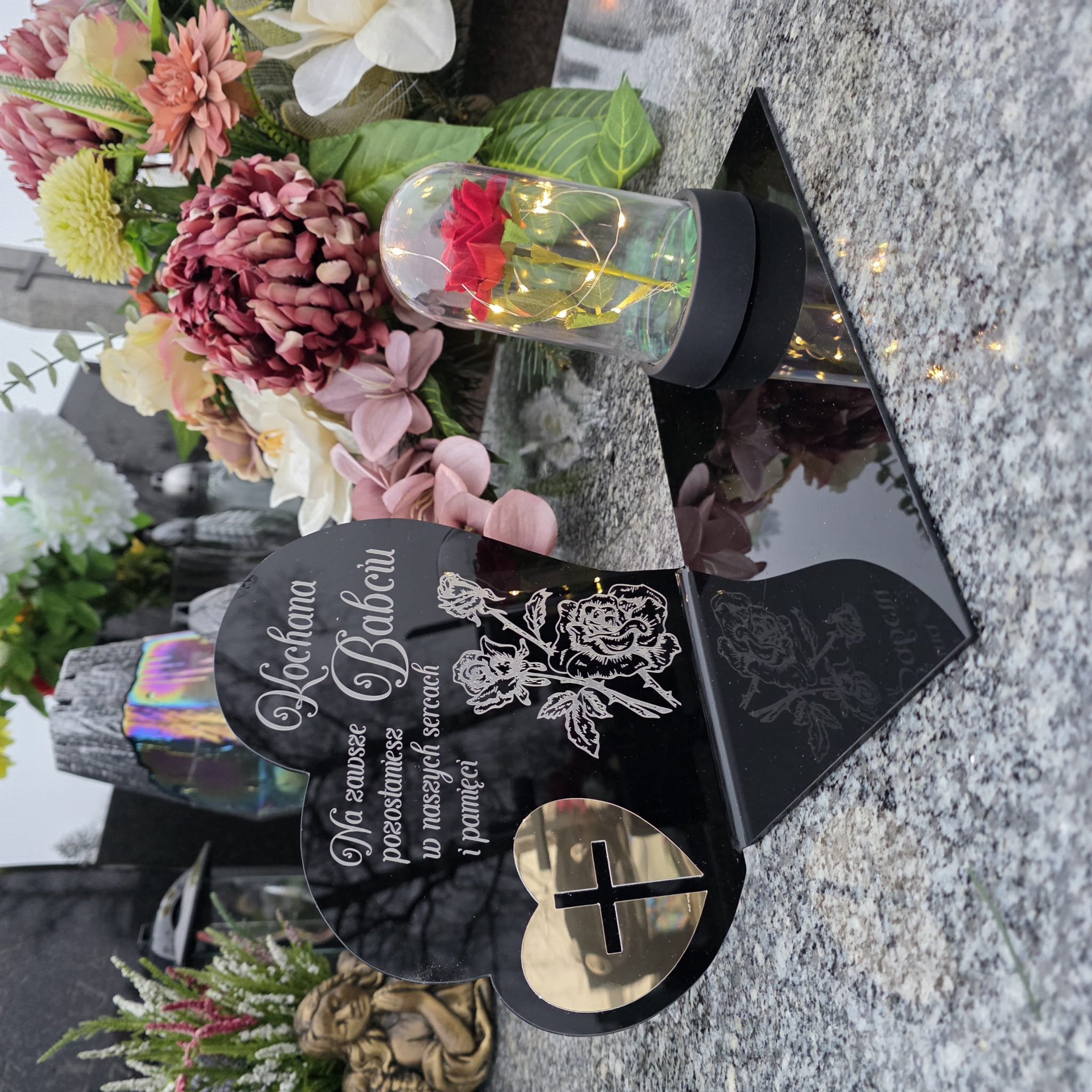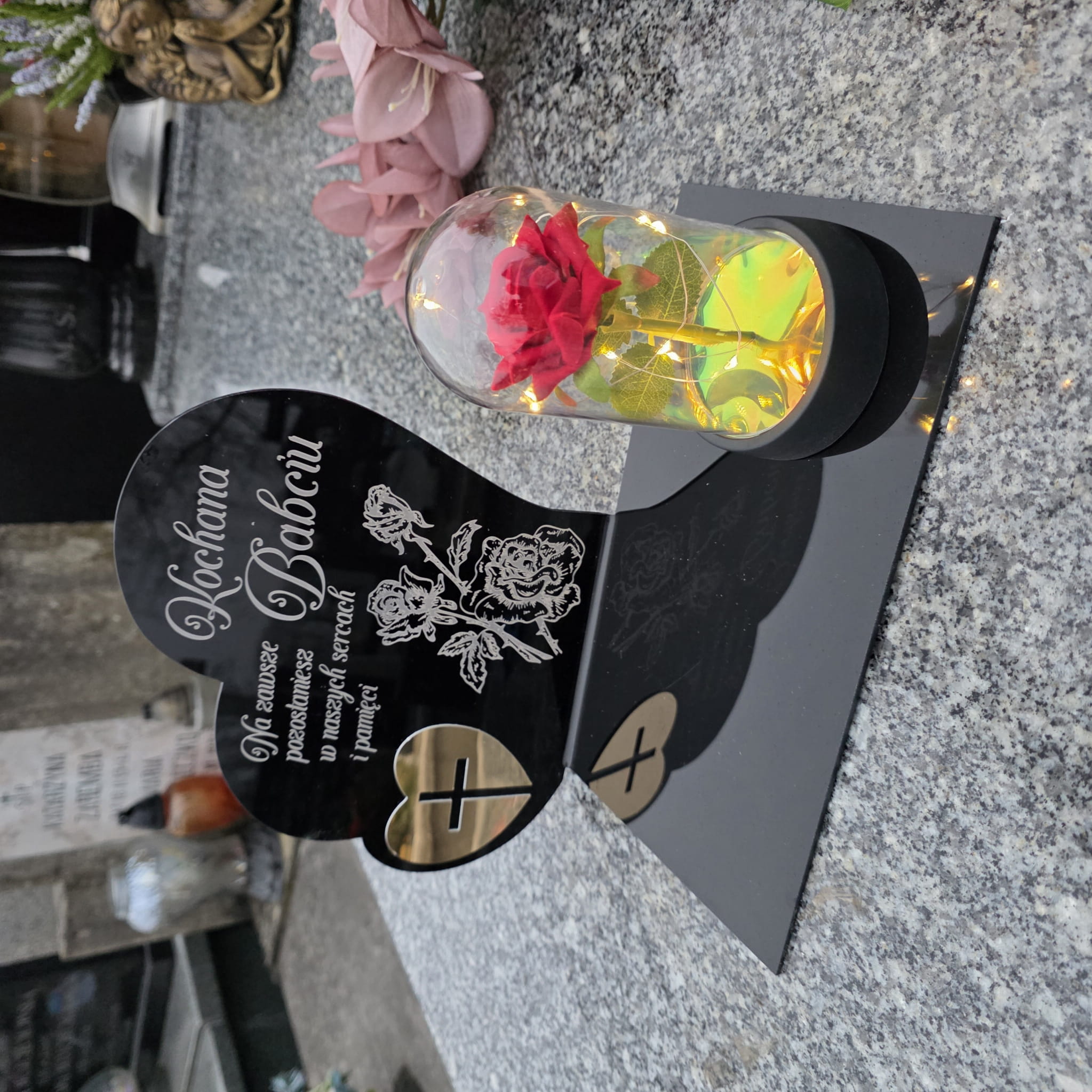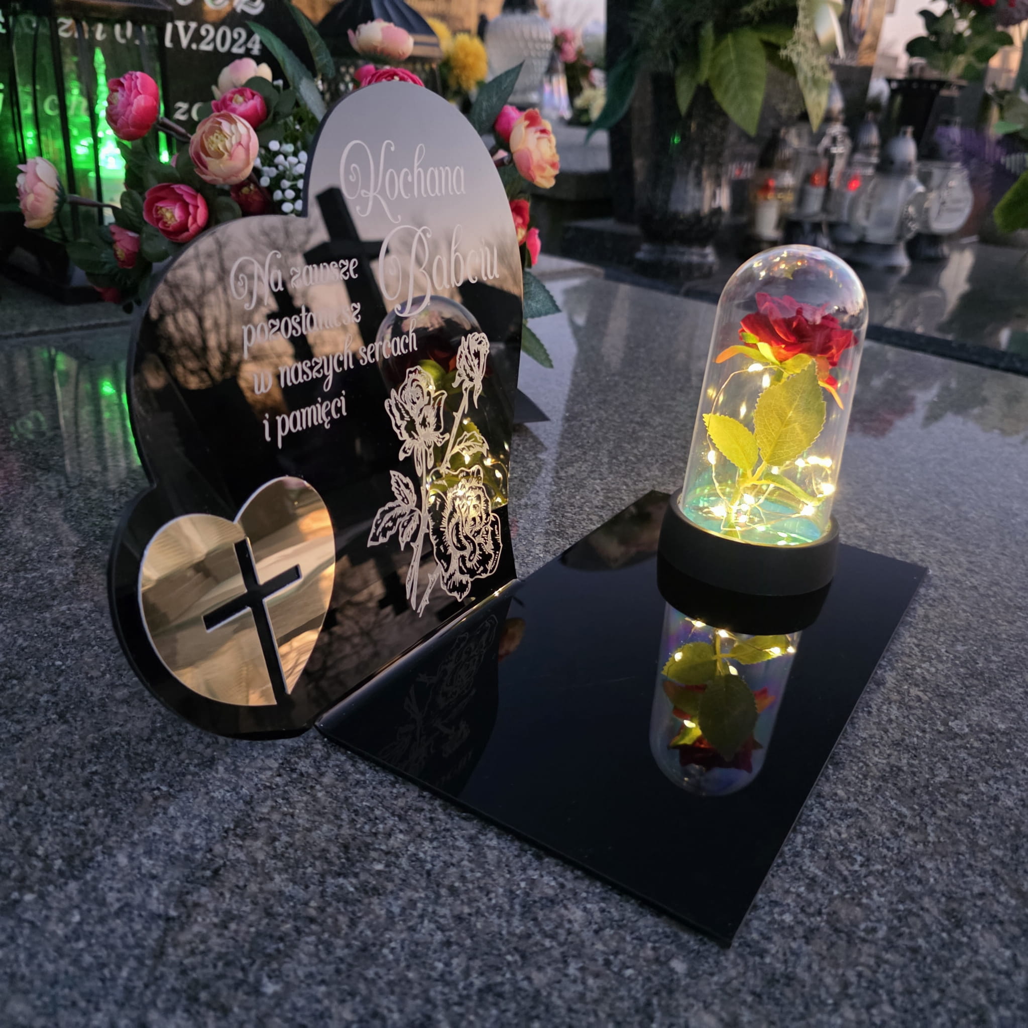 DEKORACJA na grób GRAWEROWANY ZNICZ podstawka na cmentarz RÓŻA DLA BABCI