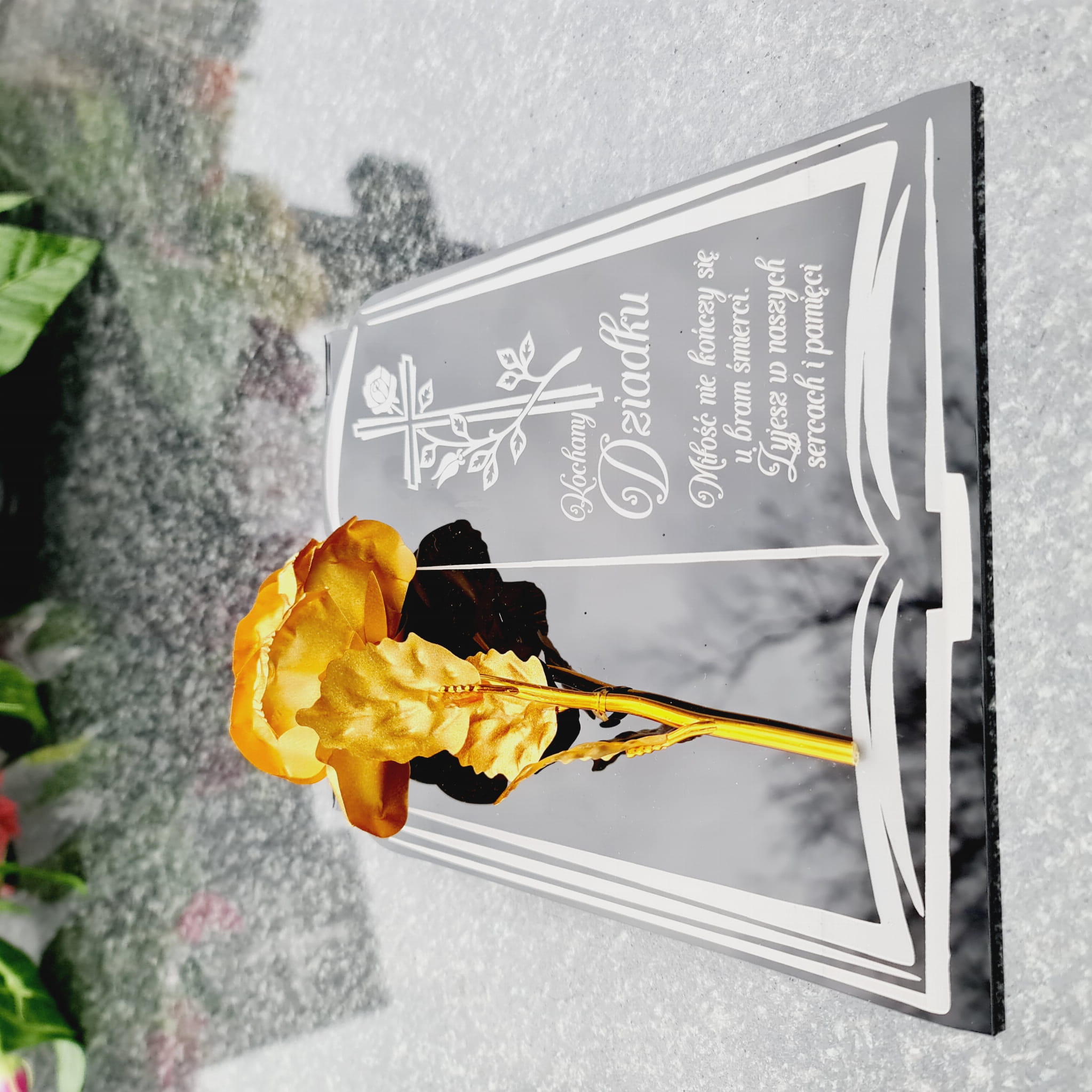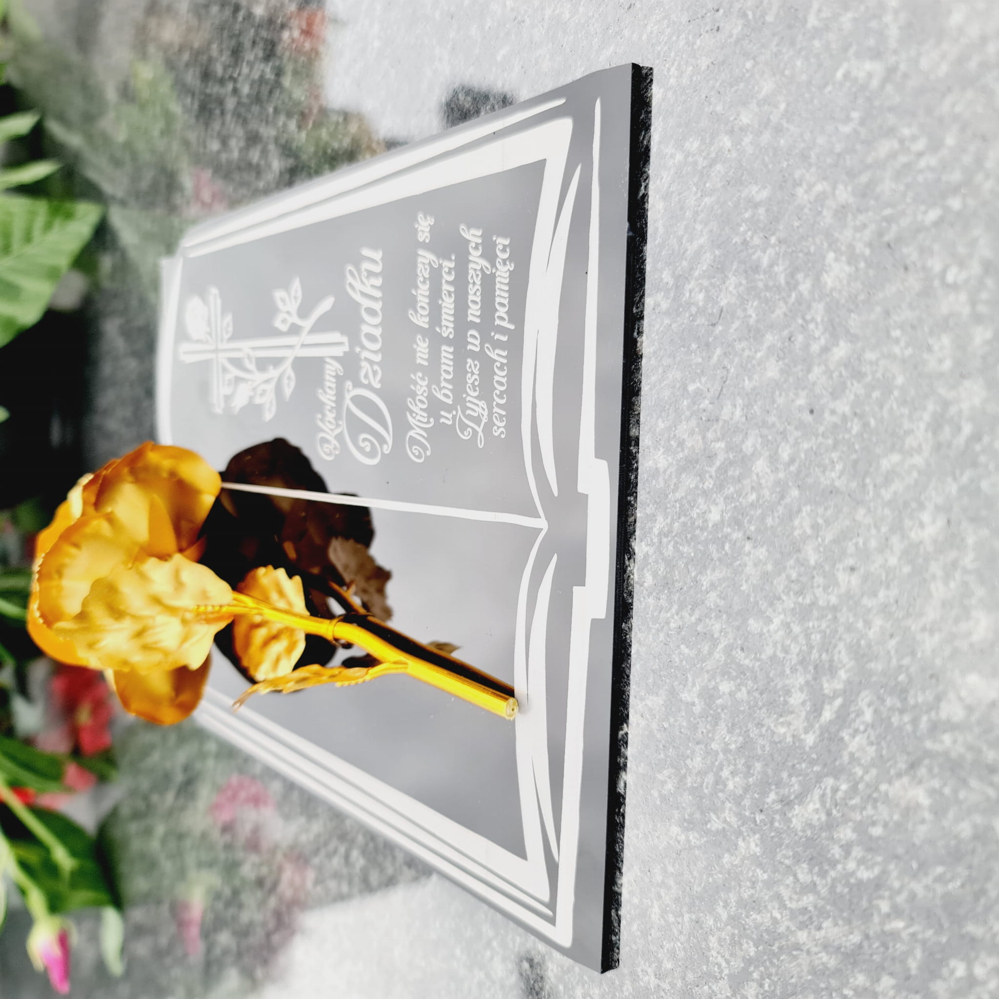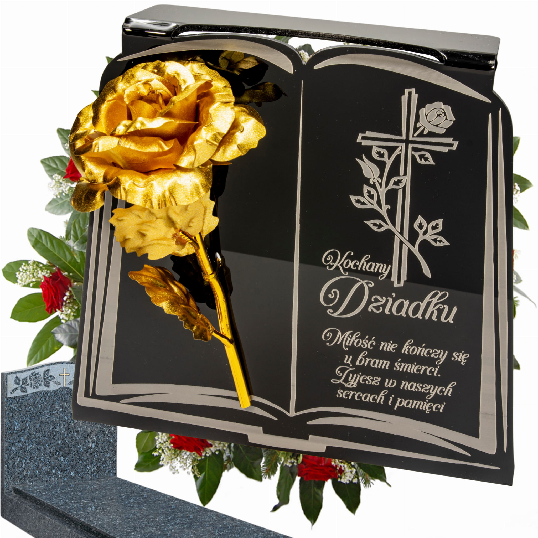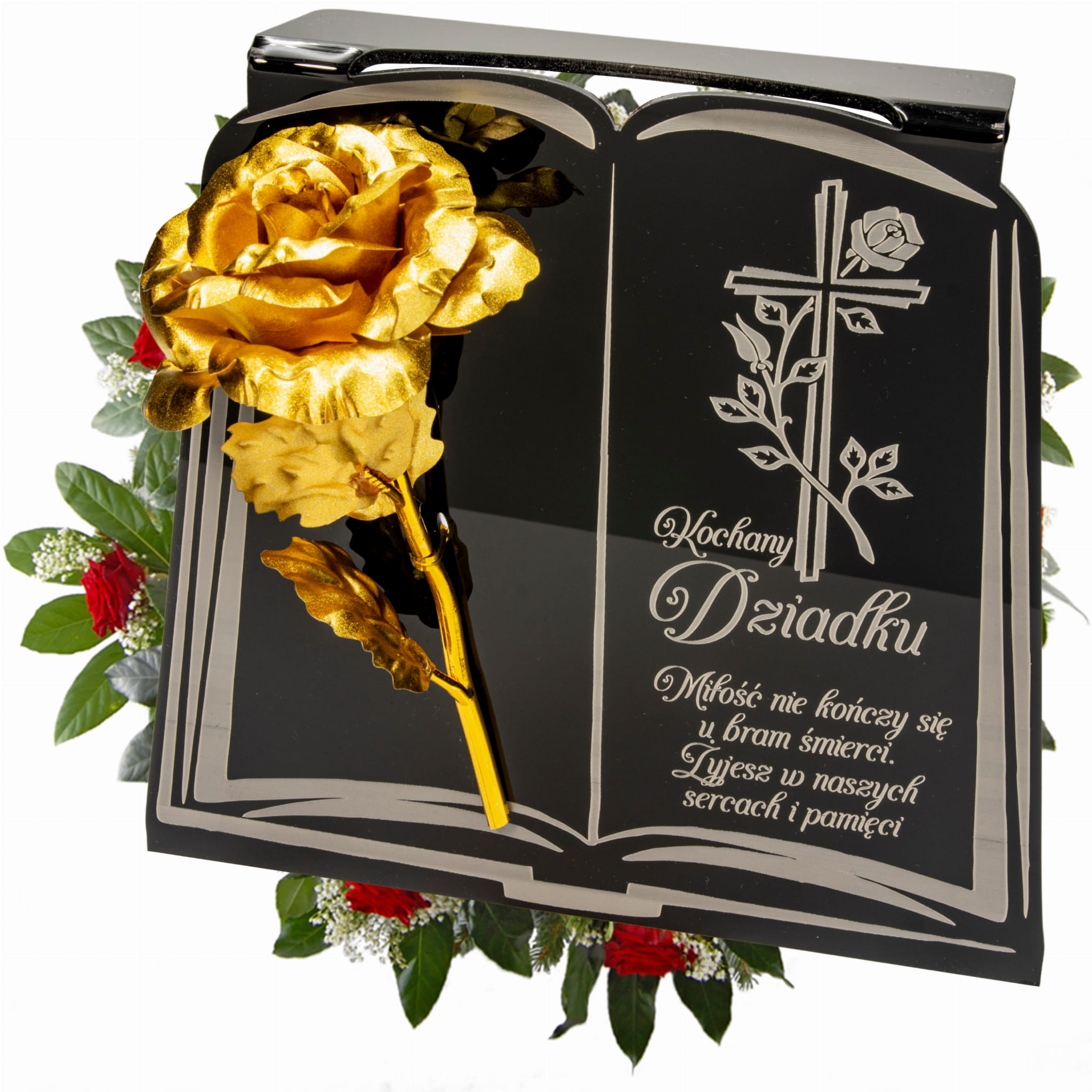 DEKORACJA na grób GRAWEROWANY ZNICZ podstawka na cmentarz RÓŻA DLA DZIADKA