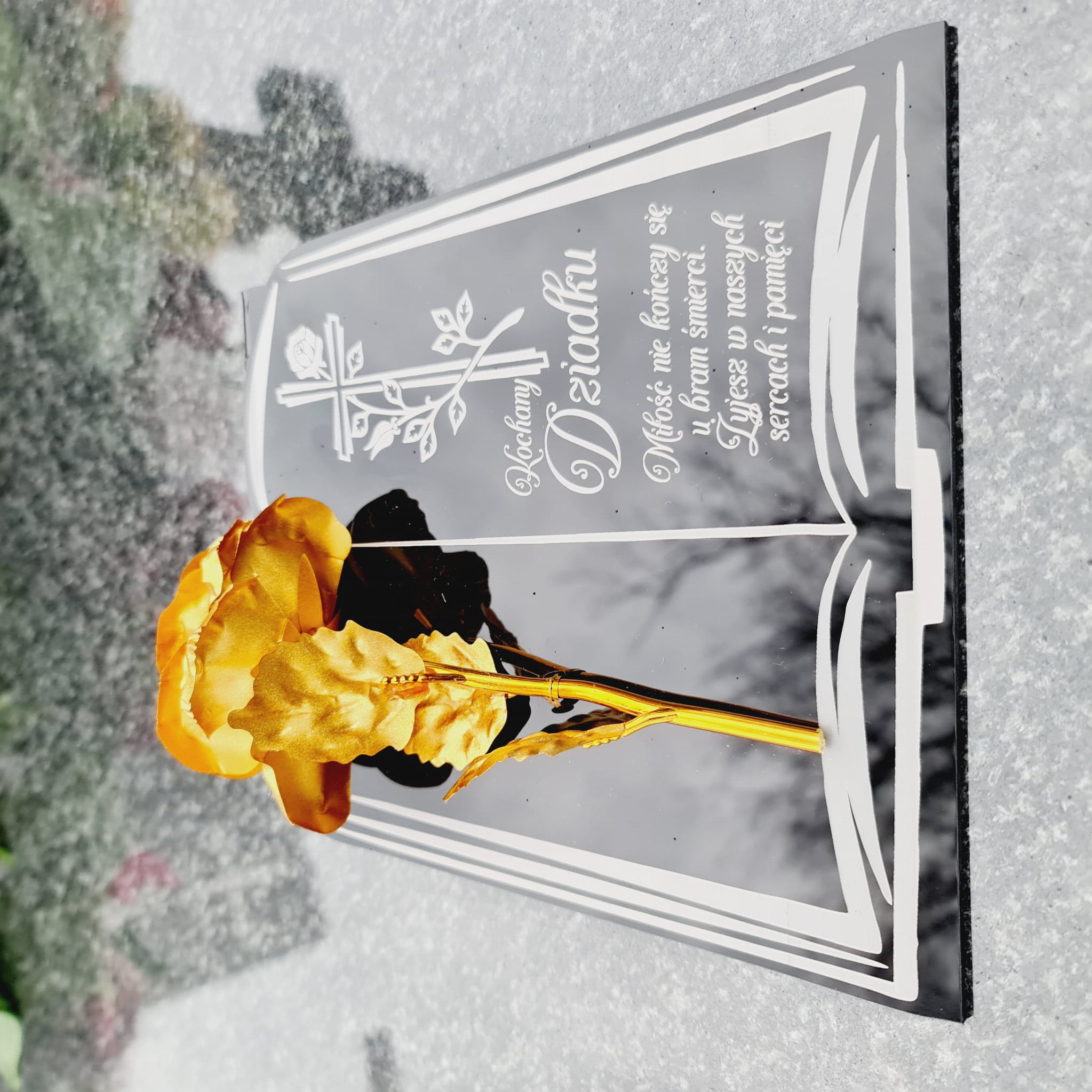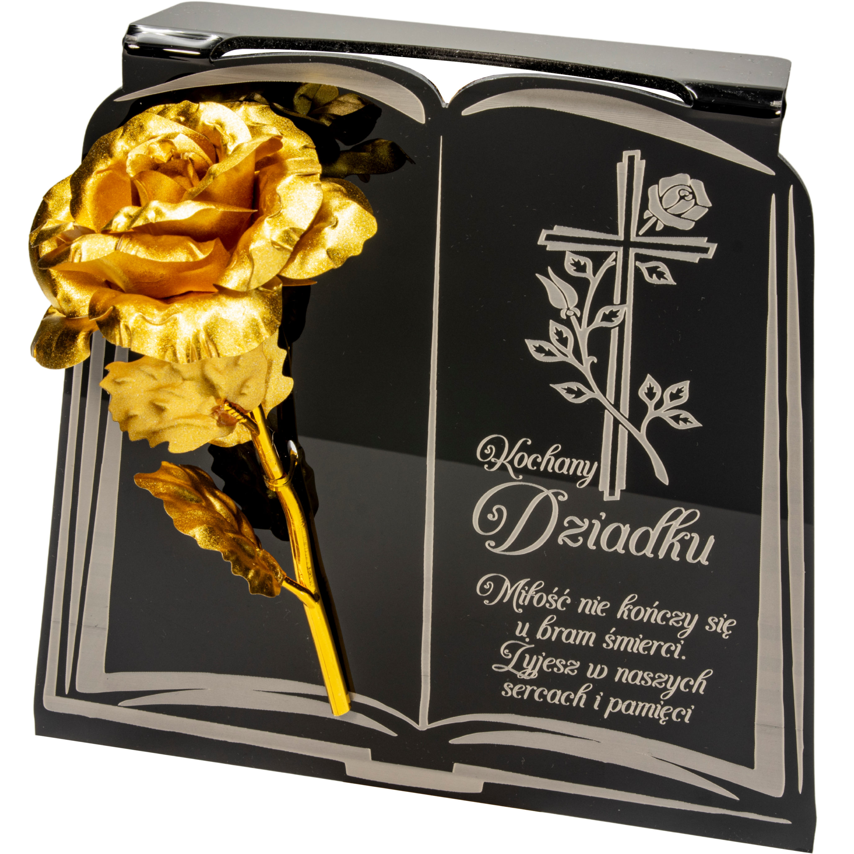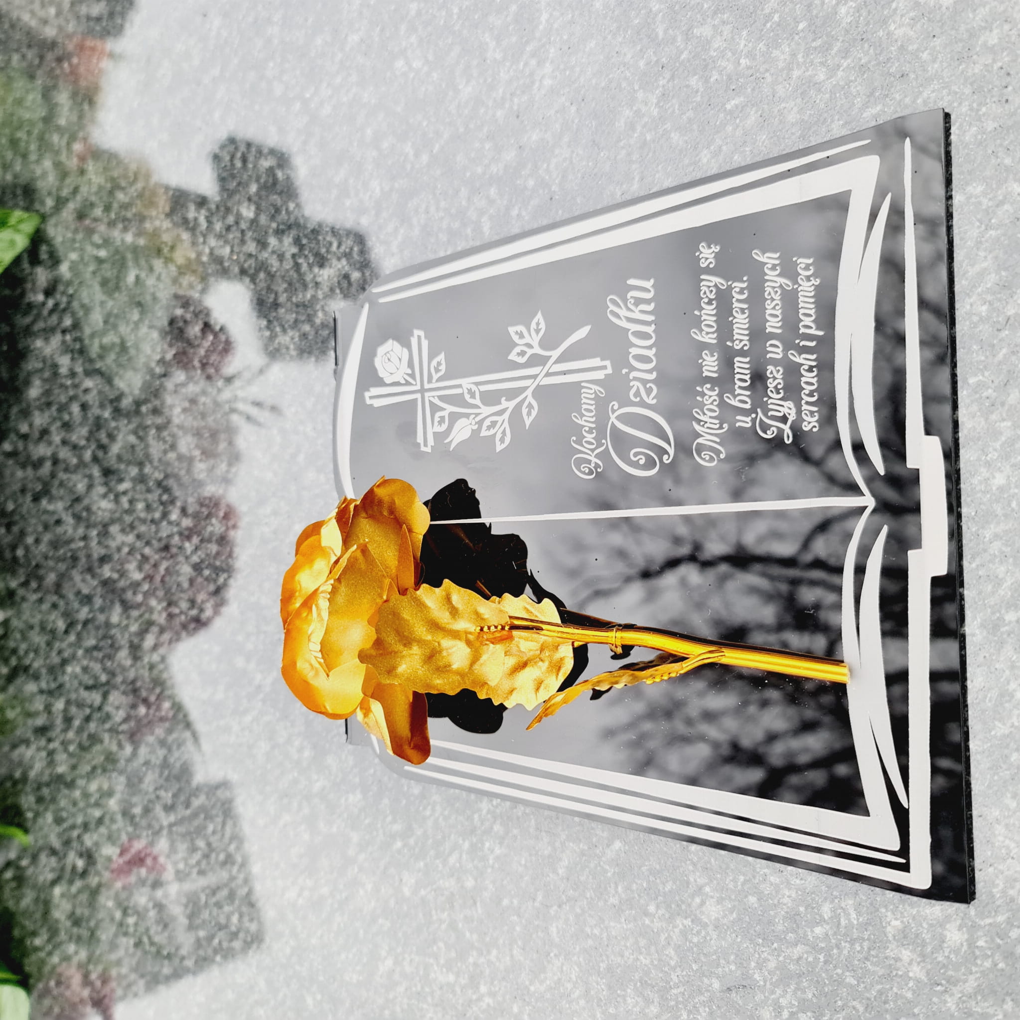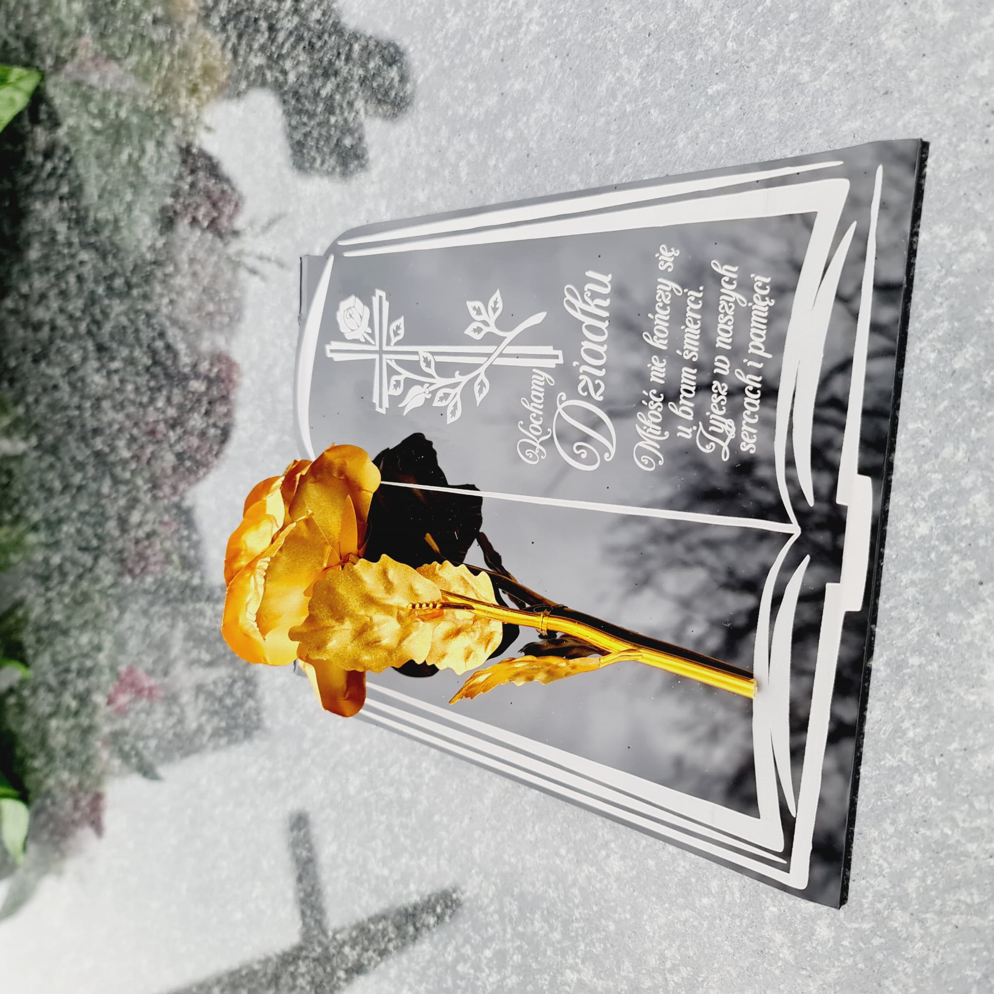 DEKORACJA na grób GRAWEROWANY ZNICZ podstawka na cmentarz RÓŻA DLA DZIADKA