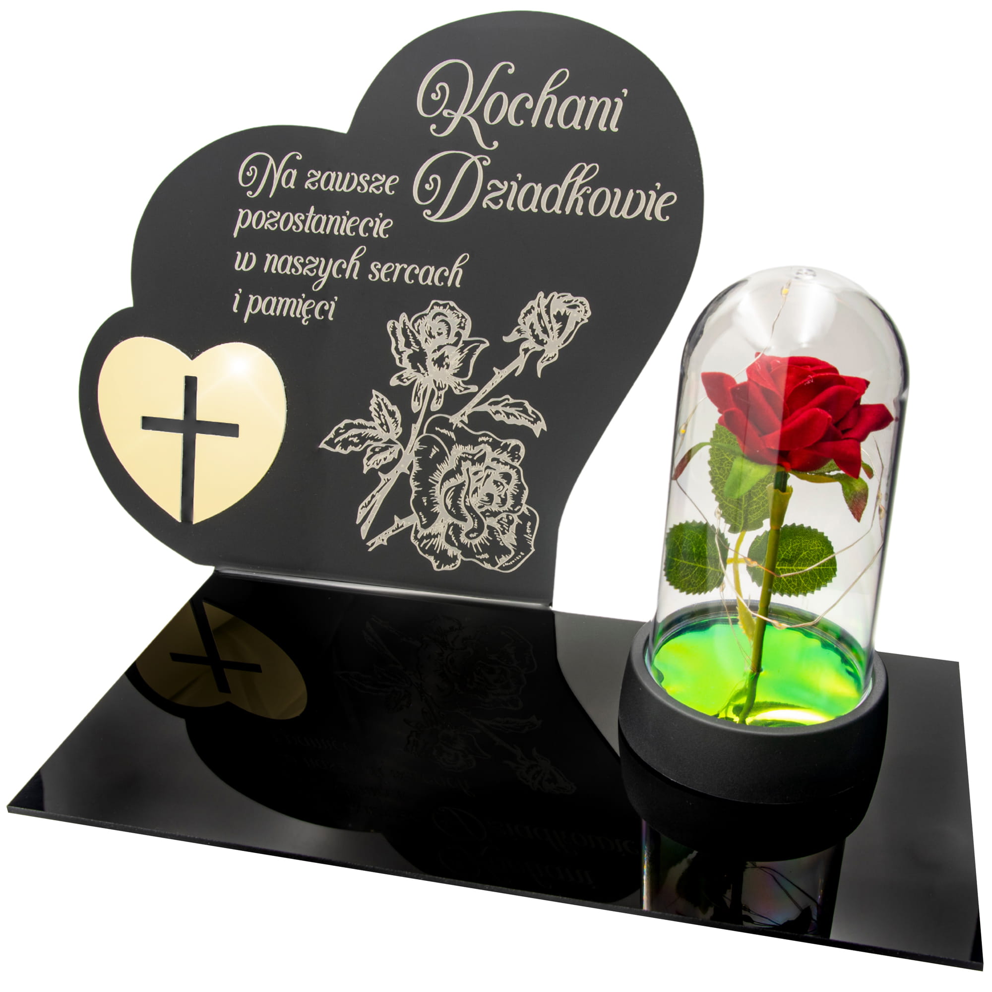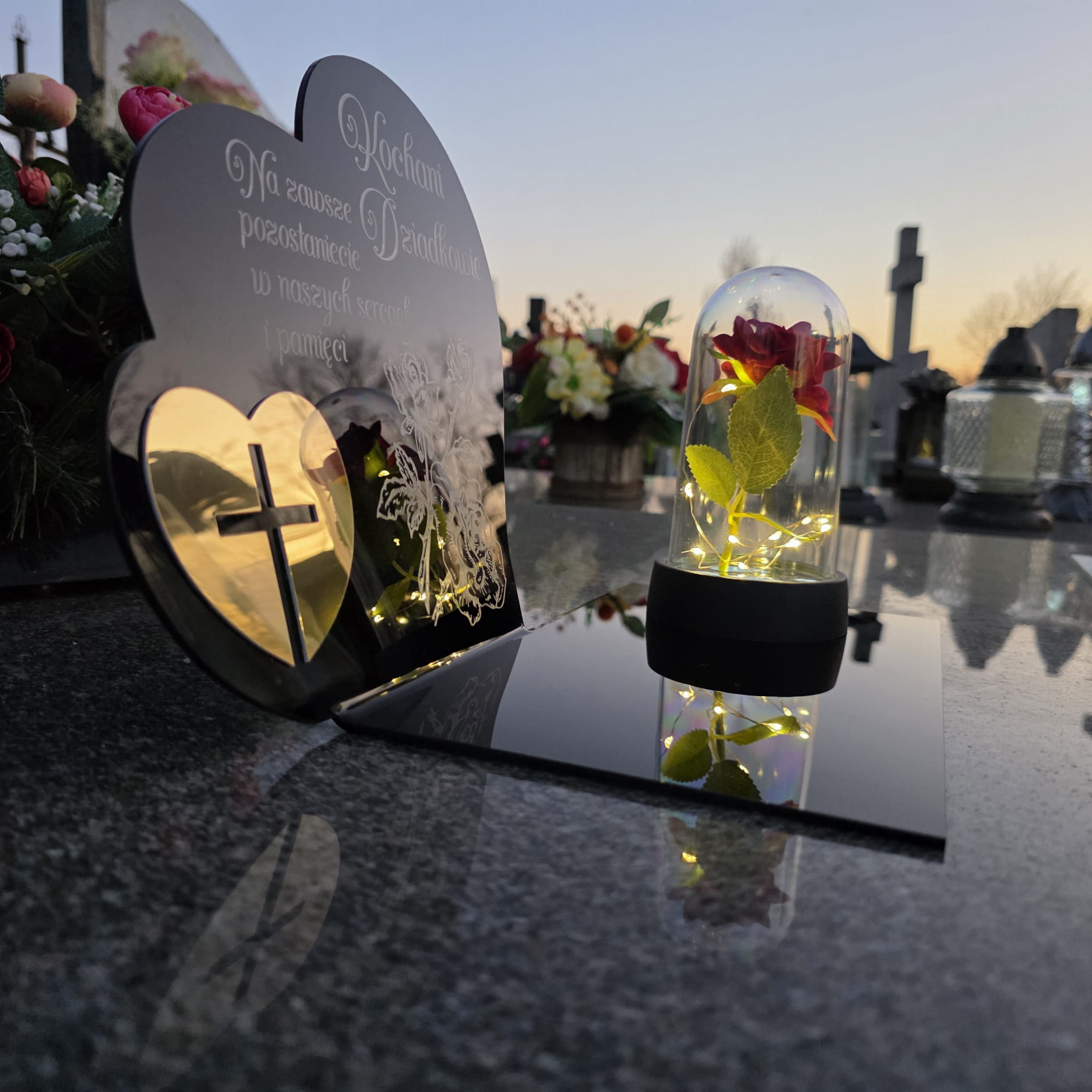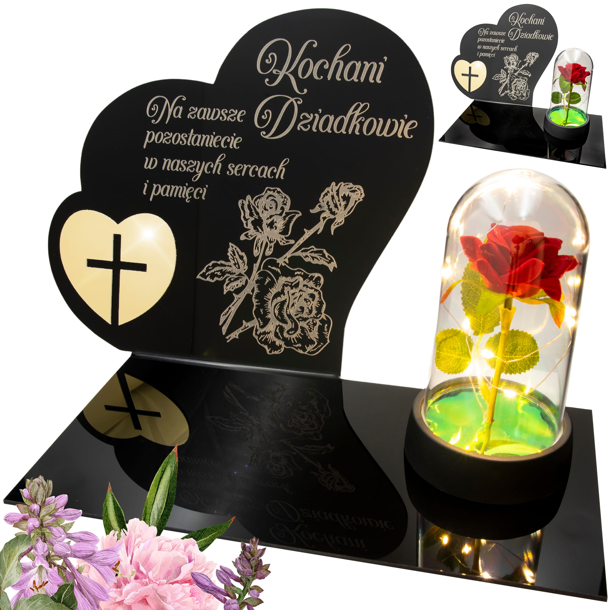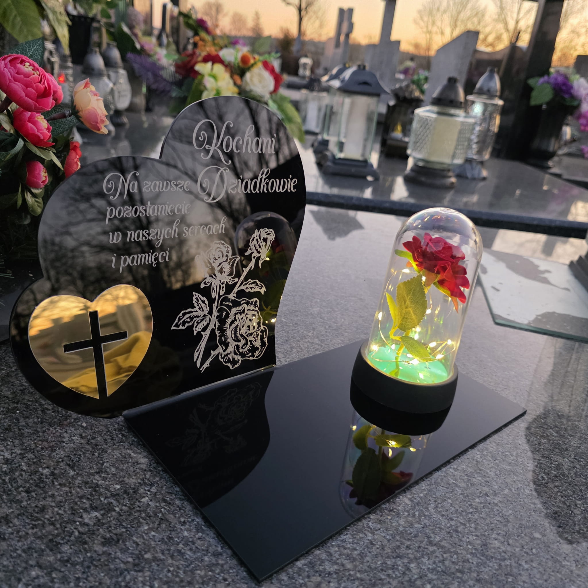 DEKORACJA na grób GRAWEROWANY ZNICZ podstawka na cmentarz RÓŻA DLA DZIADKÓW