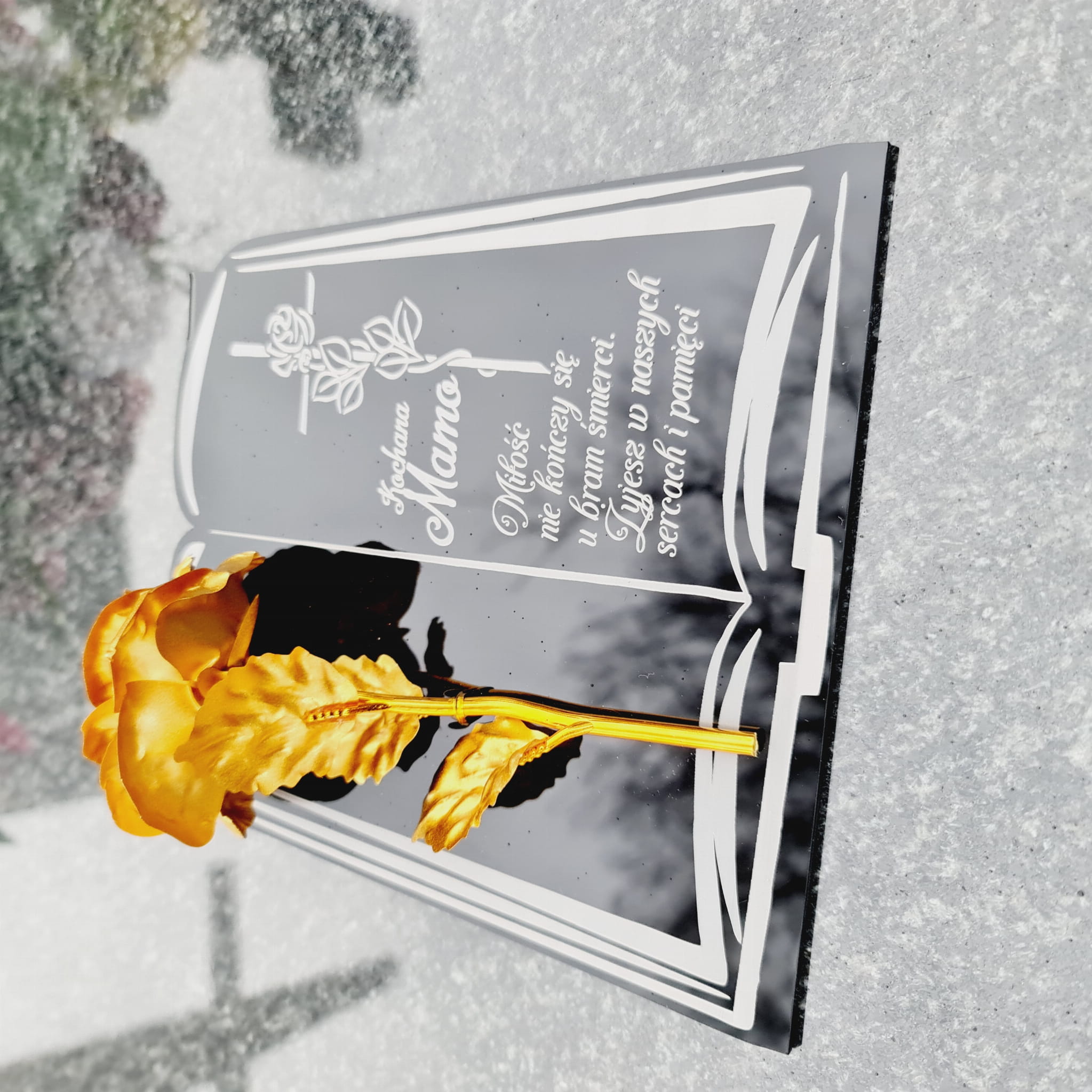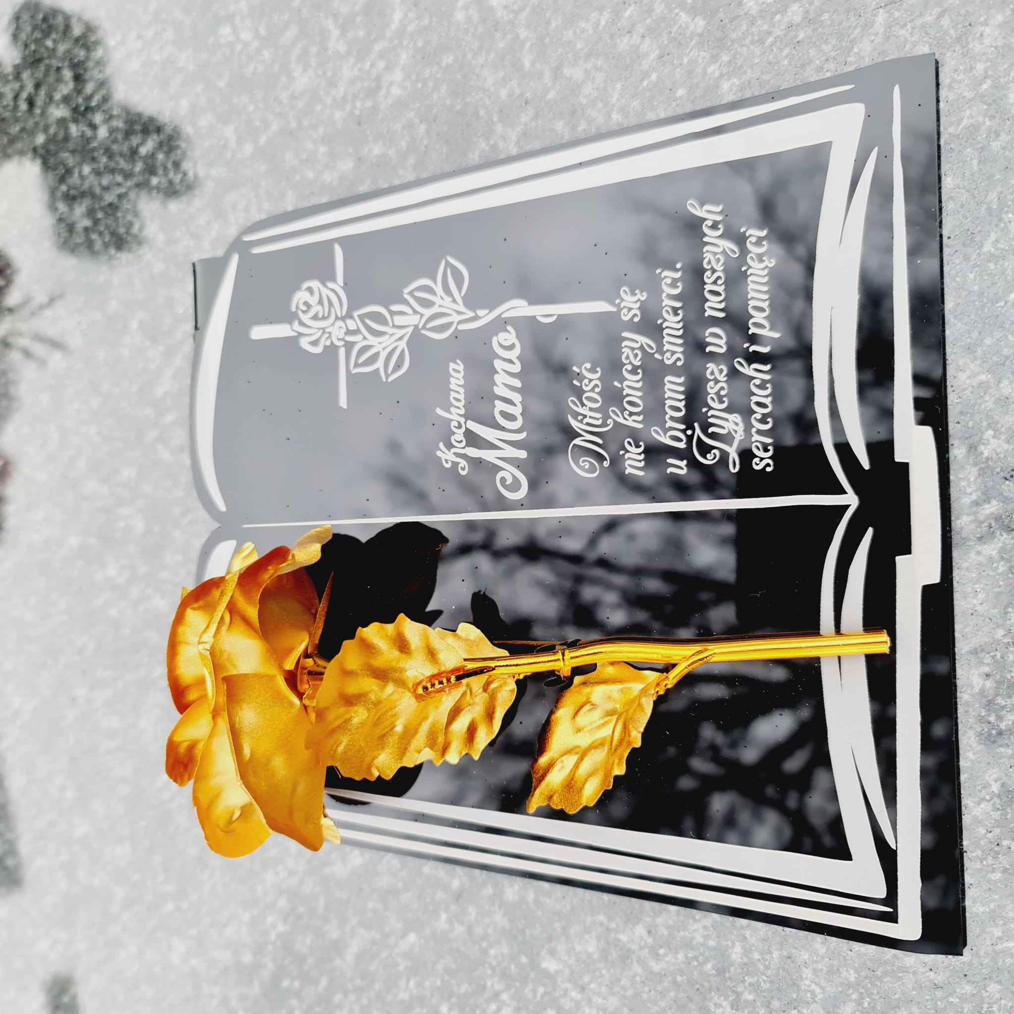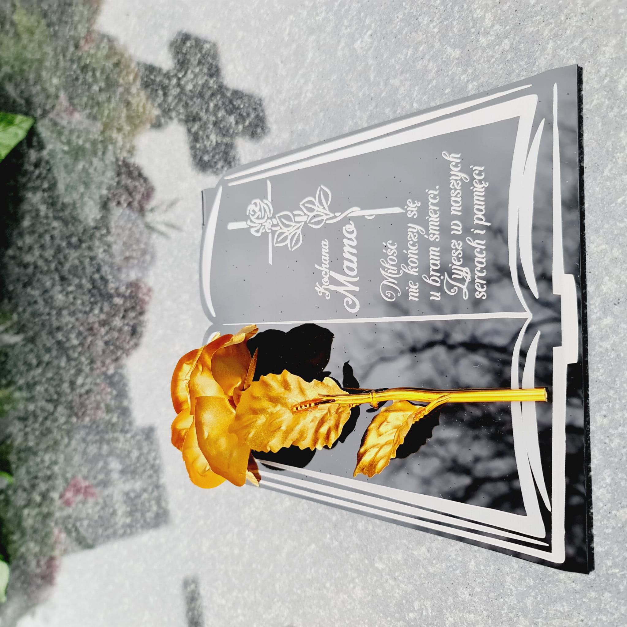 DEKORACJA na grób GRAWEROWANY ZNICZ podstawka na cmentarz RÓŻA DLA MAMY