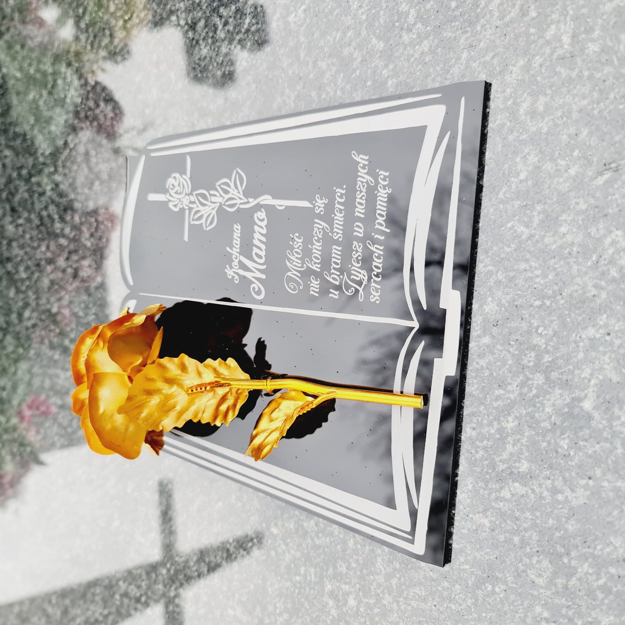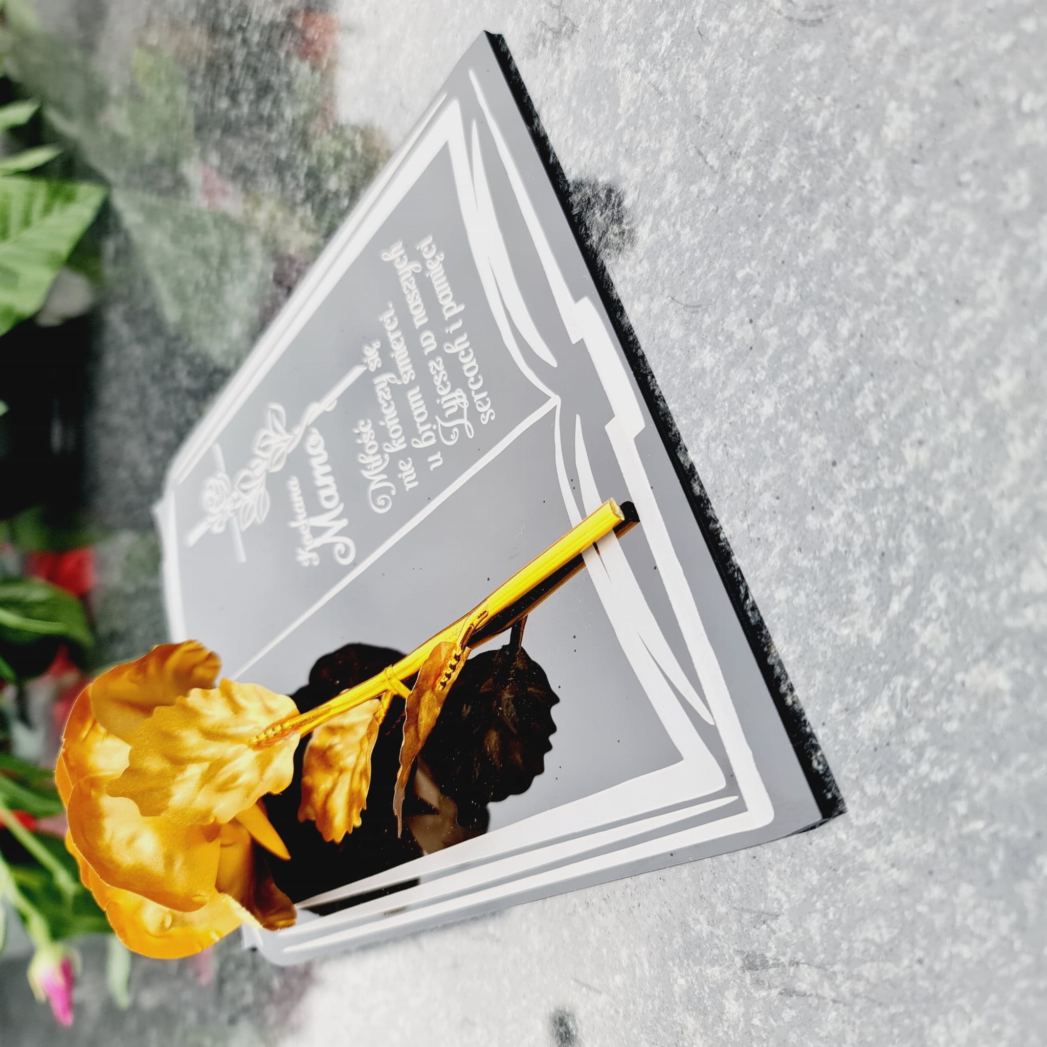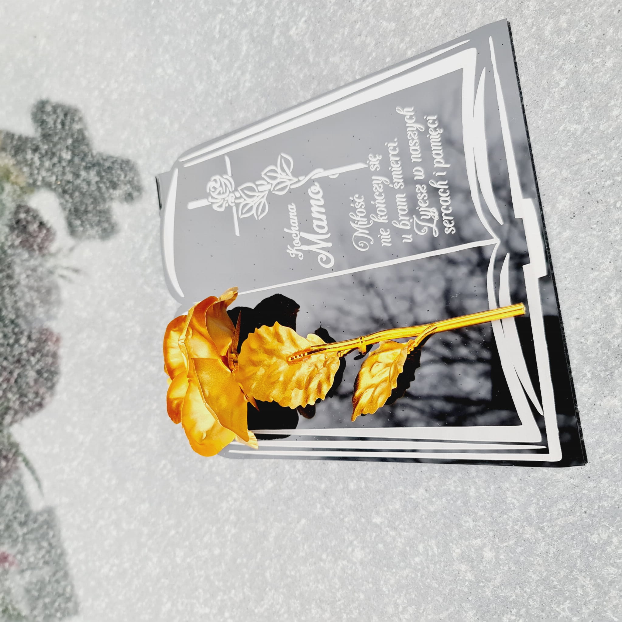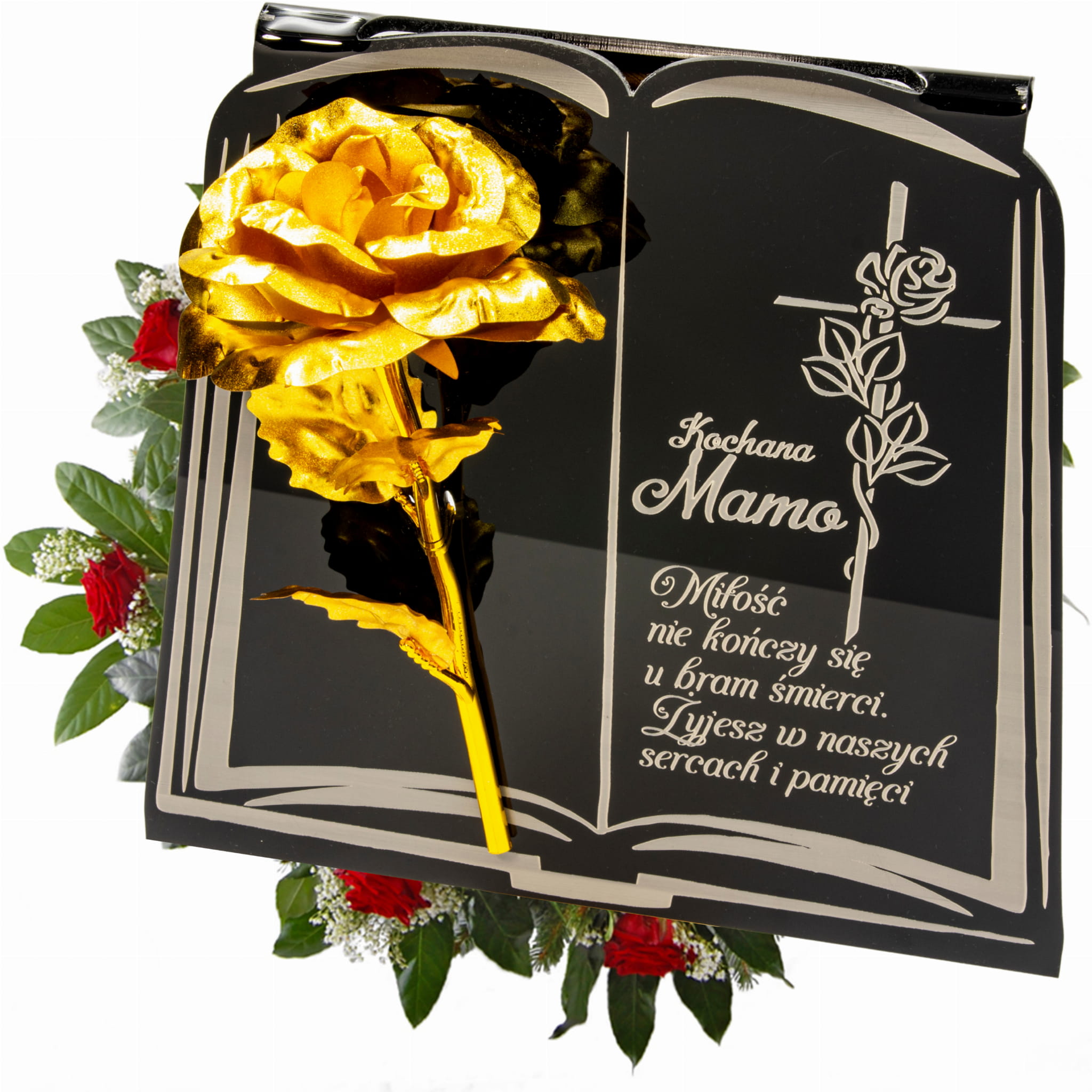 DEKORACJA na grób GRAWEROWANY ZNICZ podstawka na cmentarz RÓŻA DLA MAMY