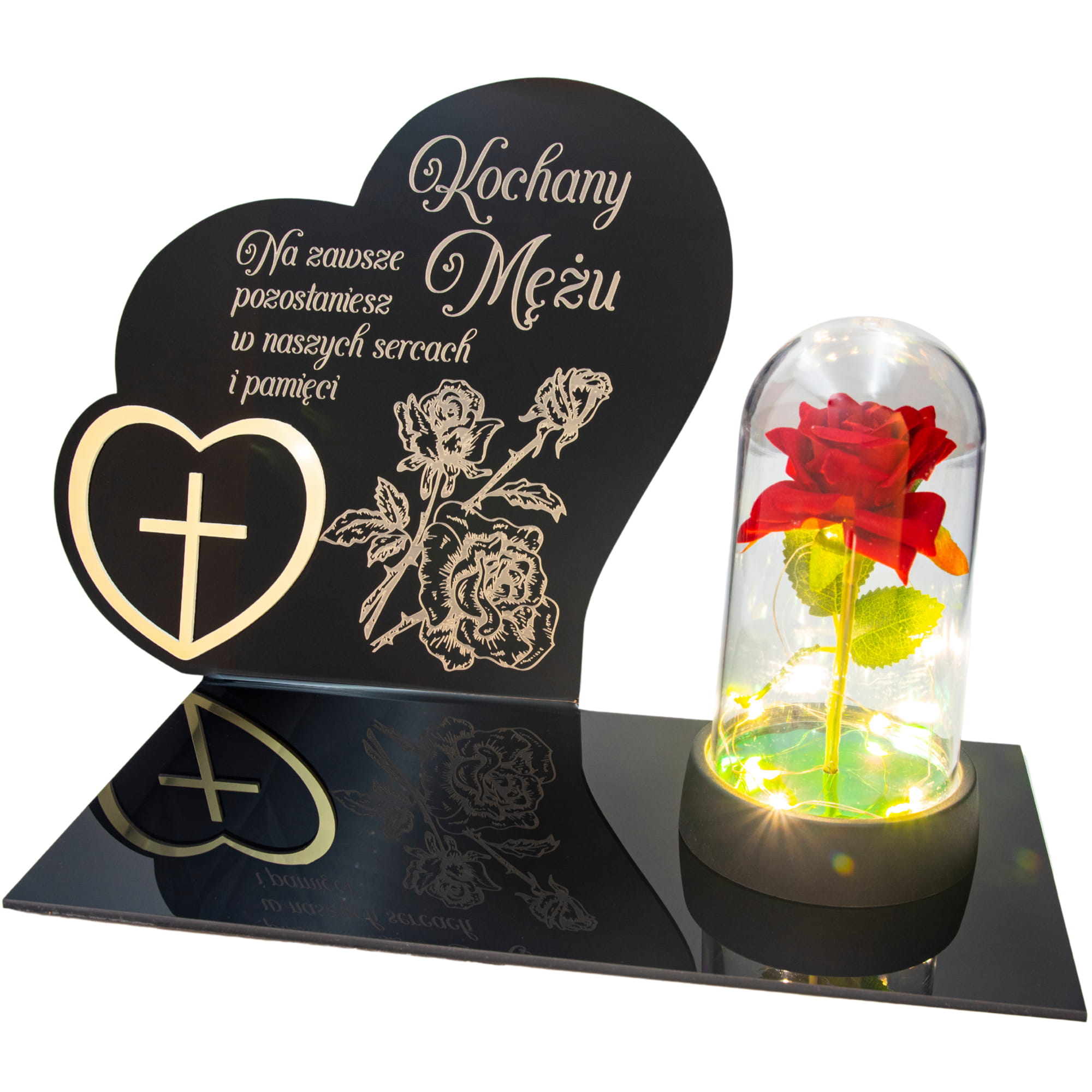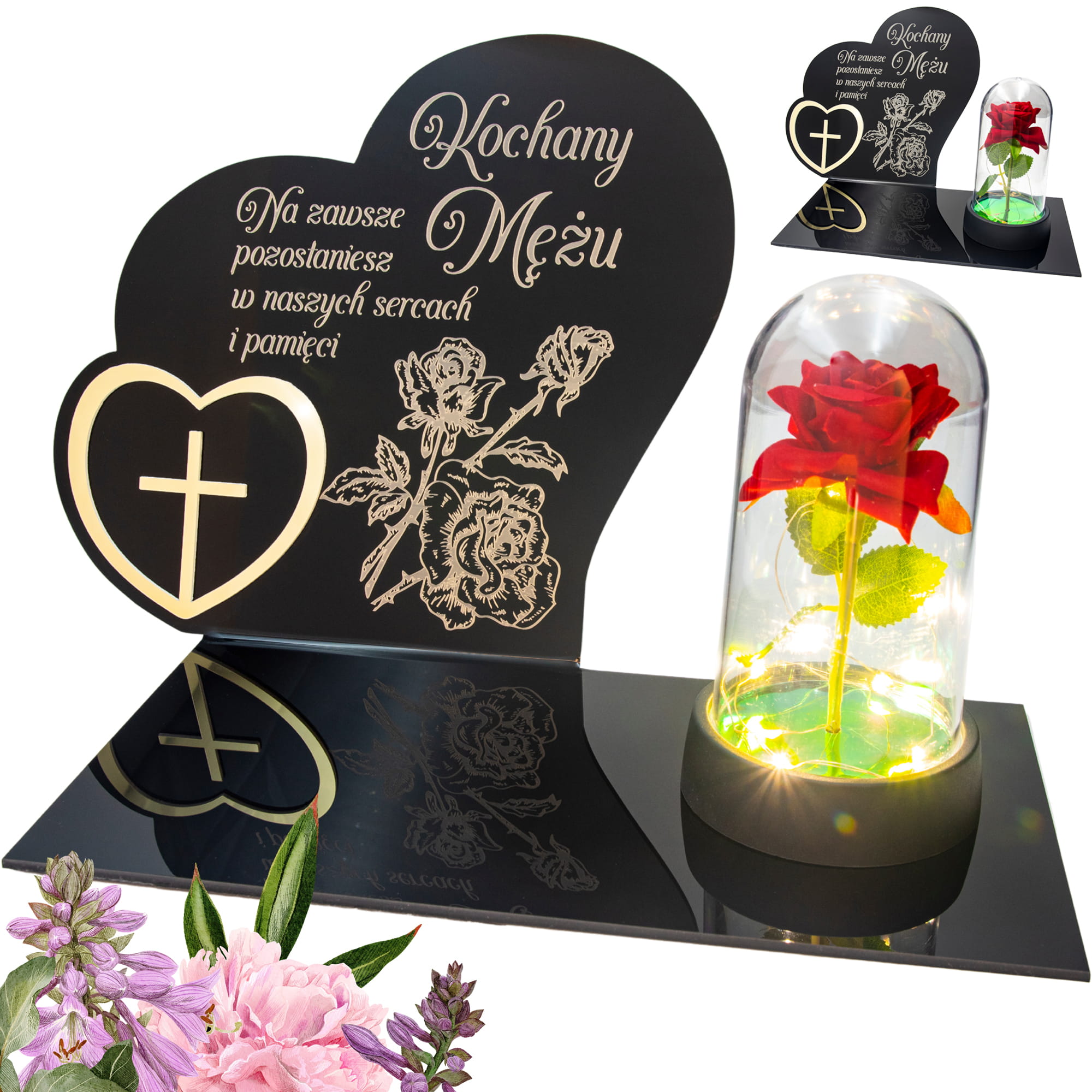 DEKORACJA na grób GRAWEROWANY ZNICZ podstawka na cmentarz RÓŻA DLA MĘŻA