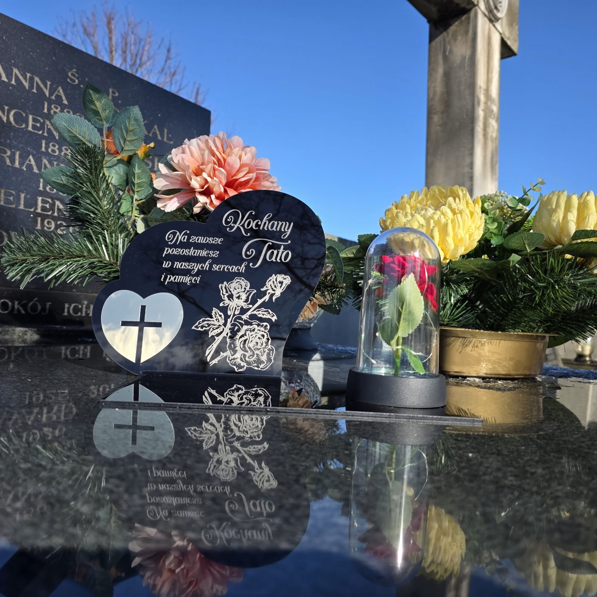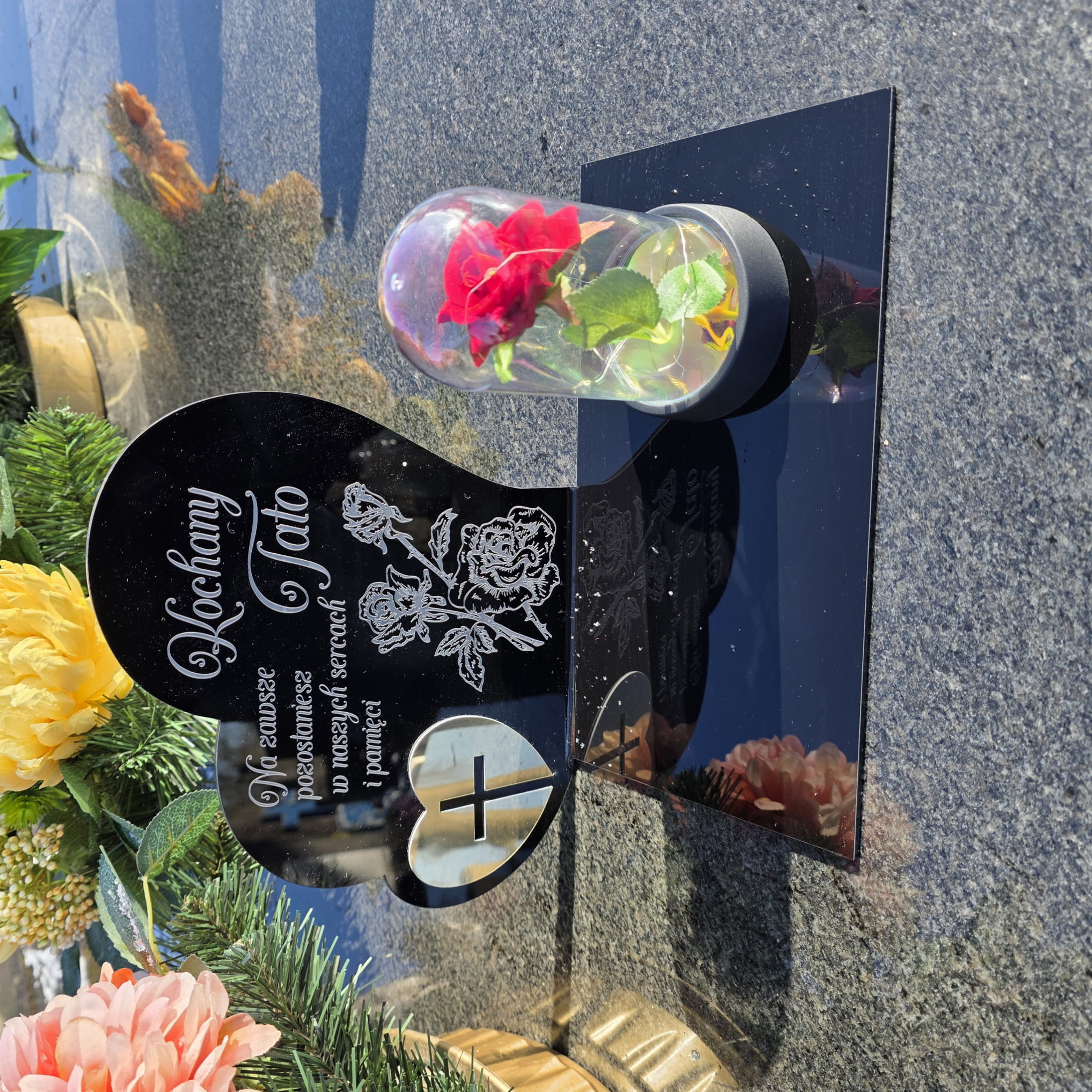 DEKORACJA na grób GRAWEROWANY ZNICZ podstawka na cmentarz RÓŻA DLA TATY