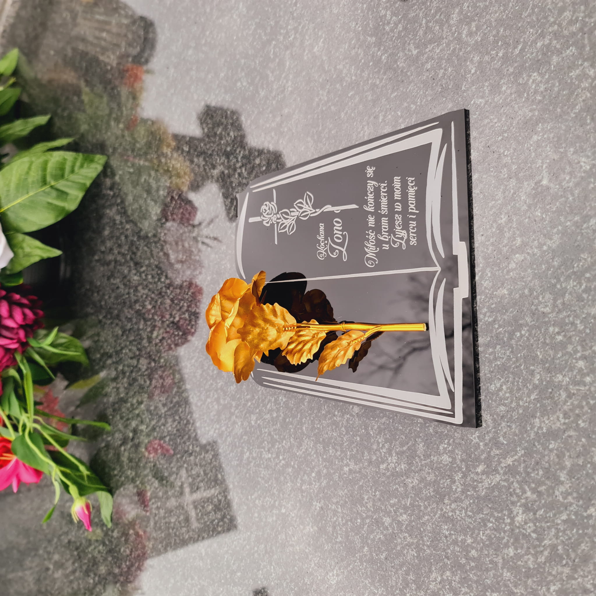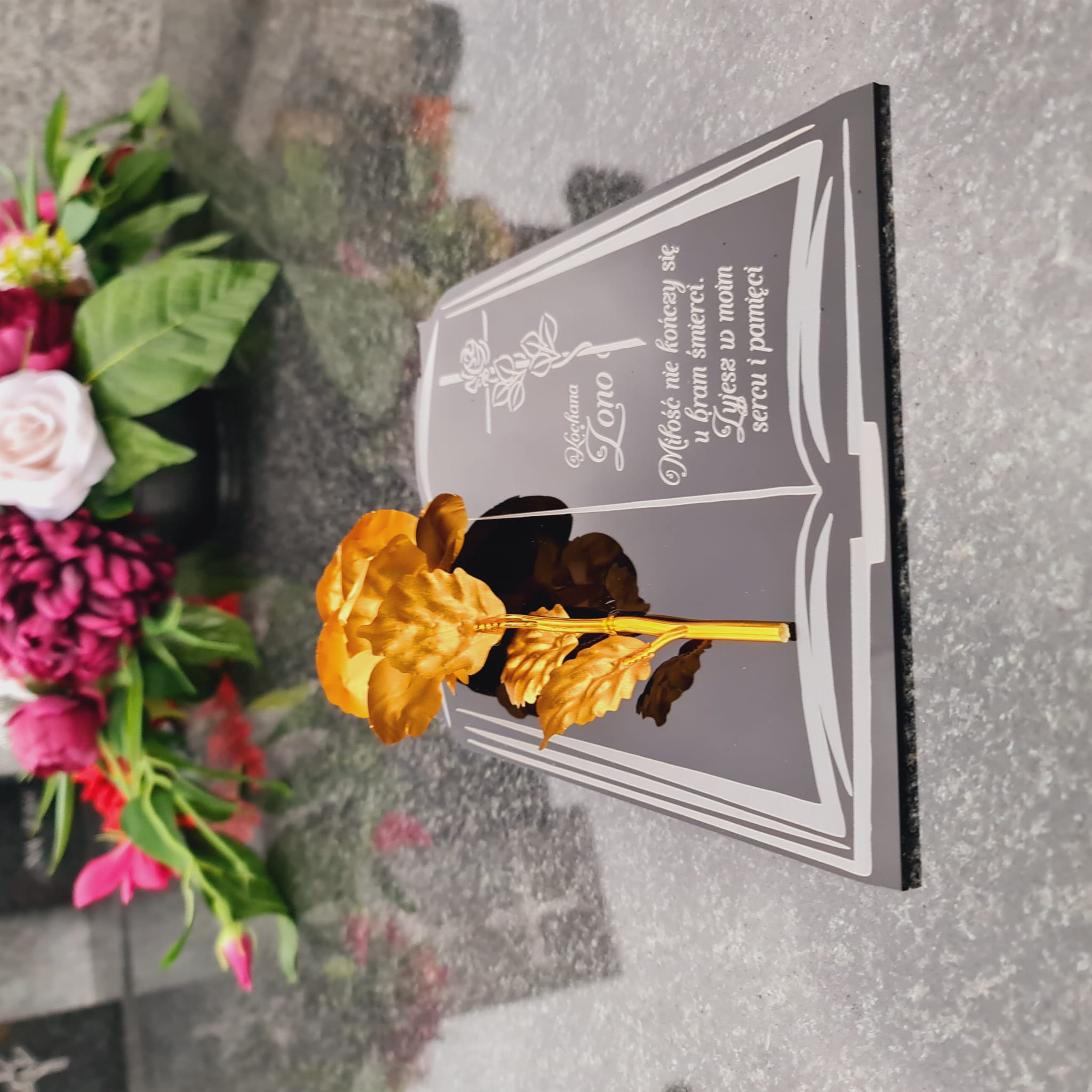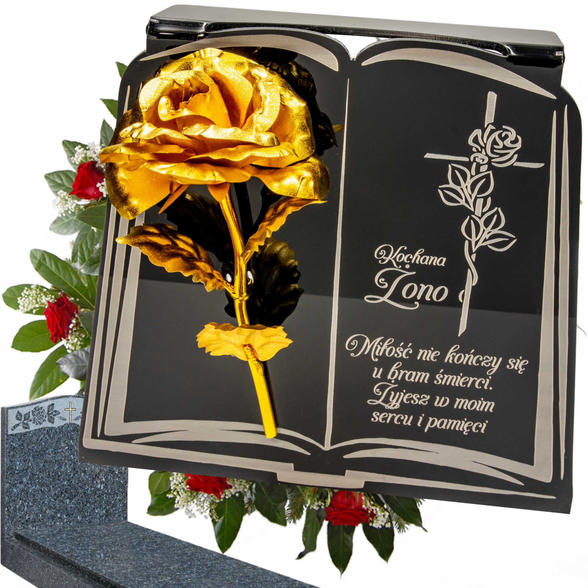 DEKORACJA na grób GRAWEROWANY ZNICZ podstawka na cmentarz RÓŻA DLA ŻONY