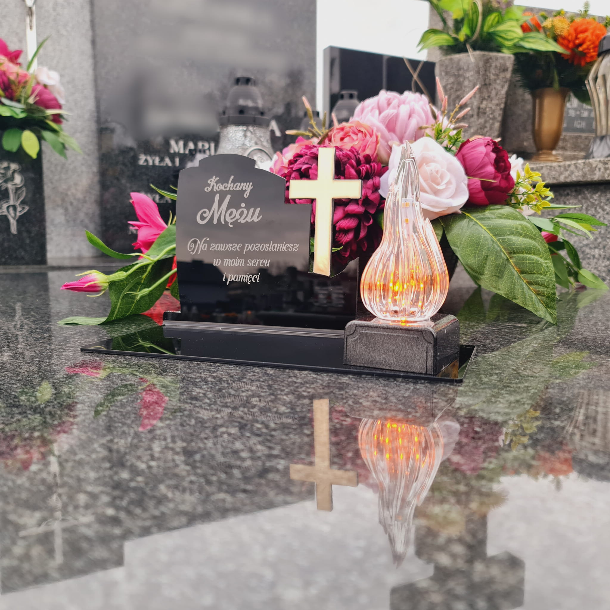 DEKORACJA na grób ZNICZ podstawka na cmentarz LAMPKA LED wieczna latarenka