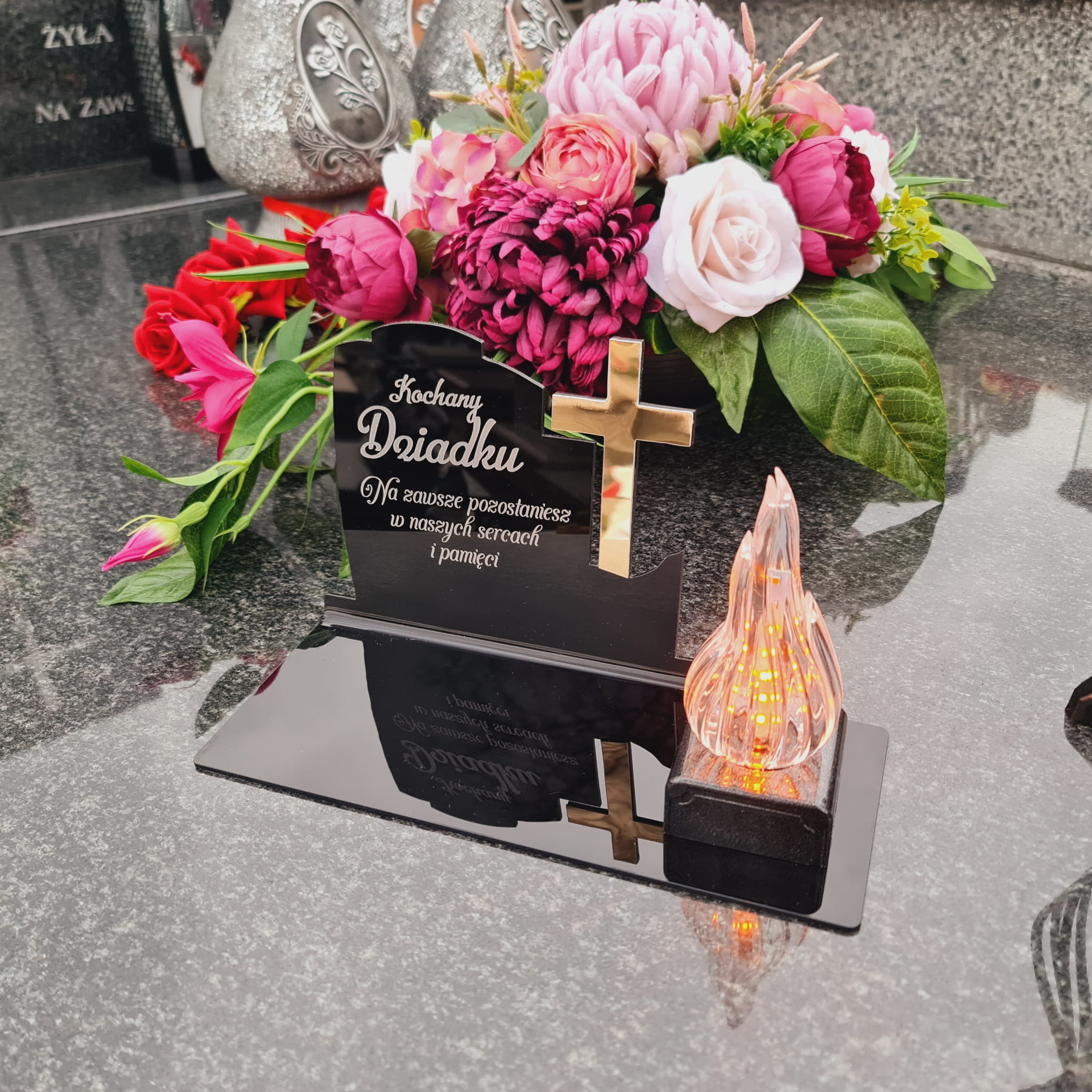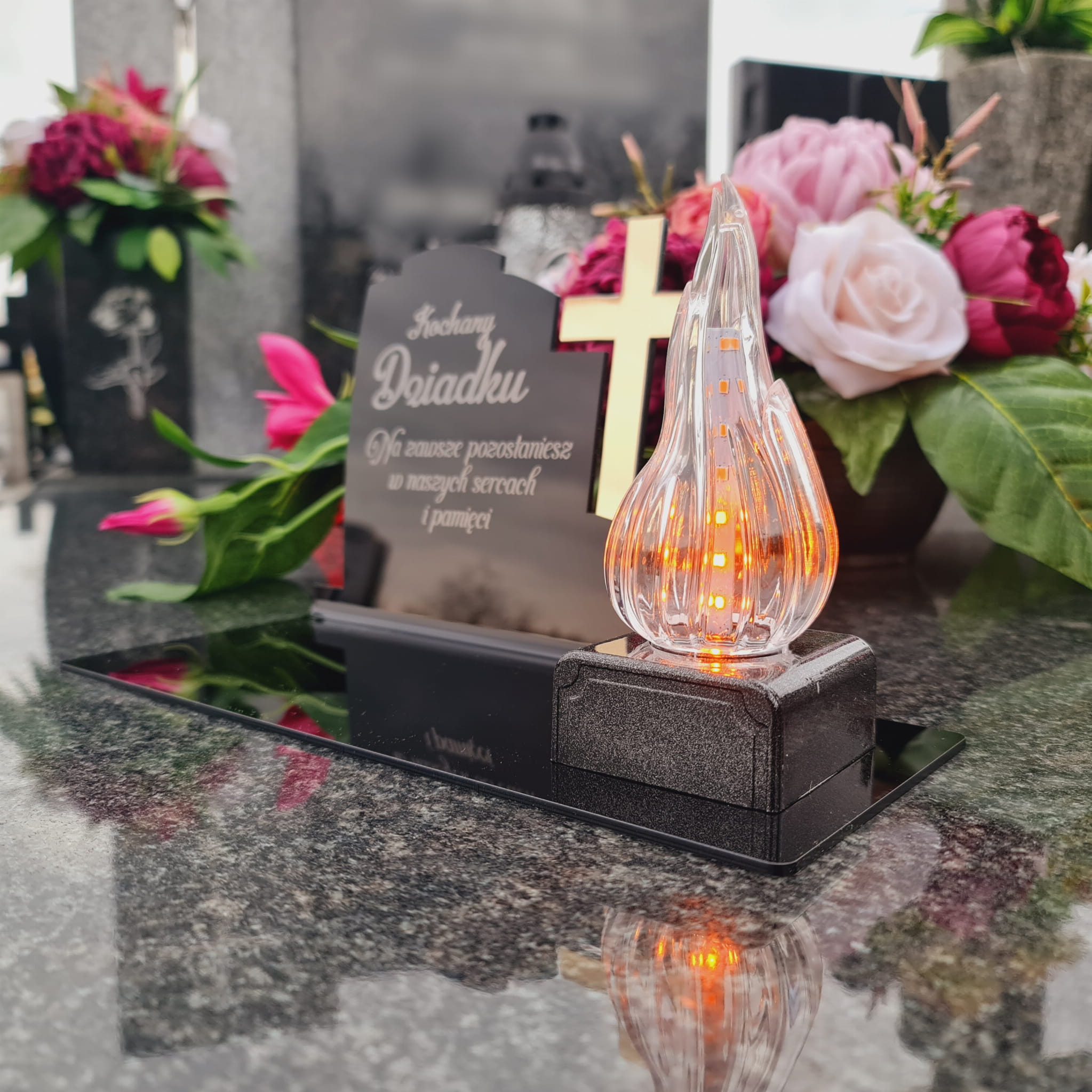 DEKORACJA na grób ZNICZ podstawka na cmentarz LAMPKA LED wieczna latarenka