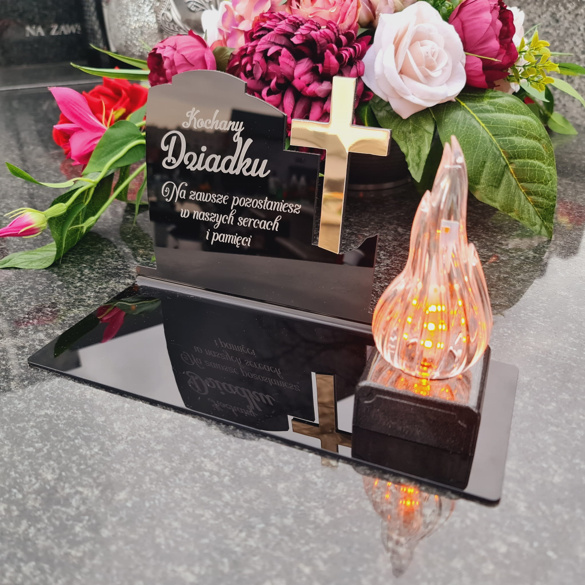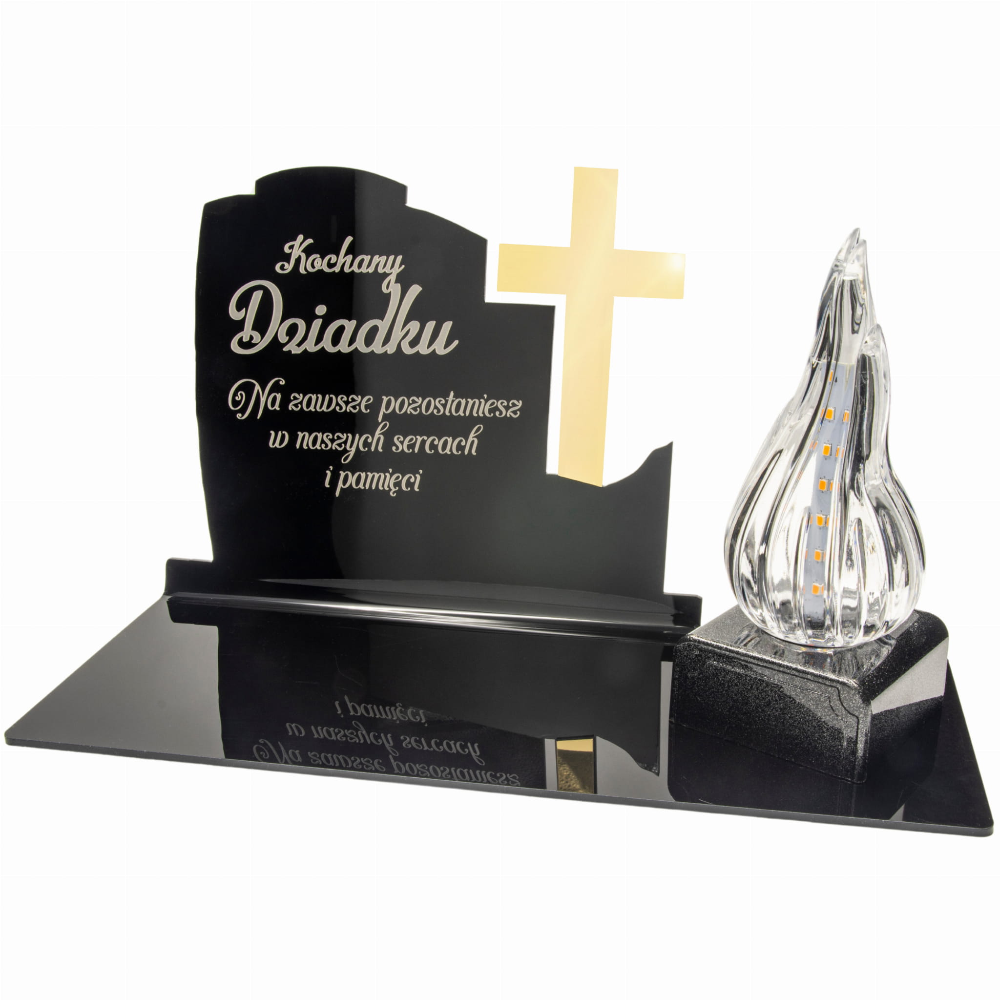 WIECZNY ZNICZ NA GRÓB Z GRAWEROWANĄ PODSTAWKĄ ZE SZKŁA AKRYLOWEGO