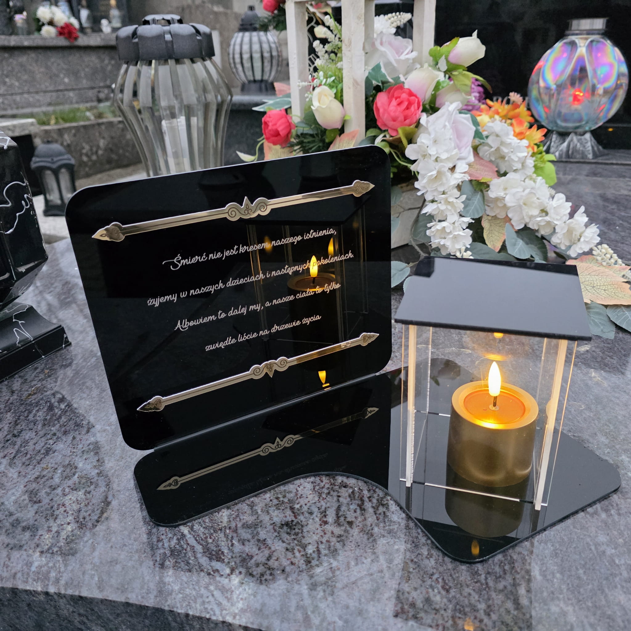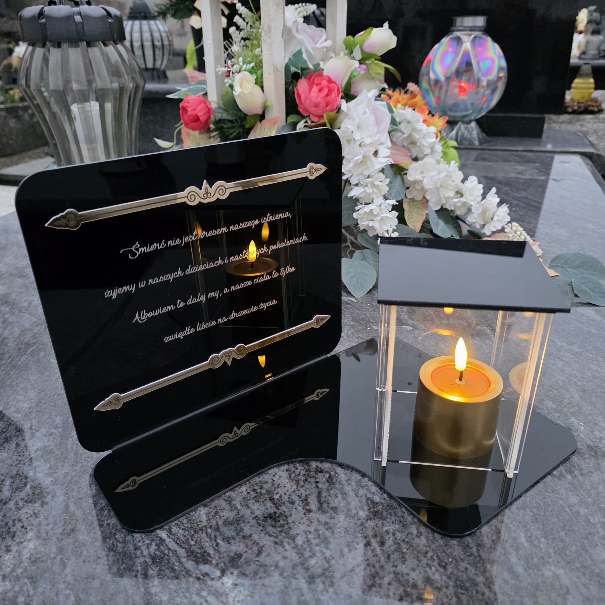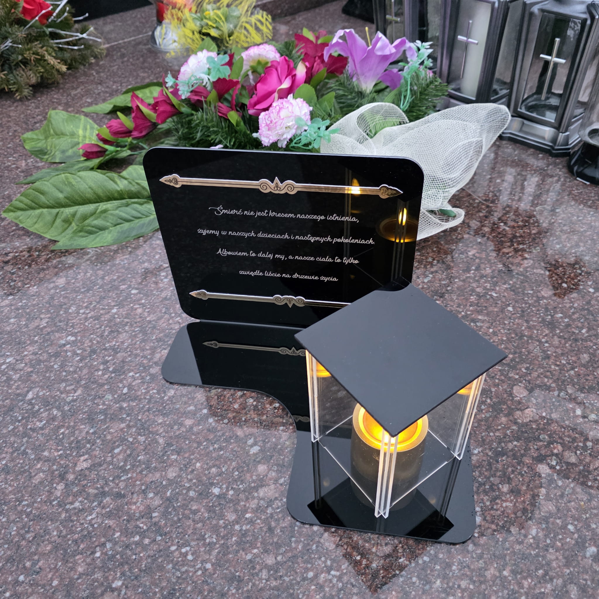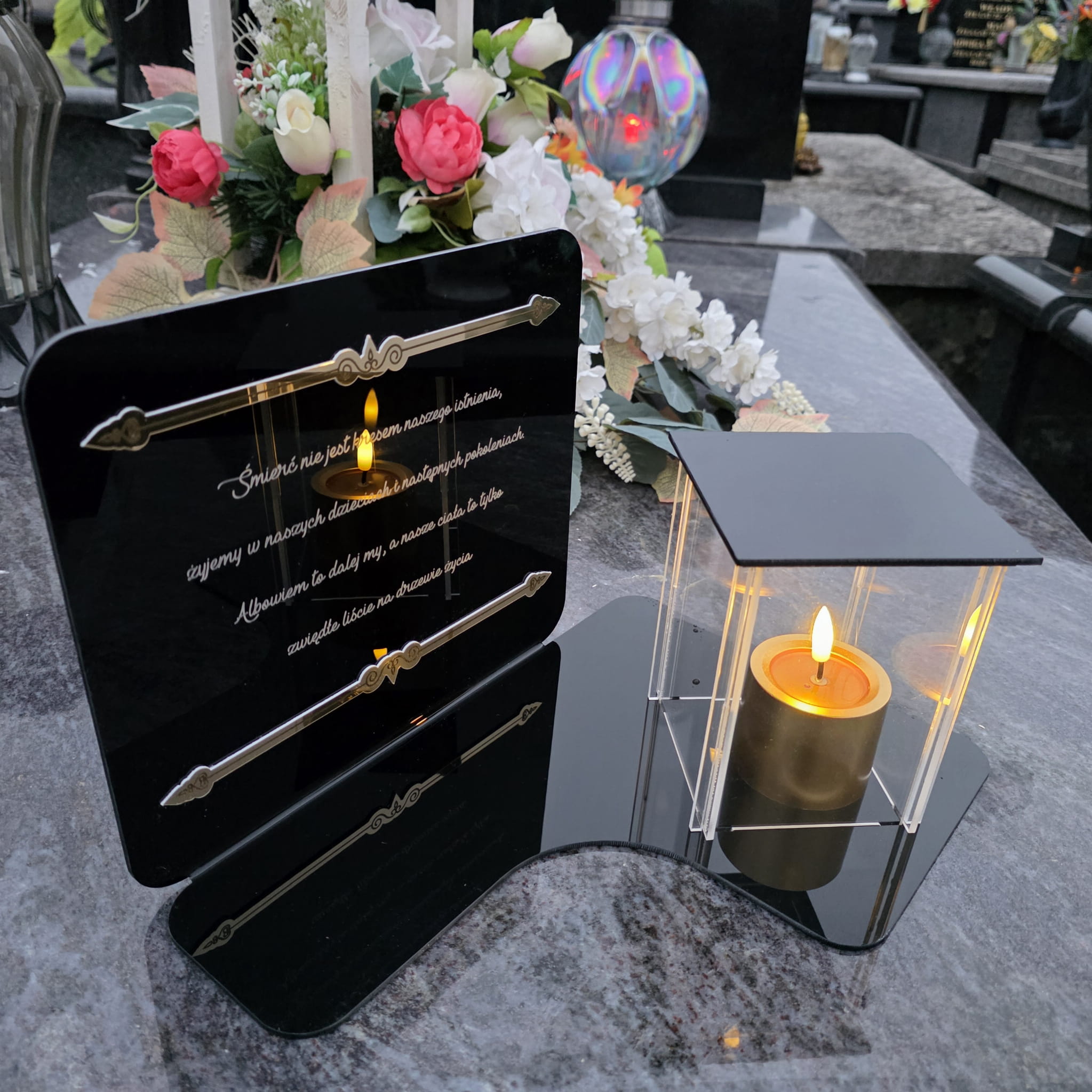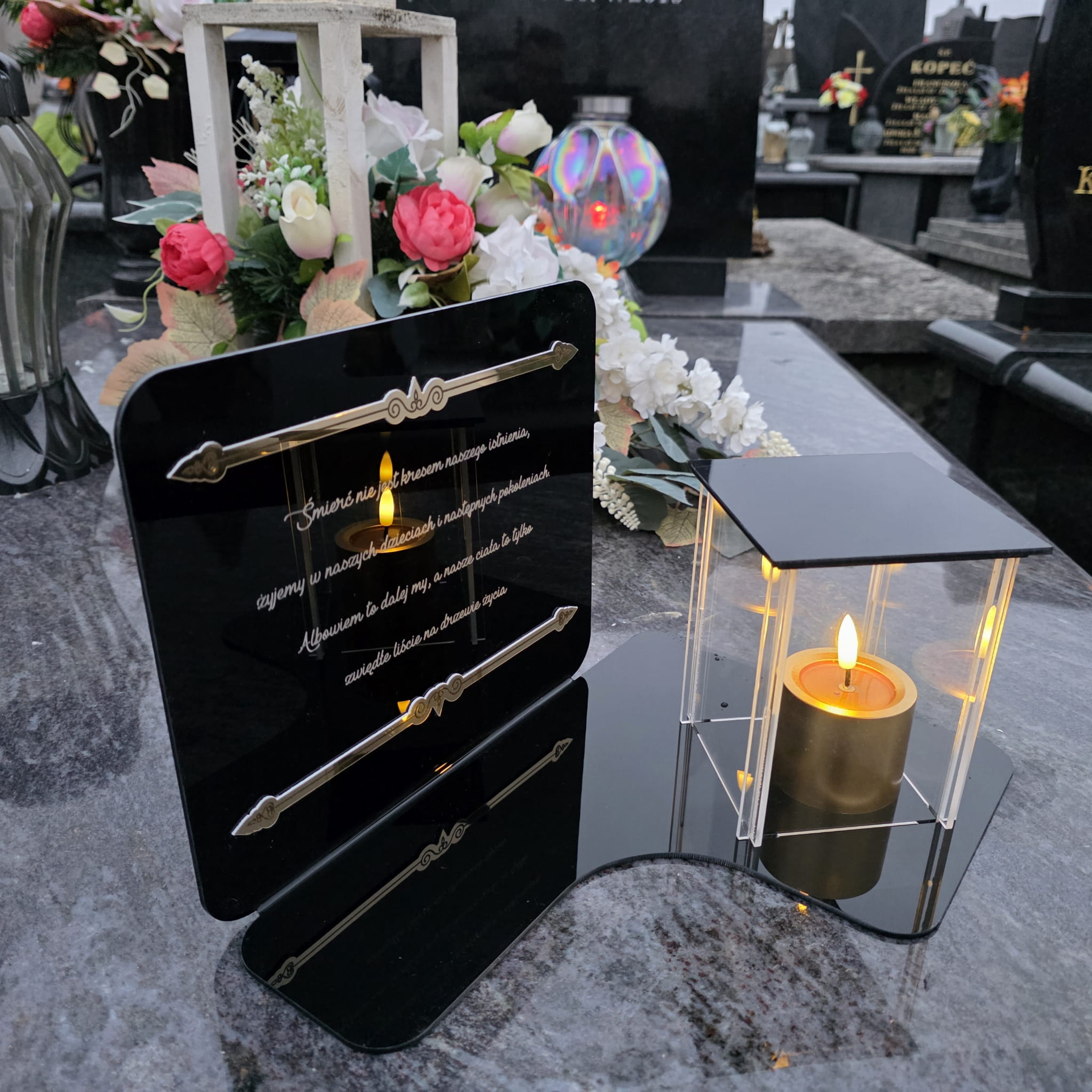 DEKORACJA na grób ZNICZ podstawka na cmentarz LAMPKA LED wieczna latarenka