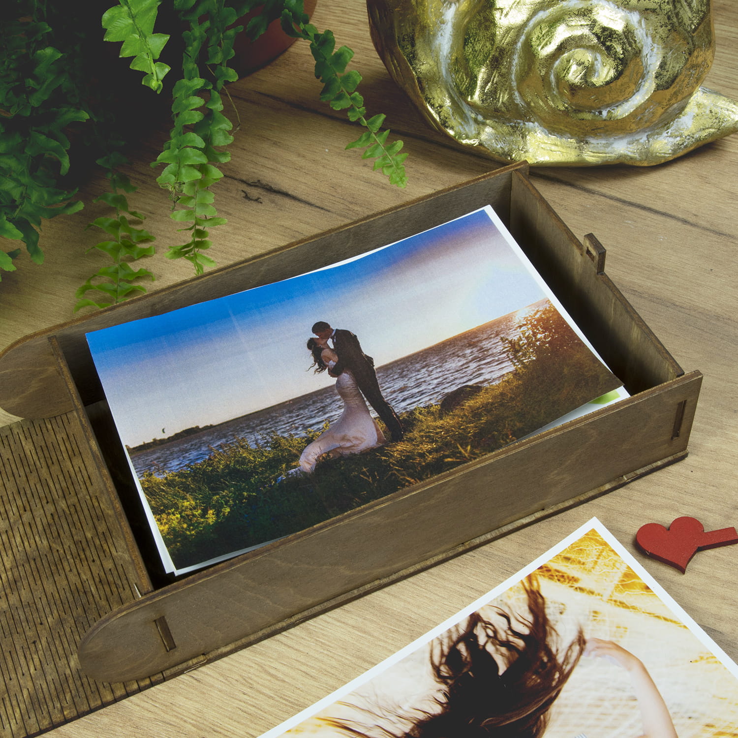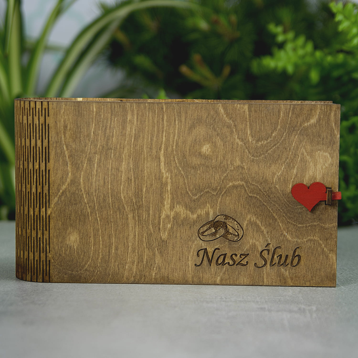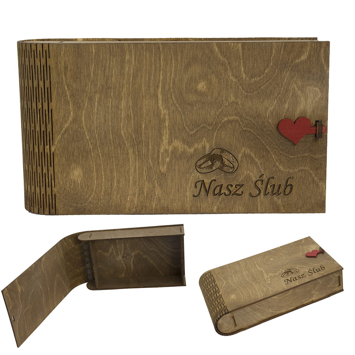 Drewniana Pamiątka Ślubna PUDEŁKO NA 150 ZDJĘĆ 10X15