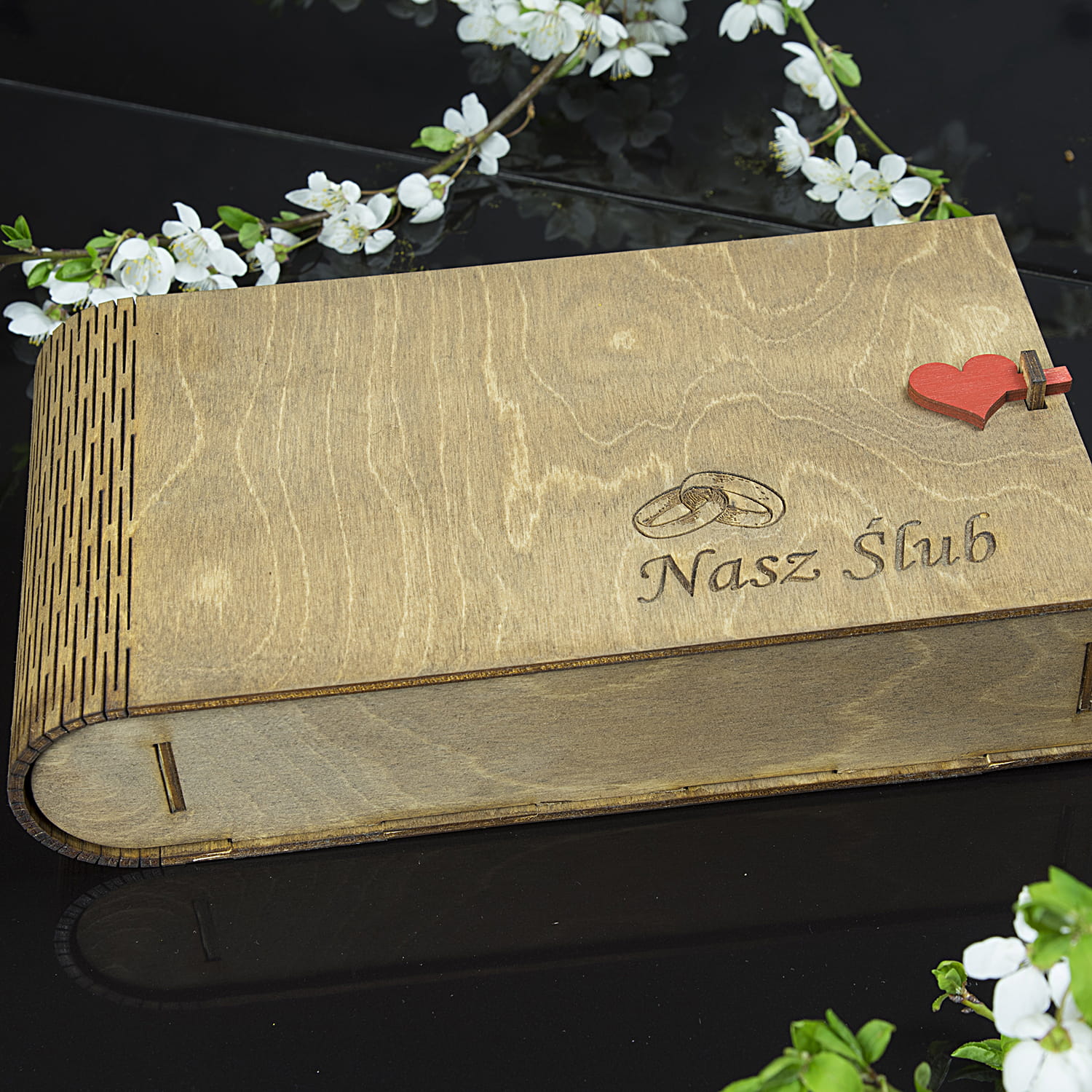 DREWNIANE PUDEŁKO NA ZDJĘCIA PAMIĄTKA NASZ ŚLUB
