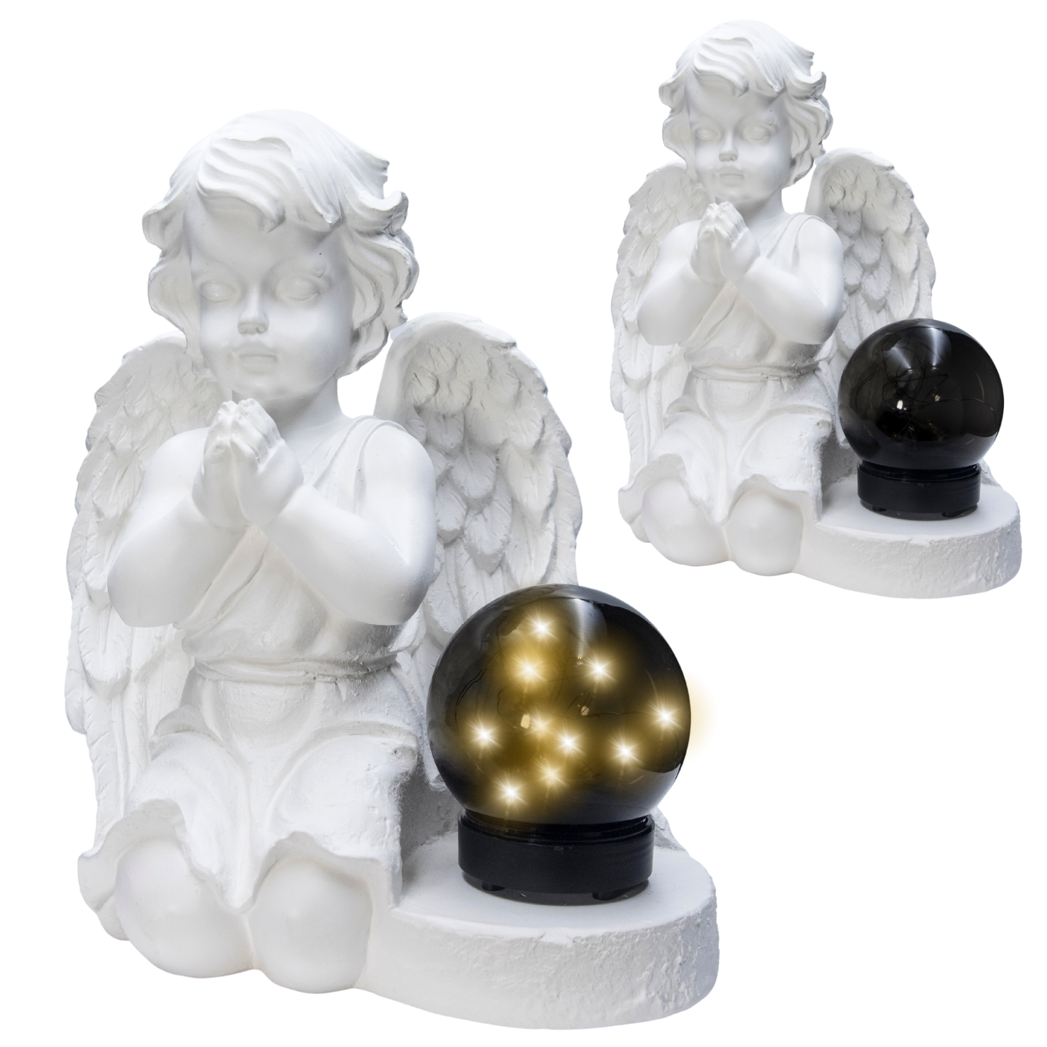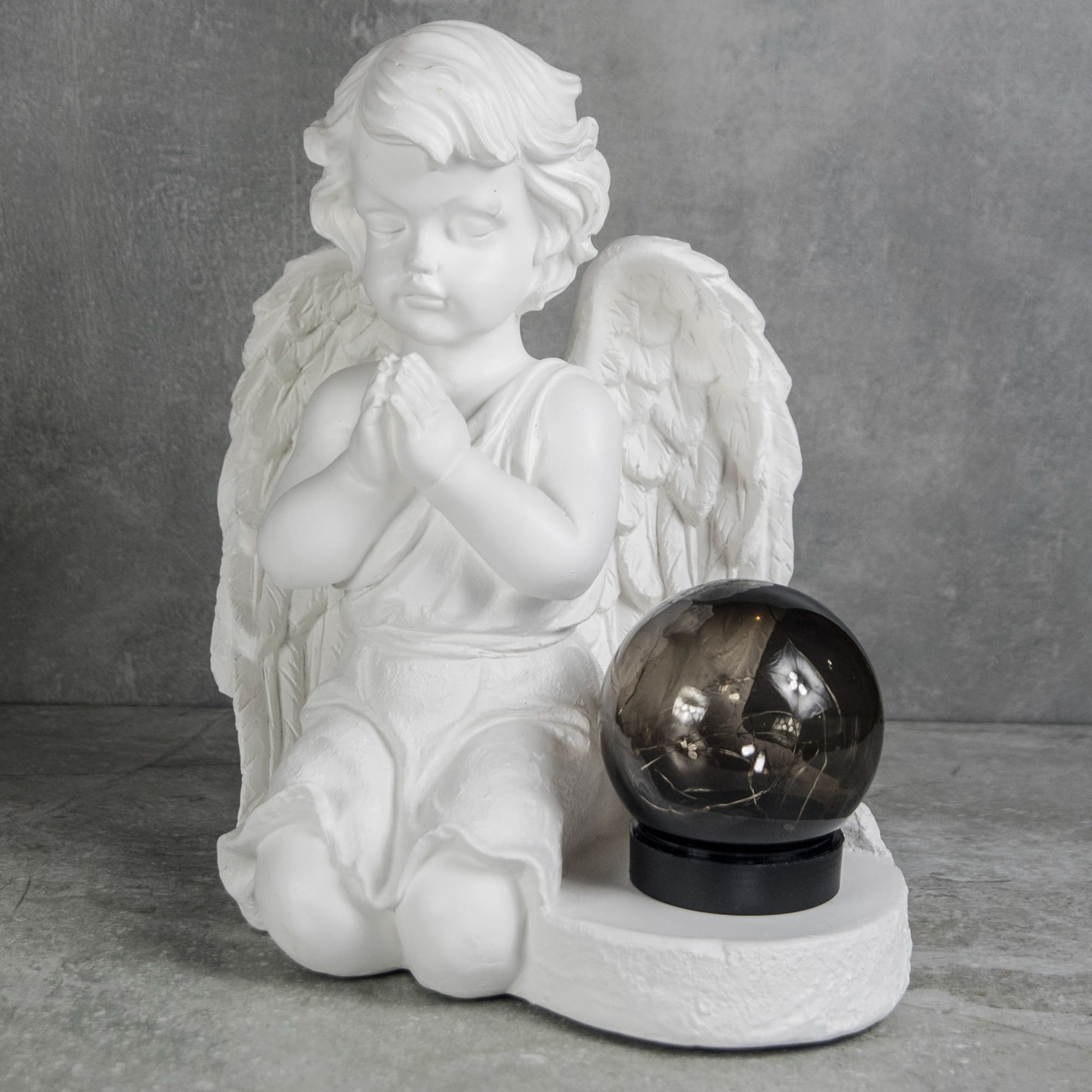 ➡️ Ozdobna gipsowa figurka ogrodowa, nagrobna z lampą LED w kształcie aniołka - BIAŁA