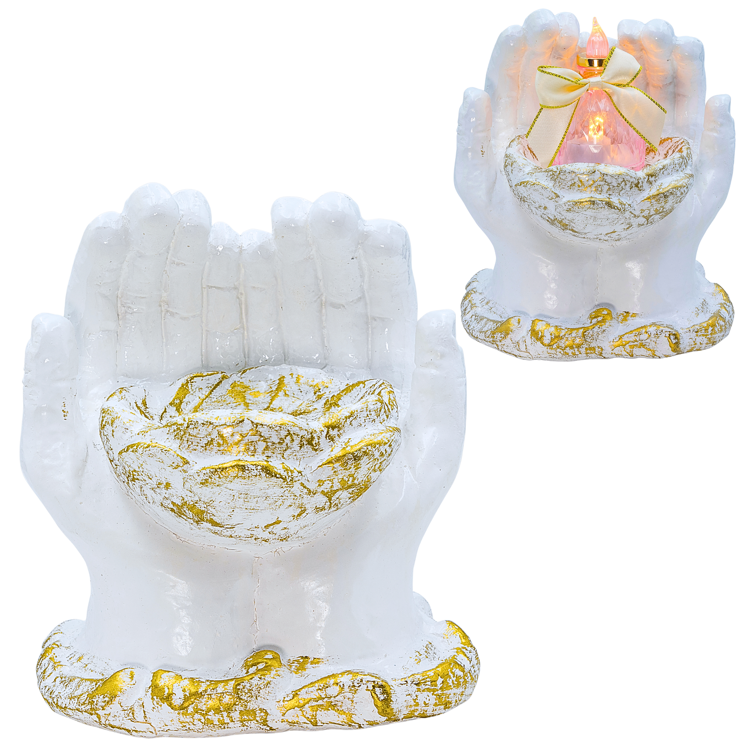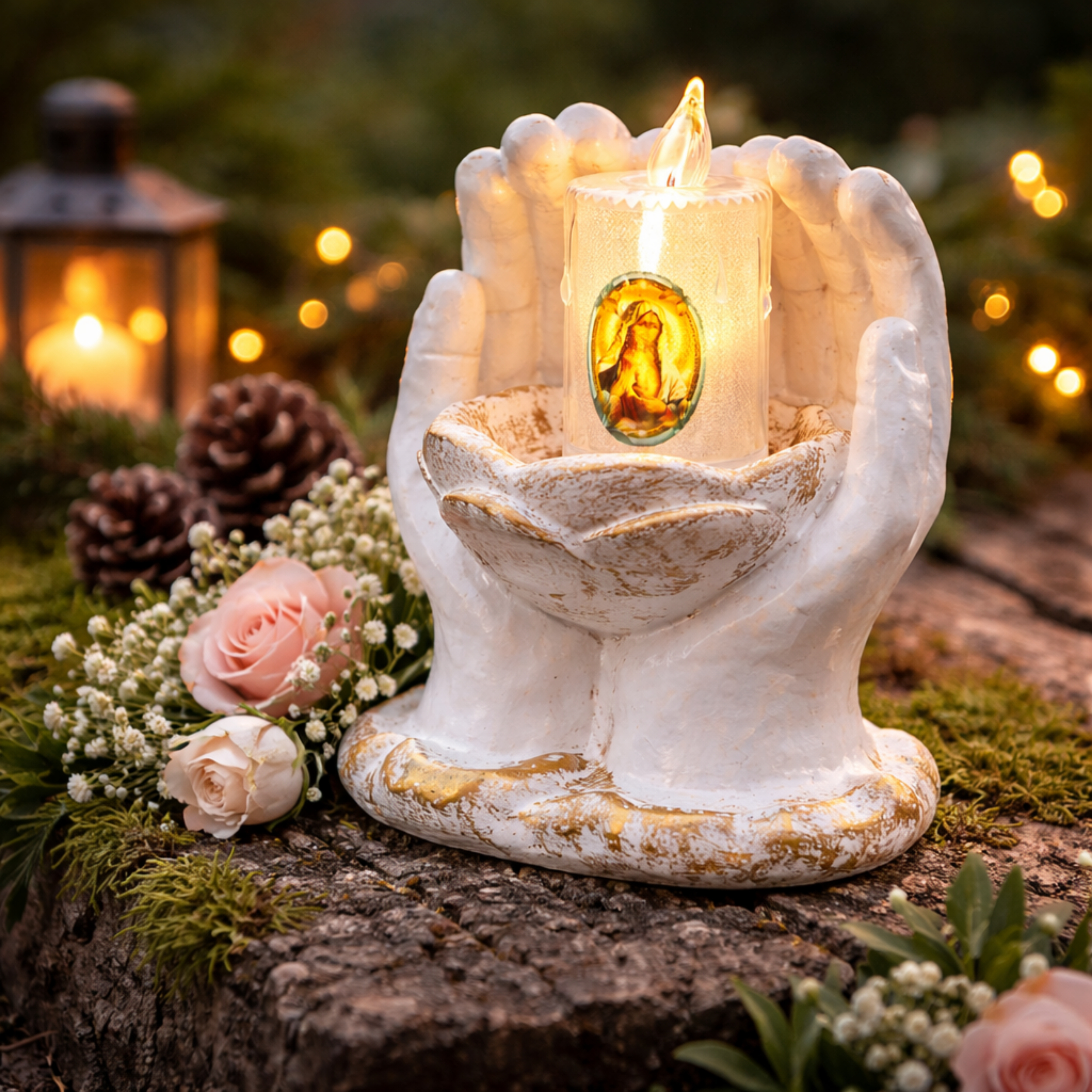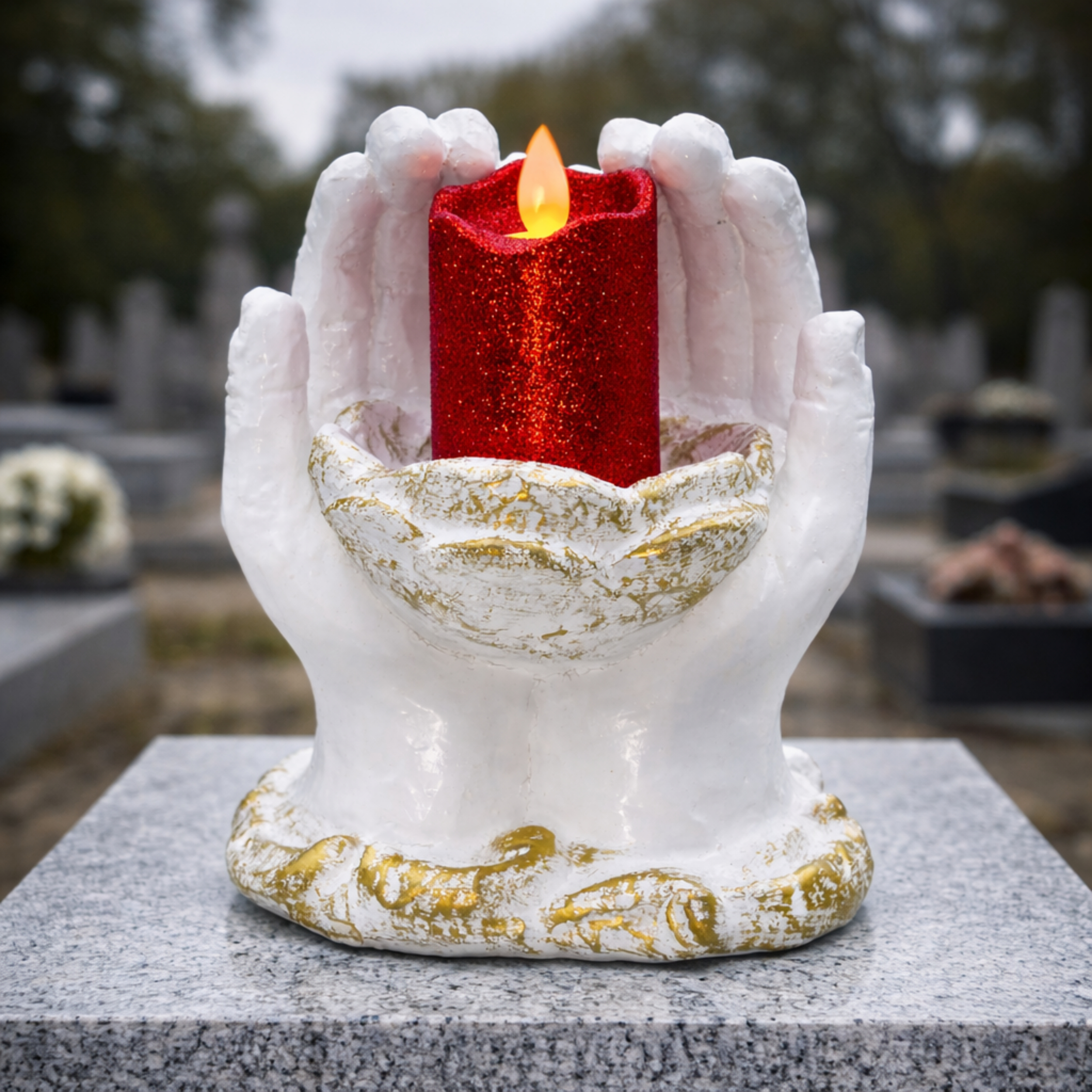 FIGURKA DŁONIE znicz stroik NA GRÓB dekoracja nagrobna grób ŚWIECZNIK