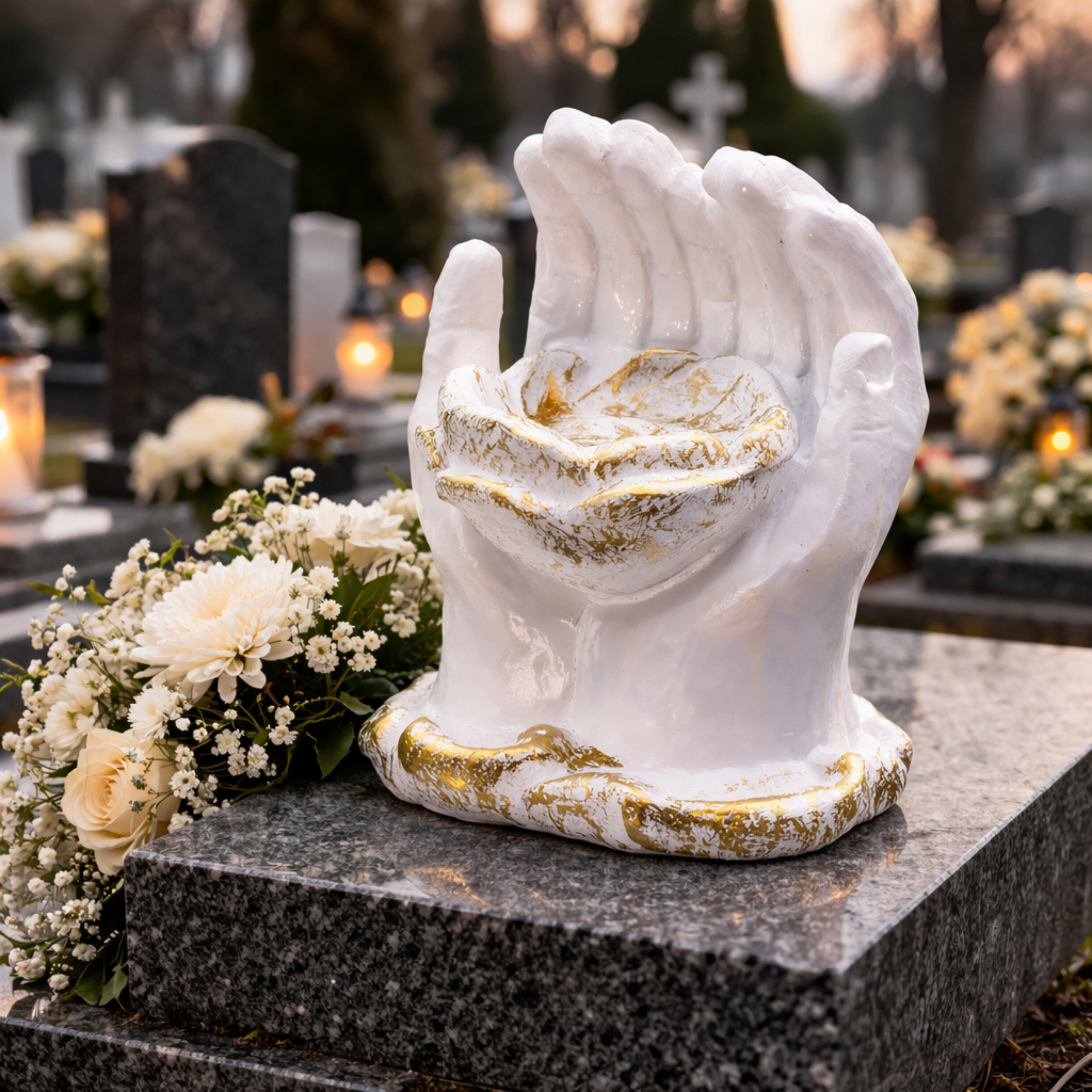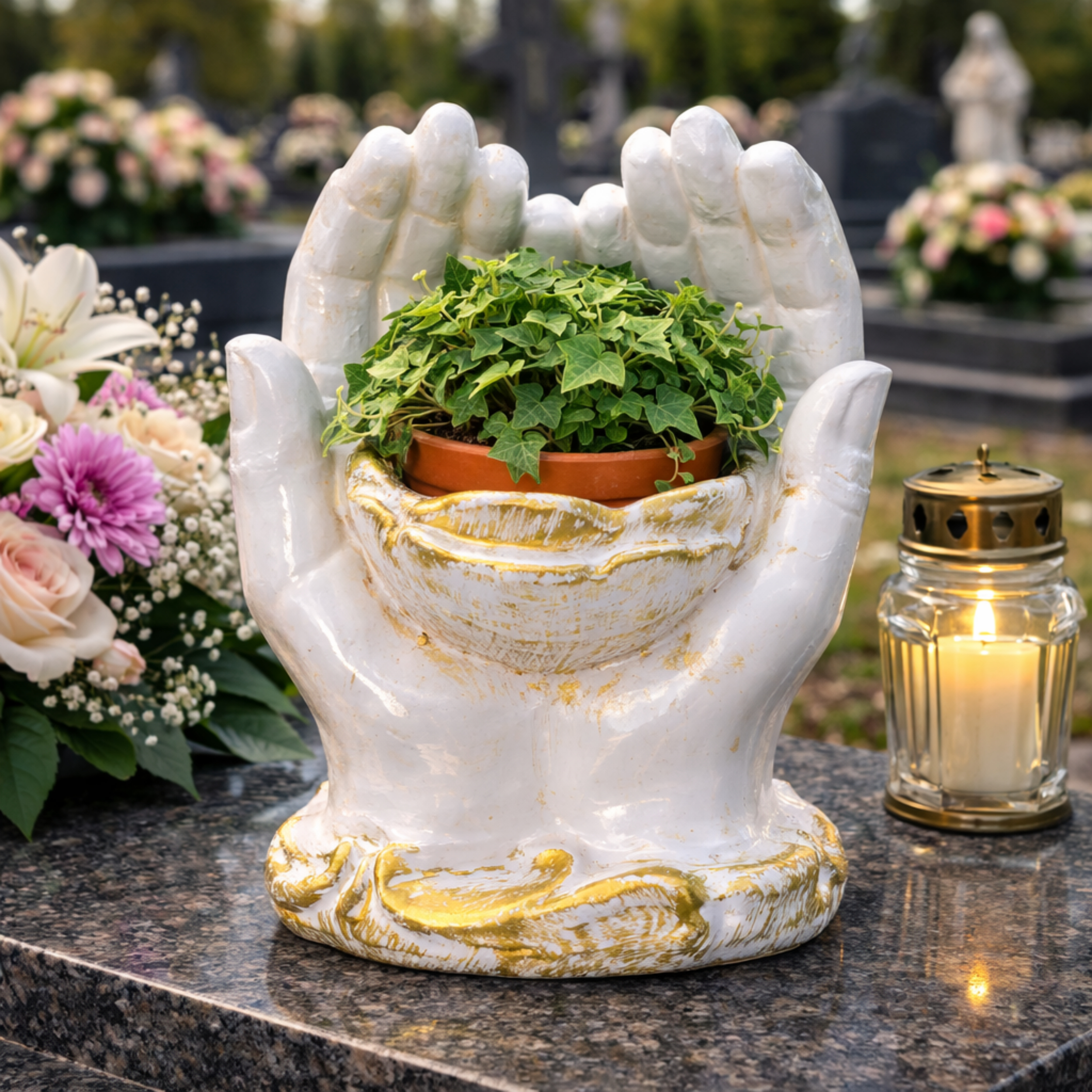 Stylowa figurka w formie dłoni to wyjątkowa dekoracja nagrobna, która pięknie podkreśla pamięć o bliskich.