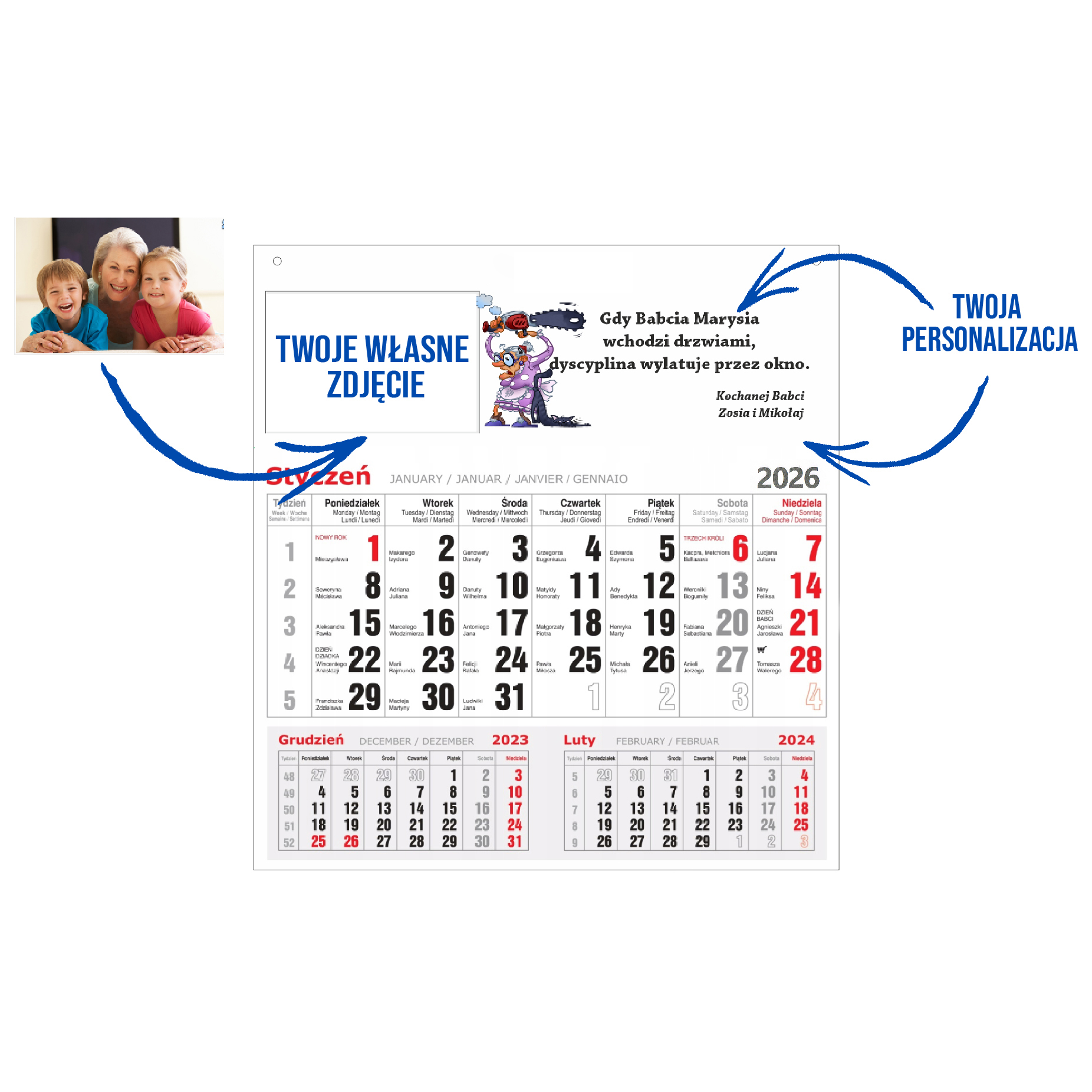 KALENDARZ 2026 NA DZIEŃ BABCI Z NADRUKOWANYMI IMIONAMI I TWOIM ZDJĘCIEM