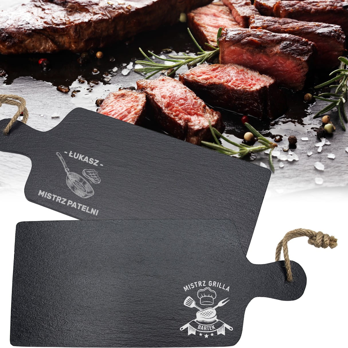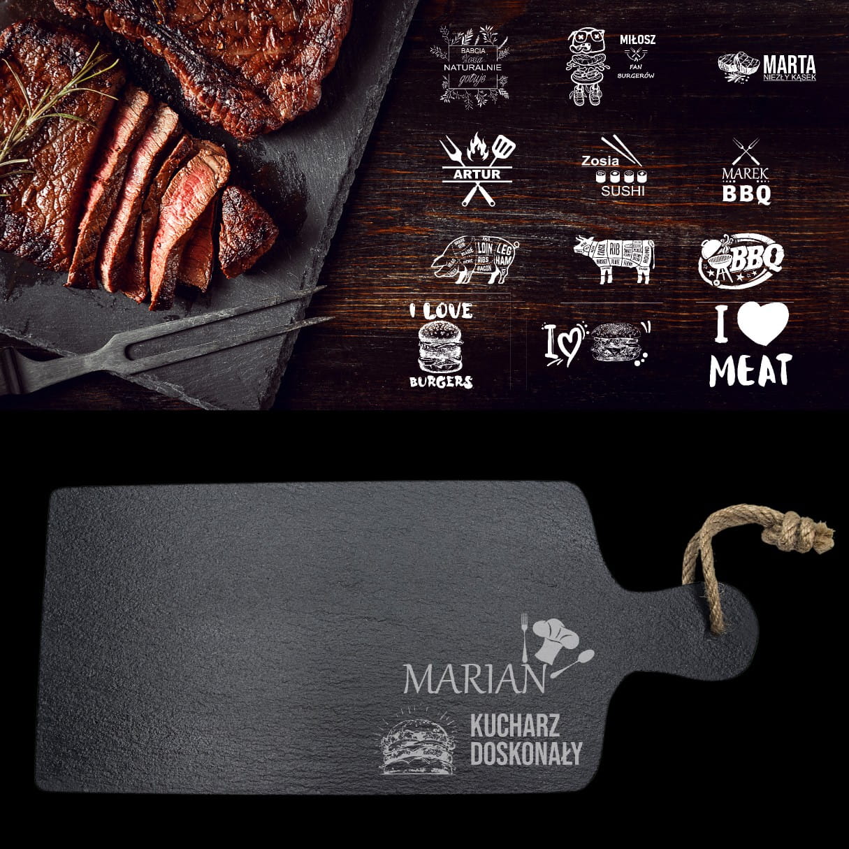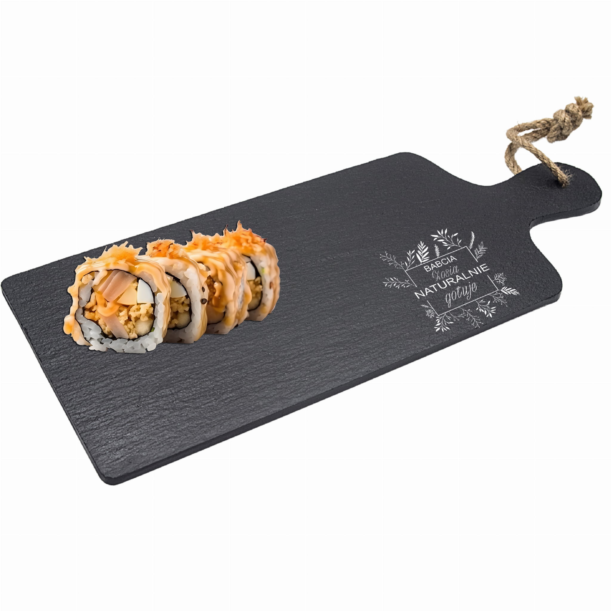 KAMIENNA DESKA Z RĄCZKĄ GRAWEROWANA DO SUSHI STEKÓW INDYWIDUALNY GRAWER