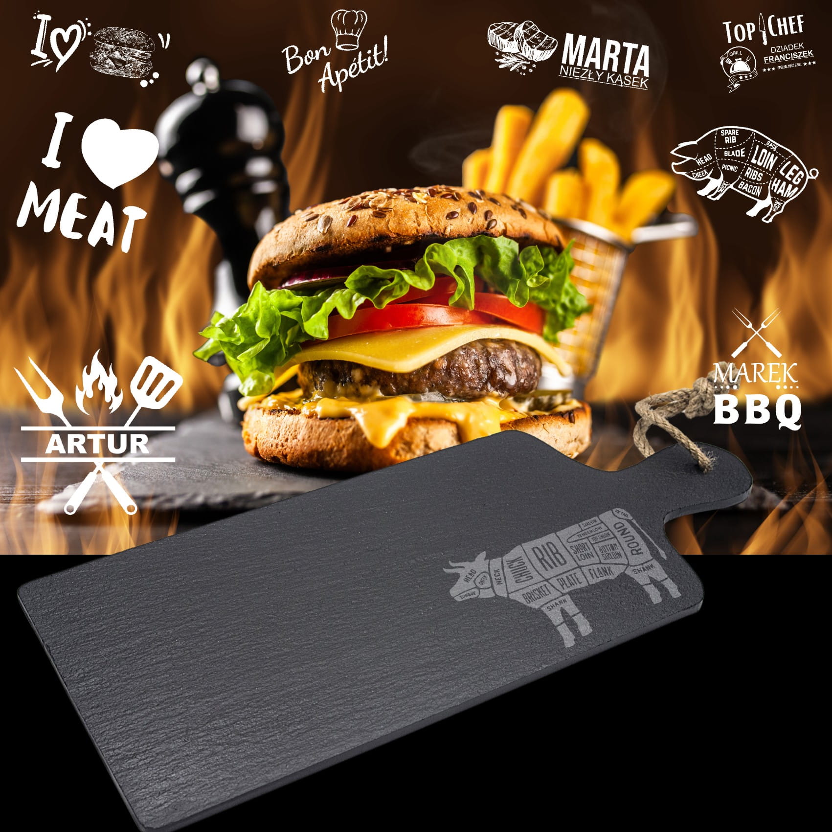 ✅ Ten oryginalny upominek to zestaw, zachwyci miłośnika burgerów, steków czy sushi.