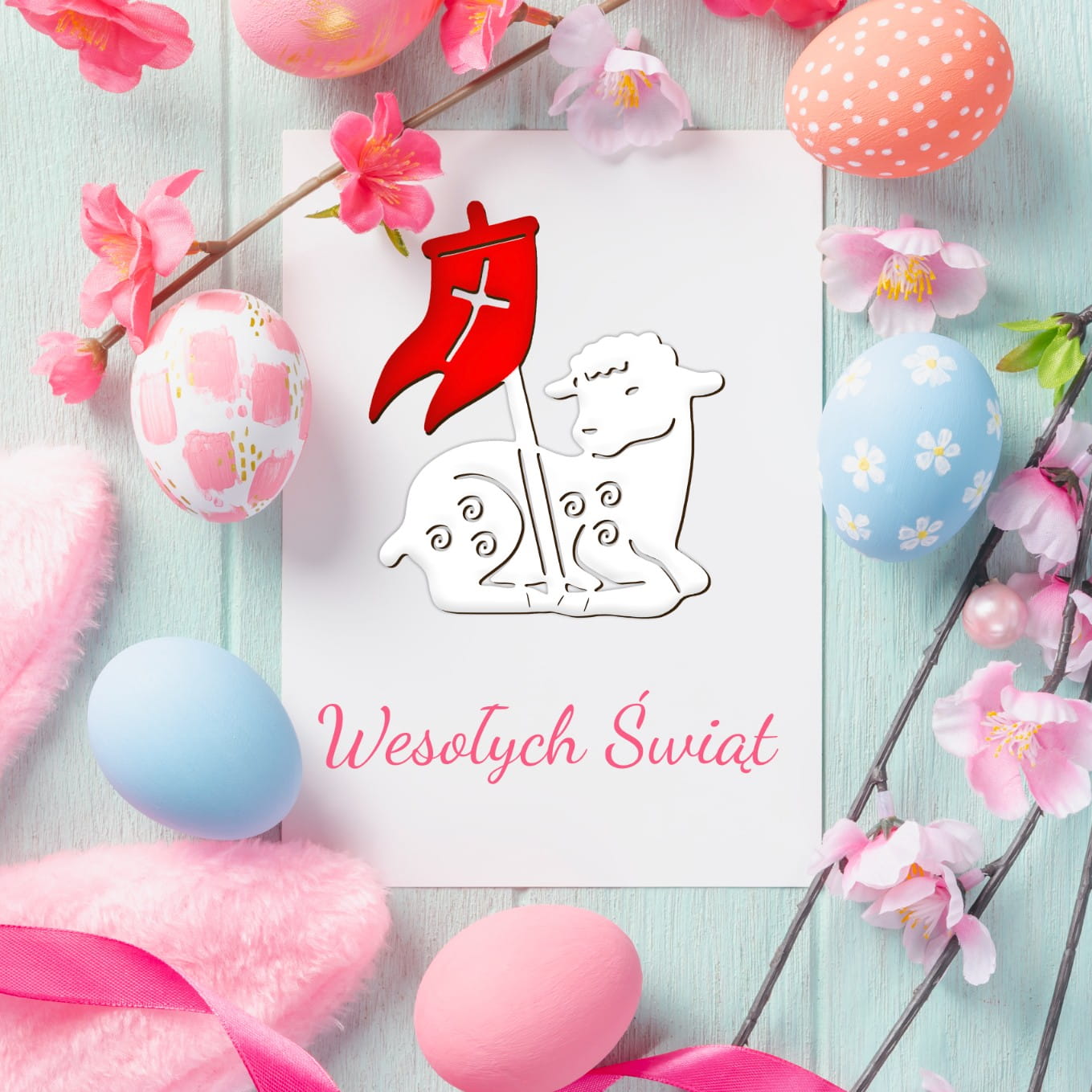 KOLOROWY DREWNIANY BARANEK WIELKANOCNY ŚWIĘTA SCRAPKI