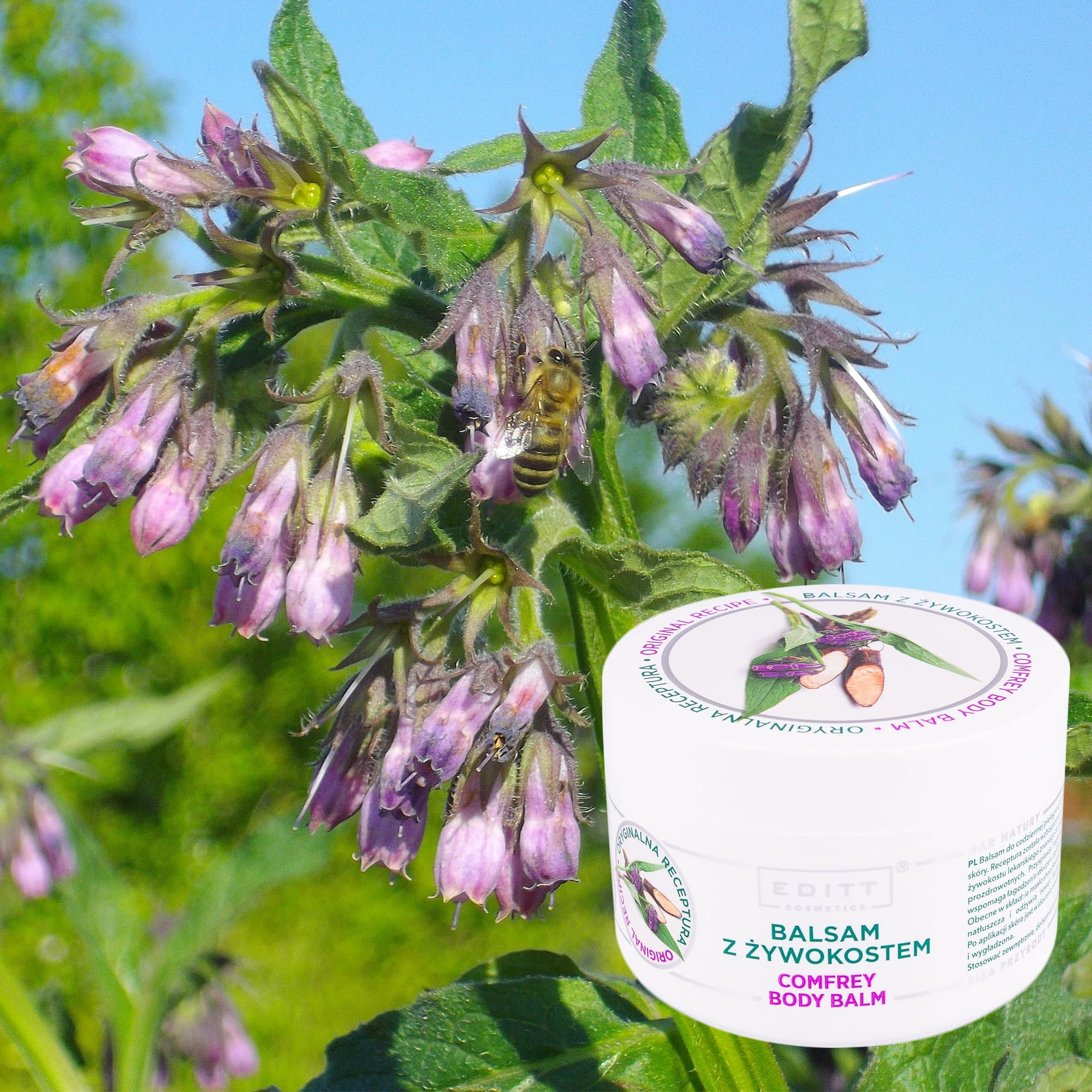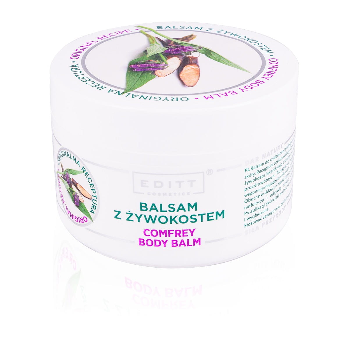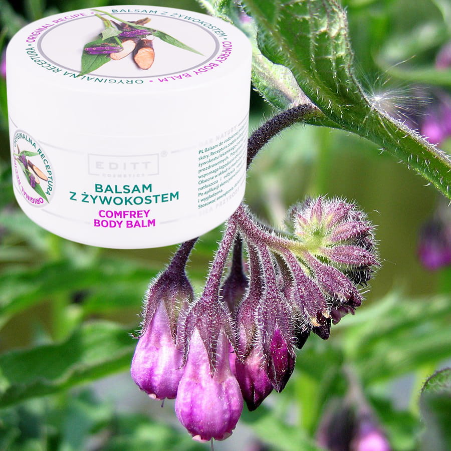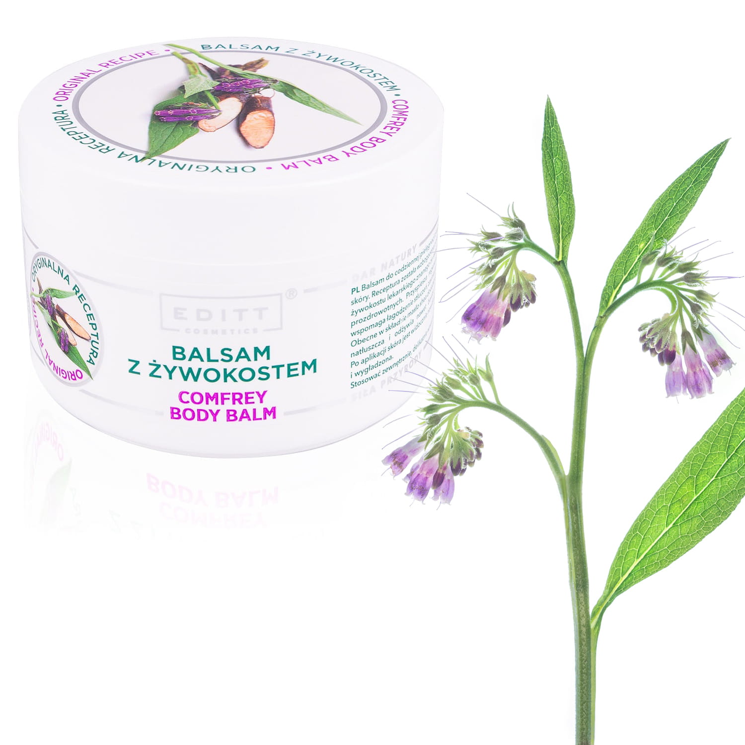 Balsam do codziennej pielęgnacji zmęczonej i suchej skóry 230g. Receptura została wzbogacona o ekstrakt z korzeni żywokostu lekarskiego znanego ze swoich właściwości prozdrowotnych. Przyspiesza regeneracje naskórka, wspomaga łagodzenie stłuczeń, zasinień oraz obrzęków. Obecnie w składzie masło shea dodatkowo pielęgnuje, natłuszcza nawet bardzo suchą skórę. Po aplikacji skóra jest widocznie nawilżona, odżywiona i wygładzona.