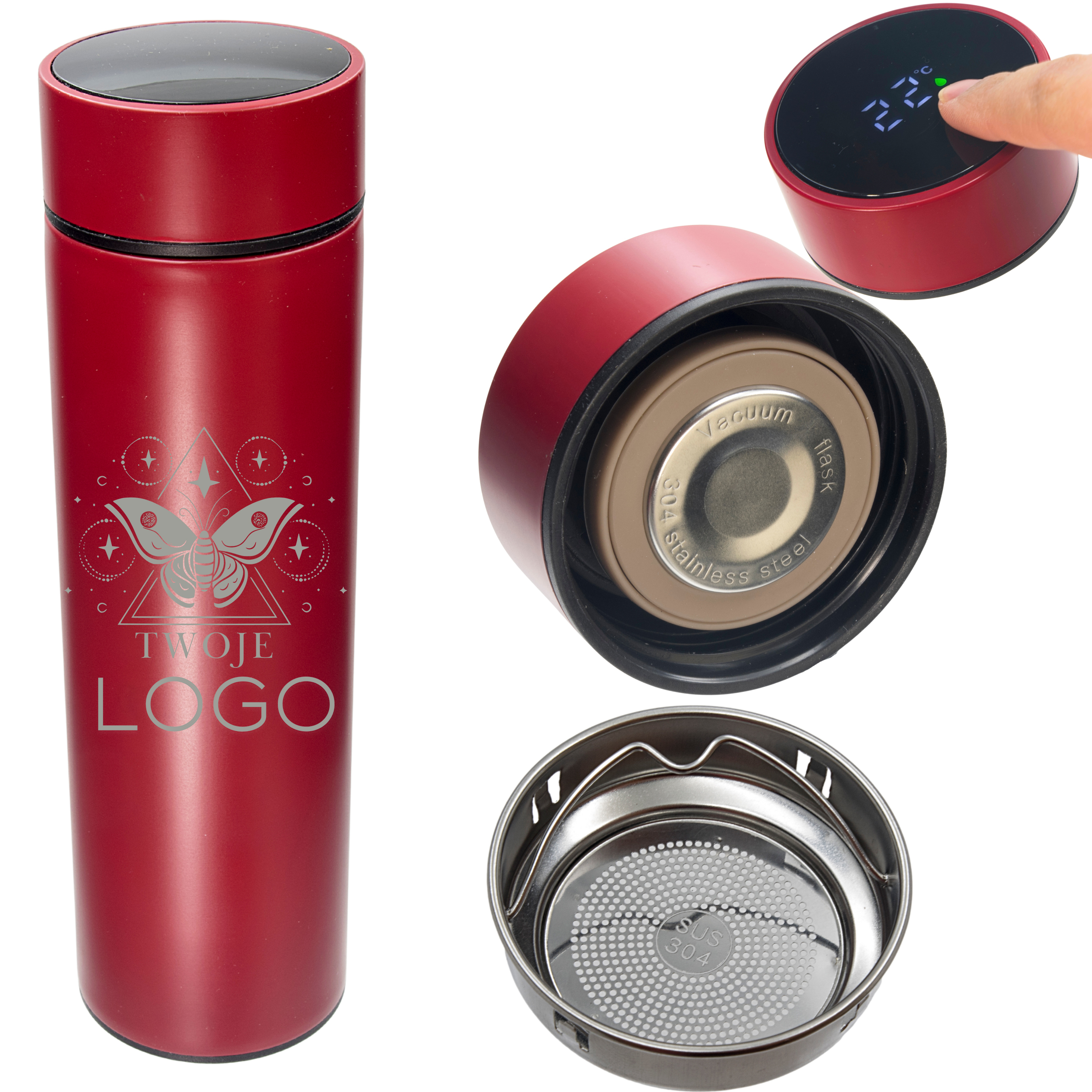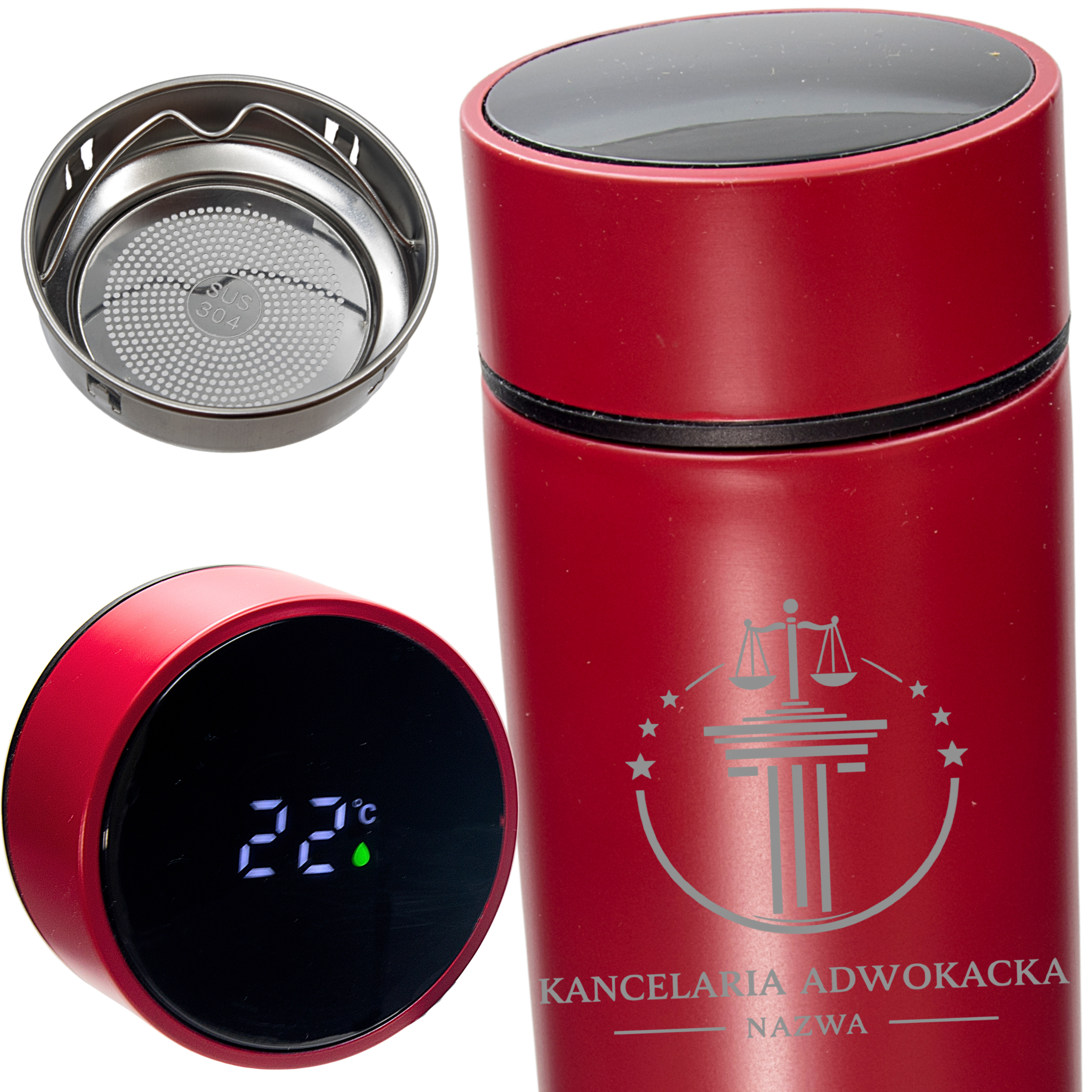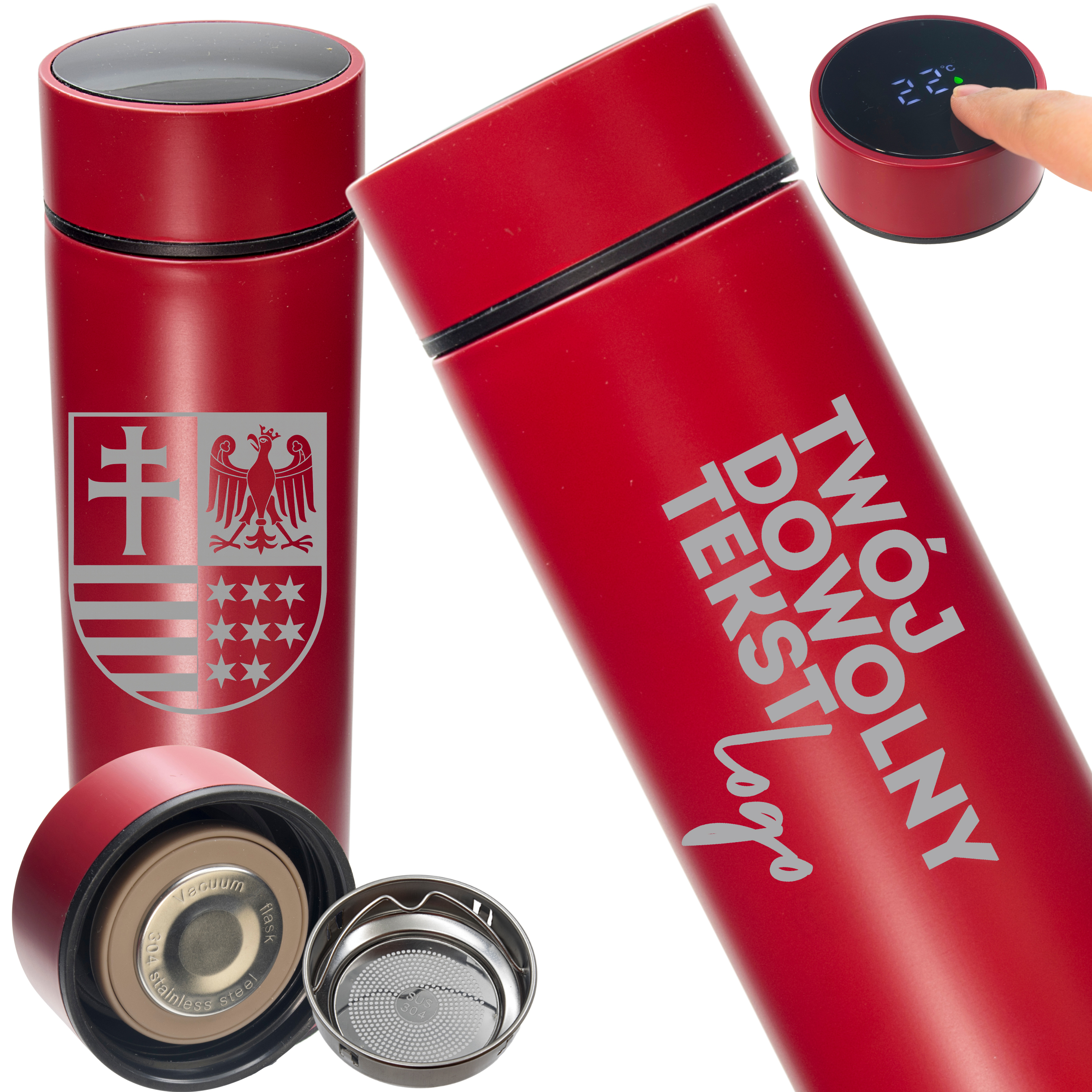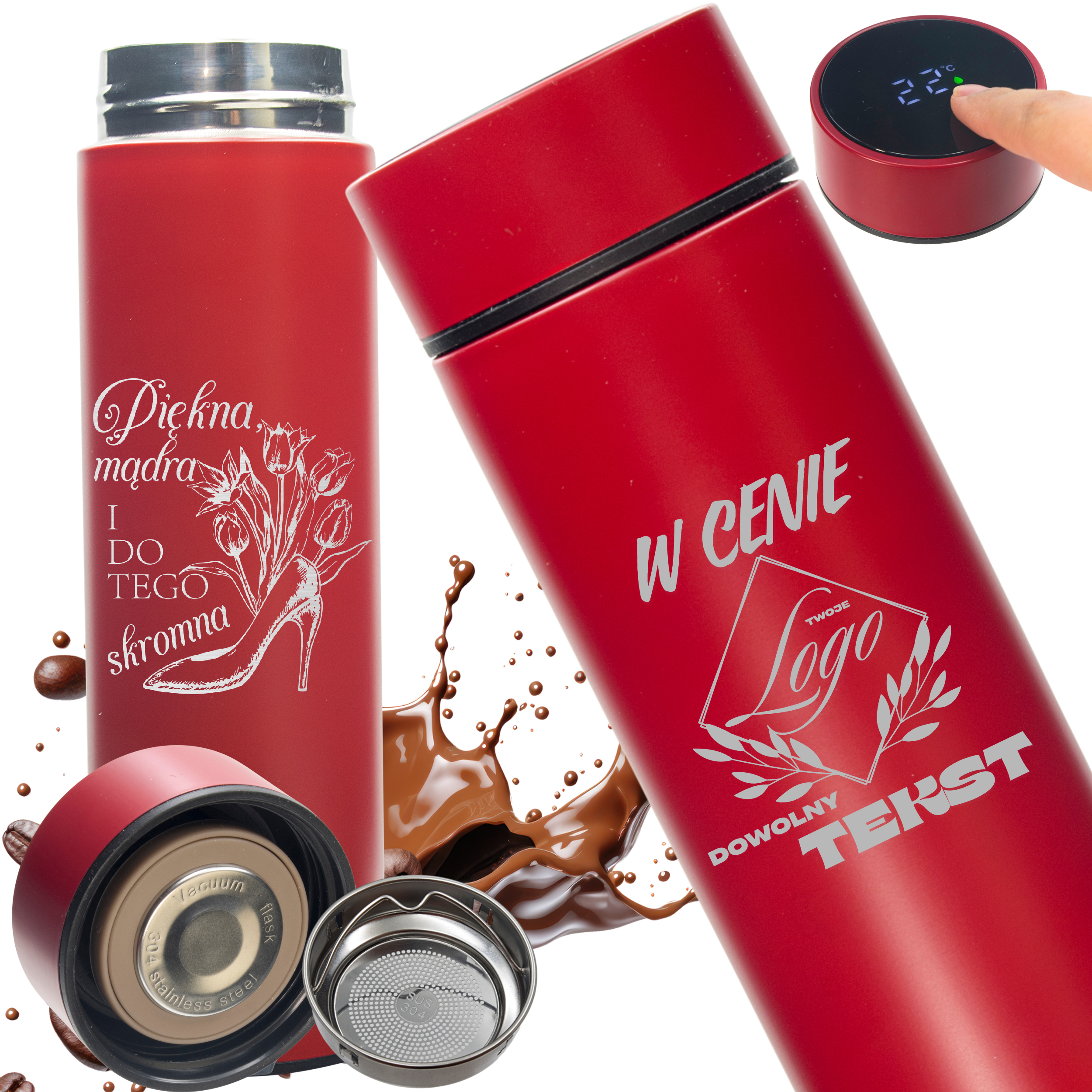 Elegancki, nowoczesny i praktyczny — czerwony termos z personalizowanym grawerem to świetny pomysł na prezent, gadżet firmowy lub pamiątkę na specjalną okazję.