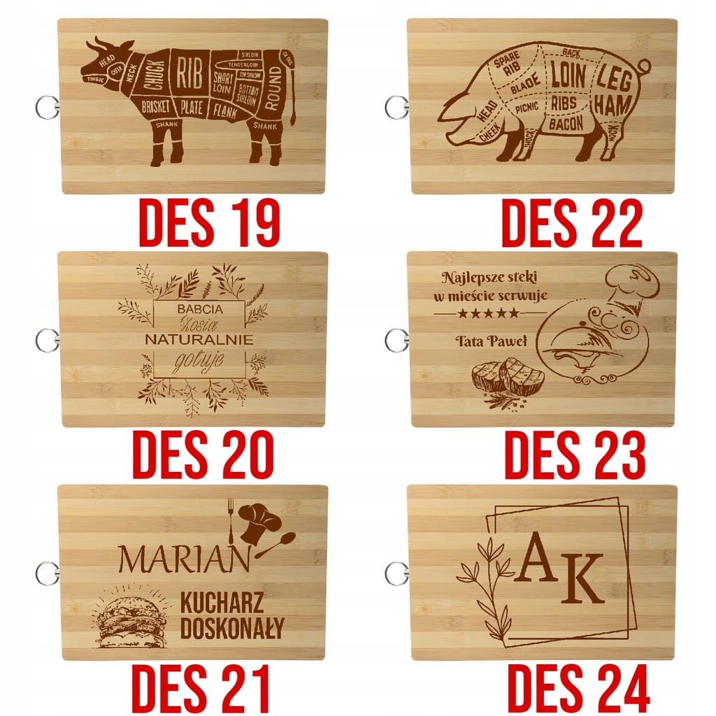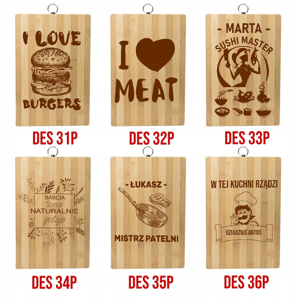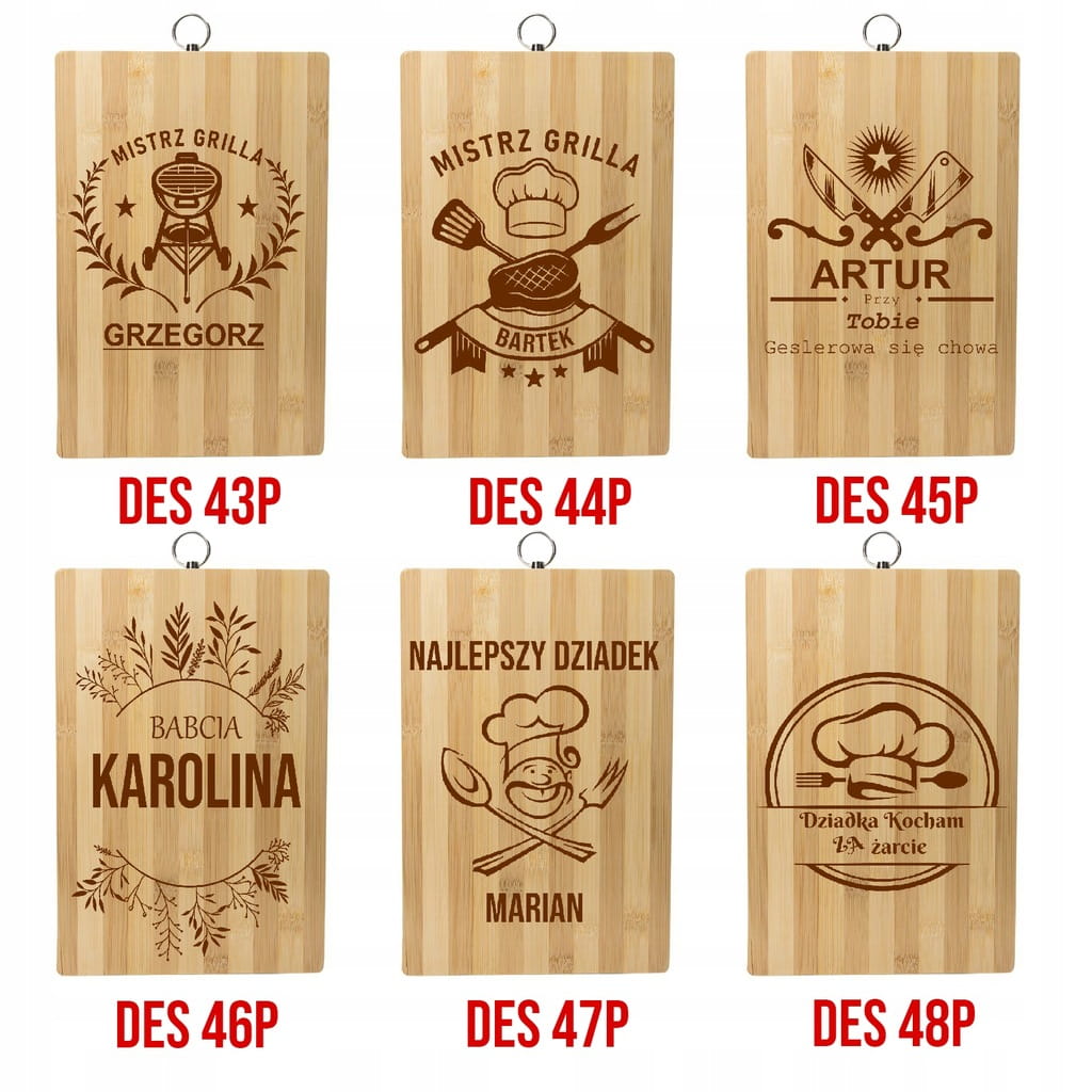 ✅ Treść, którą prześlesz w wiadomości do sprzedającego (imię, data itp.) zostanie podmieniona w wybranym projekcie i wygrawerowana na desce do krojenia