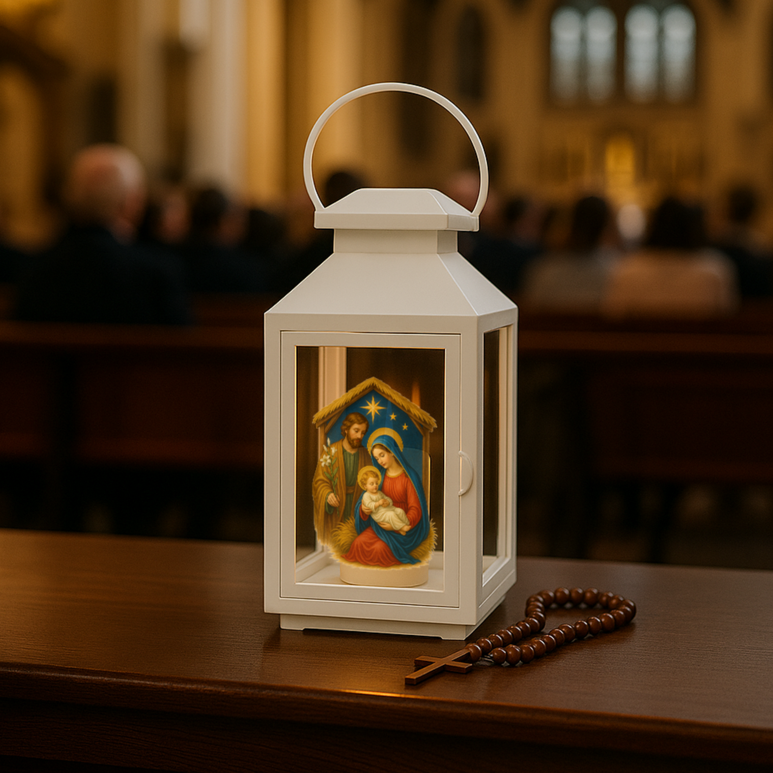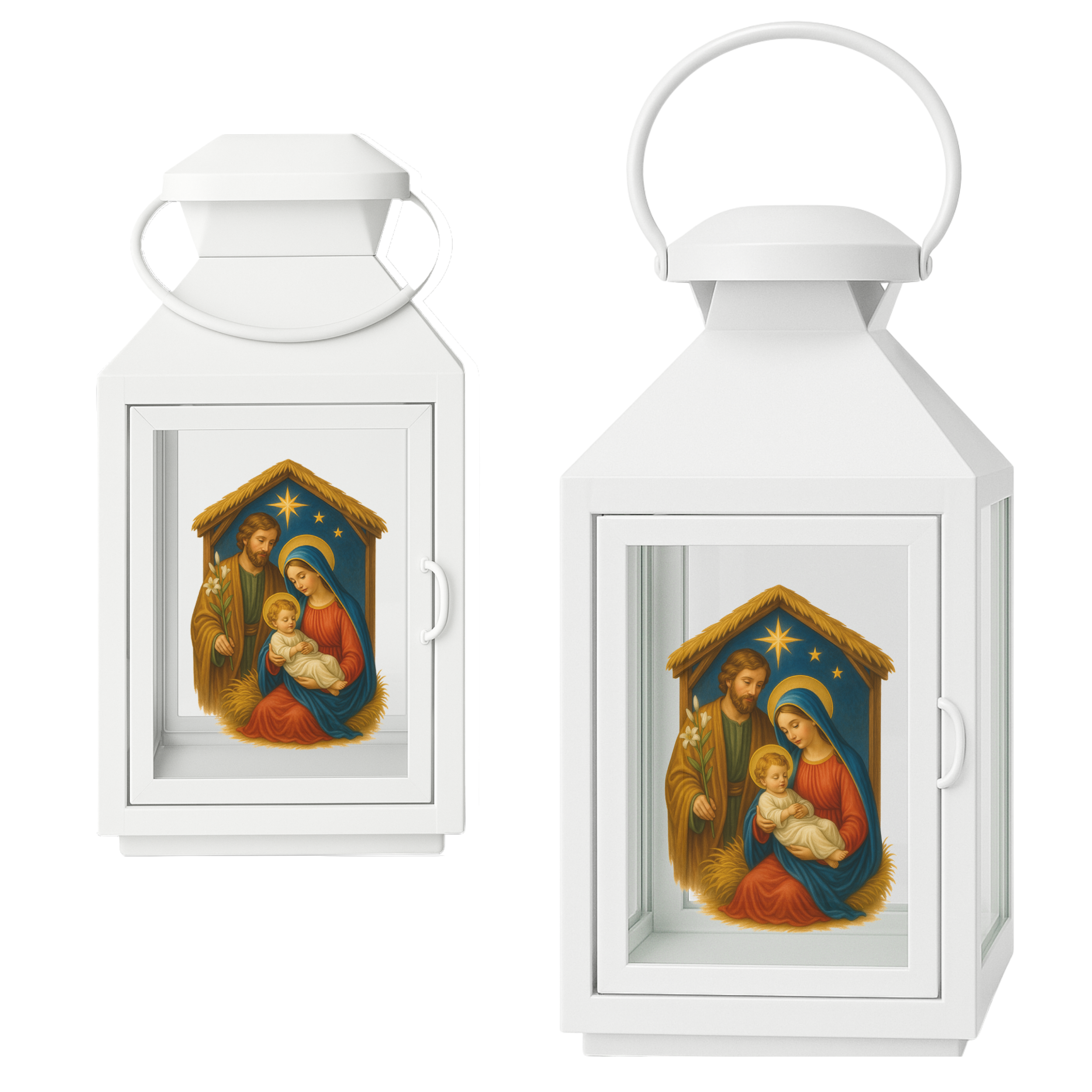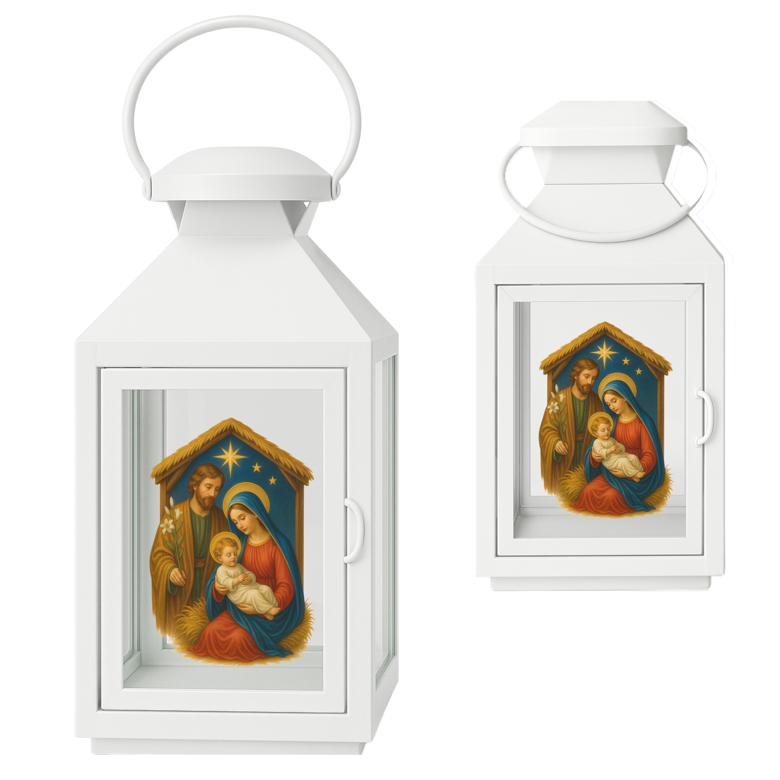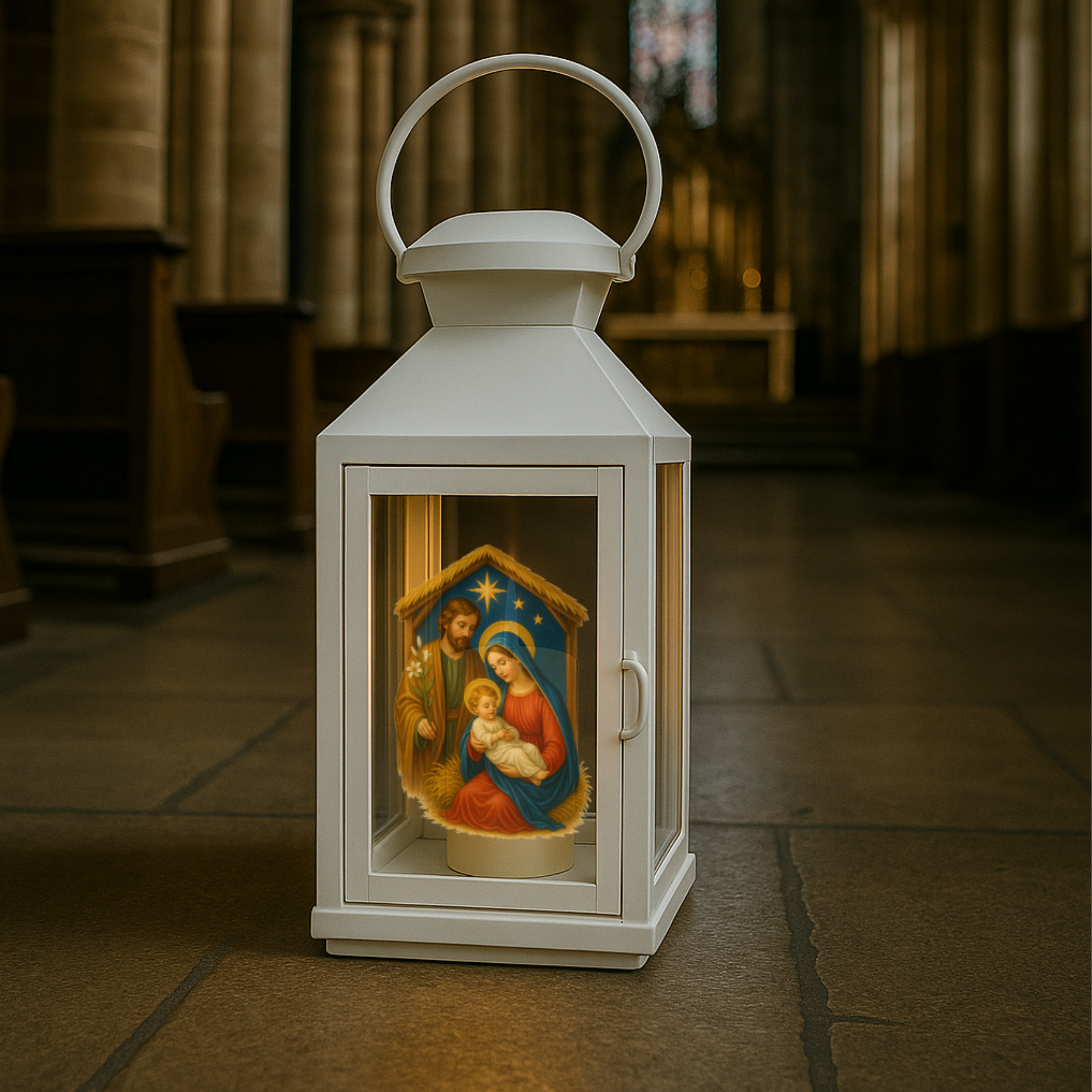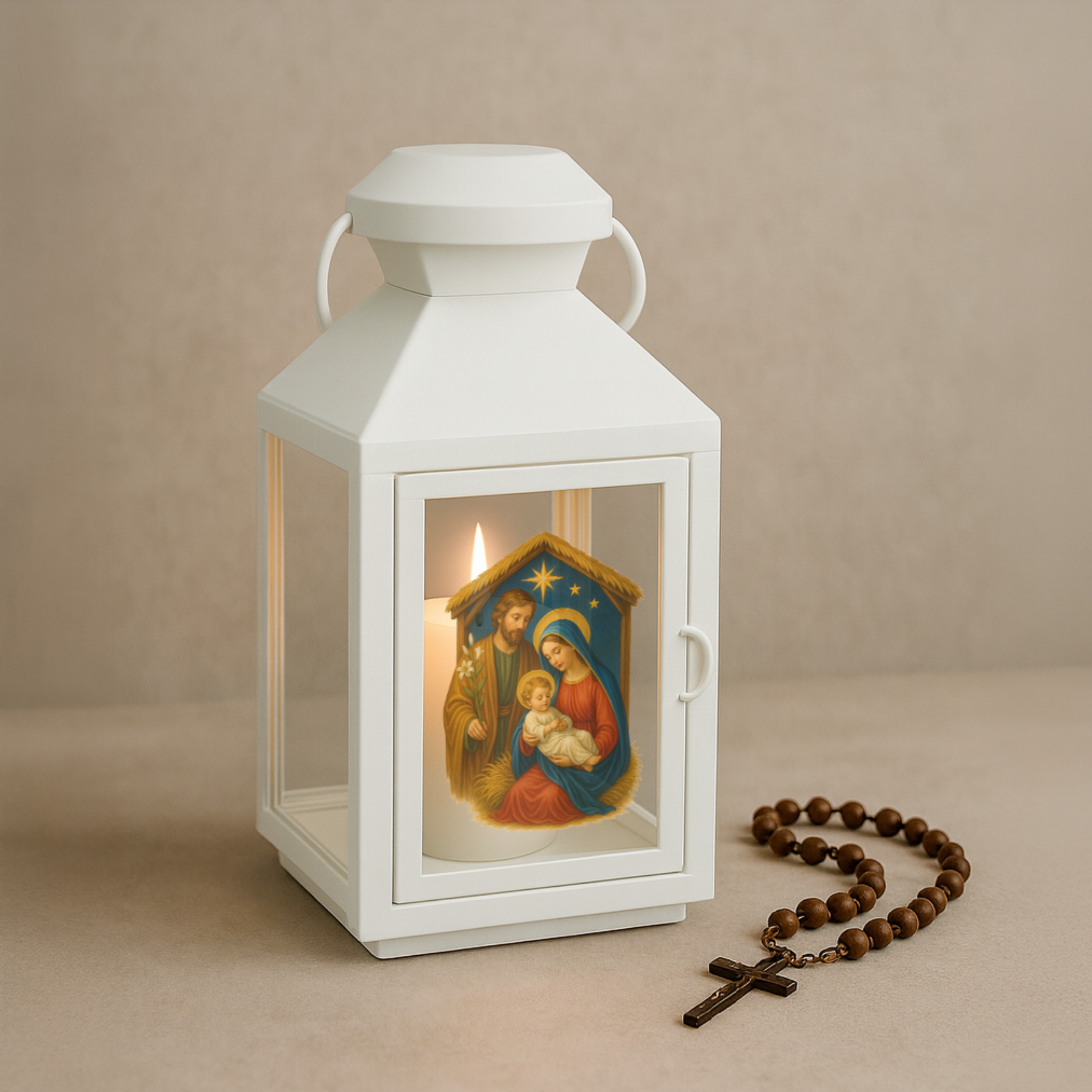 Wprowadź do adwentowych poranków prawdziwe ciepło i duchowy klimat. Ta elegancka biała latarenka z realistycznym wizerunkiem Świętej Rodziny idealnie sprawdza się na Roraty, procesje, nabożeństwa oraz dziecięce światełka adwentowe. Jej delikatne podświetlenie tworzy wyjątkową atmosferę modlitwy i skupienia.