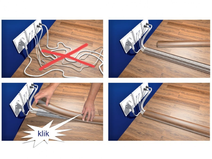 Doskonale sprawdzi się też jako osłona do kabli. Dzięki temu przewody położone na podłodze, narażone na zniszczenie poprzez kopnięcie lub przejechanie po nich np. krzesłem biurowym, nie będą już twoim zmartwieniem.