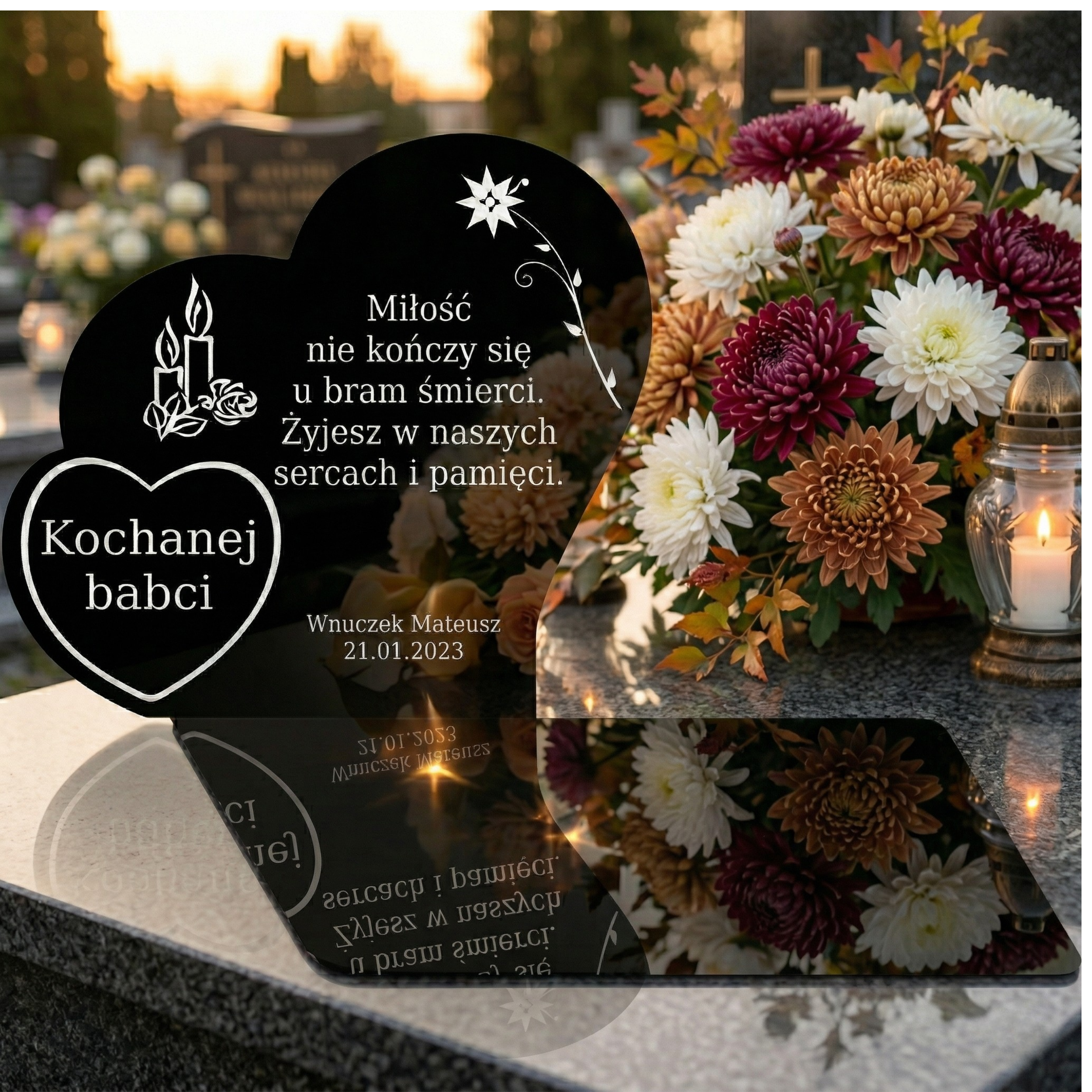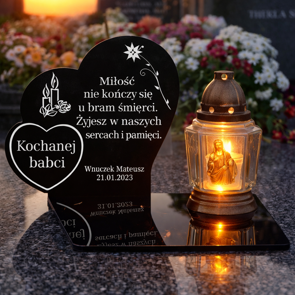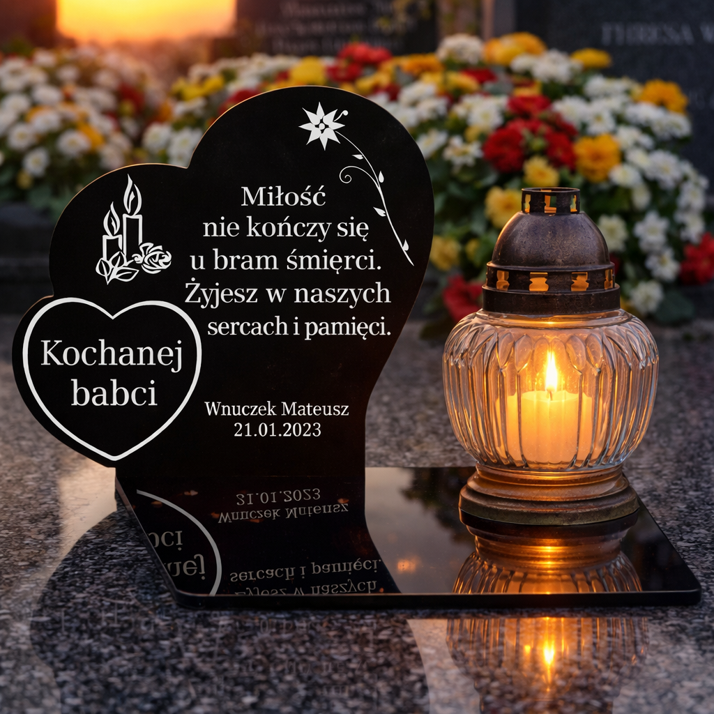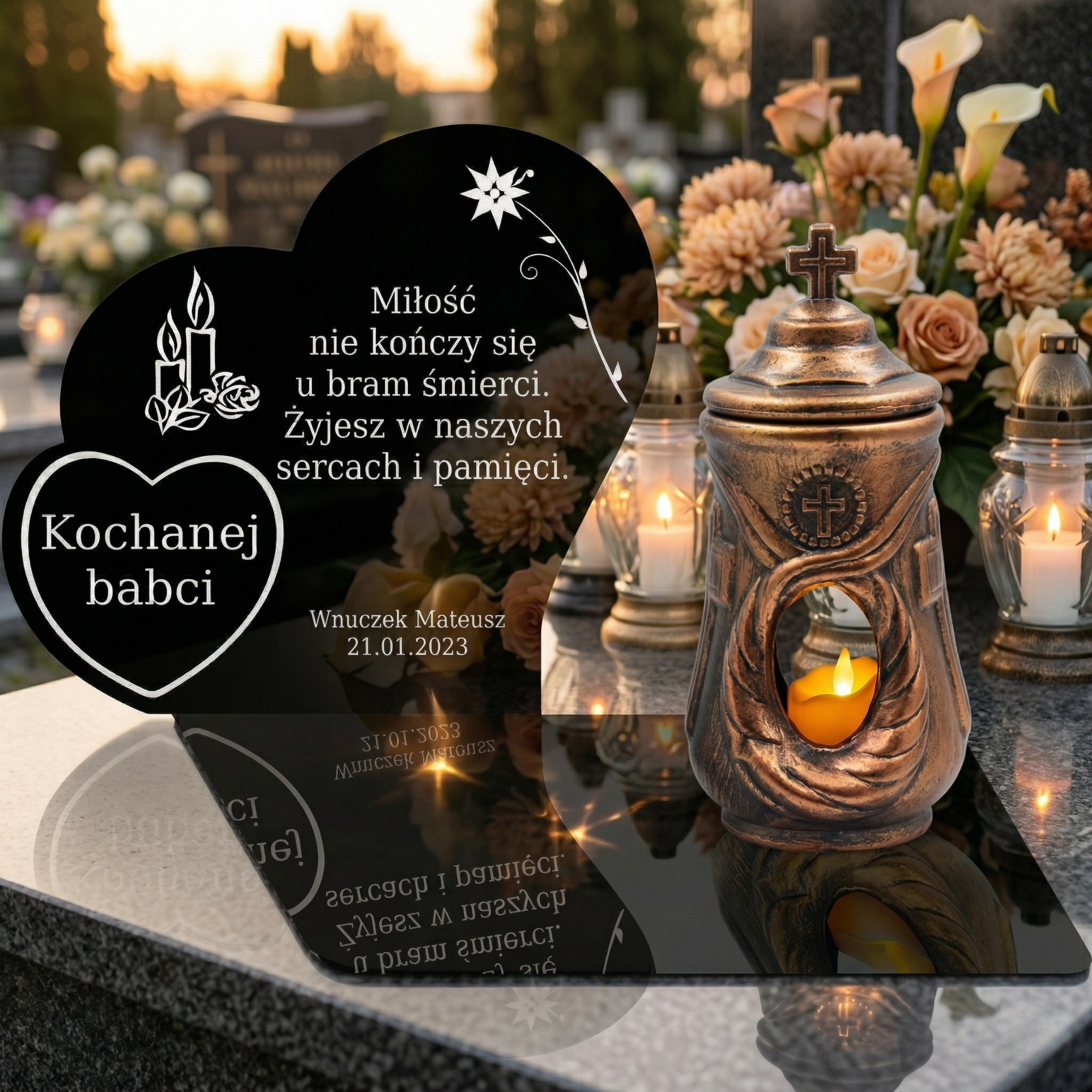NAGROBNA Podstawka POD ZNICZ Personalizowana AKRYL Znicz na GRÓB Cmentarz
