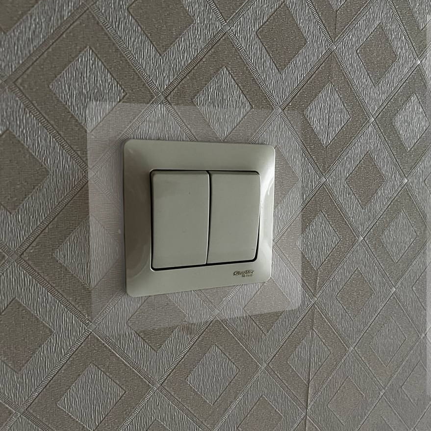 Bezbarwne podkłady pod kontakt lub gniazdko elektryczne zapobiegające brudzeniu ściany.