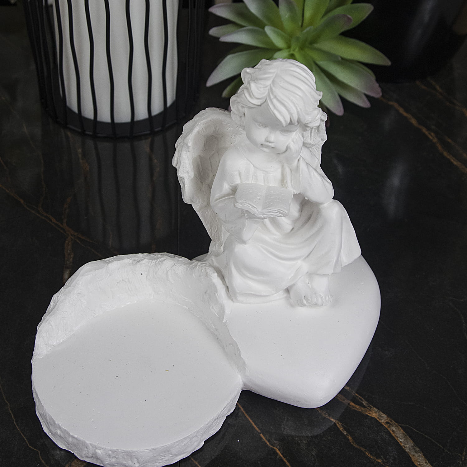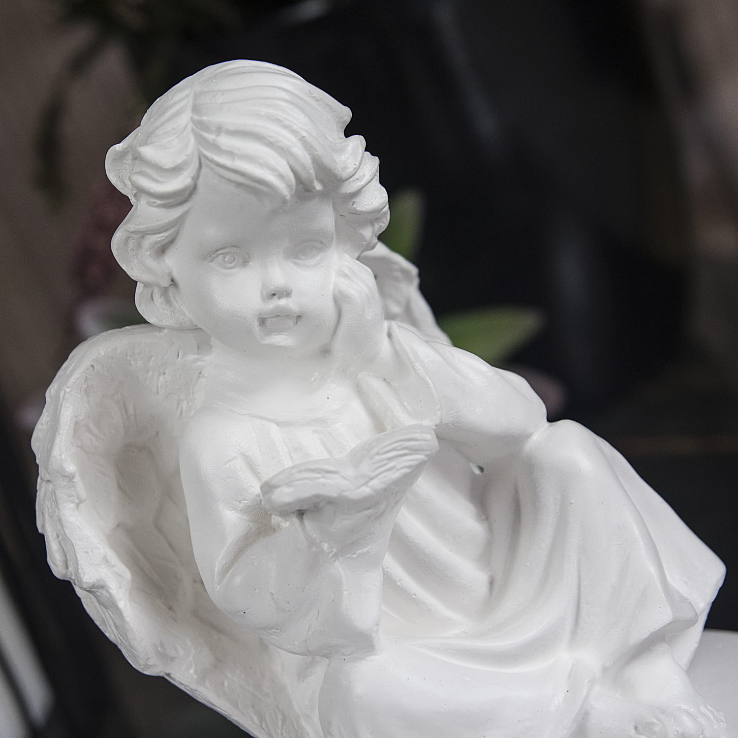 Ozdobna gipsowa figurka ogrodowa, nagrobna w kształcie aniołka