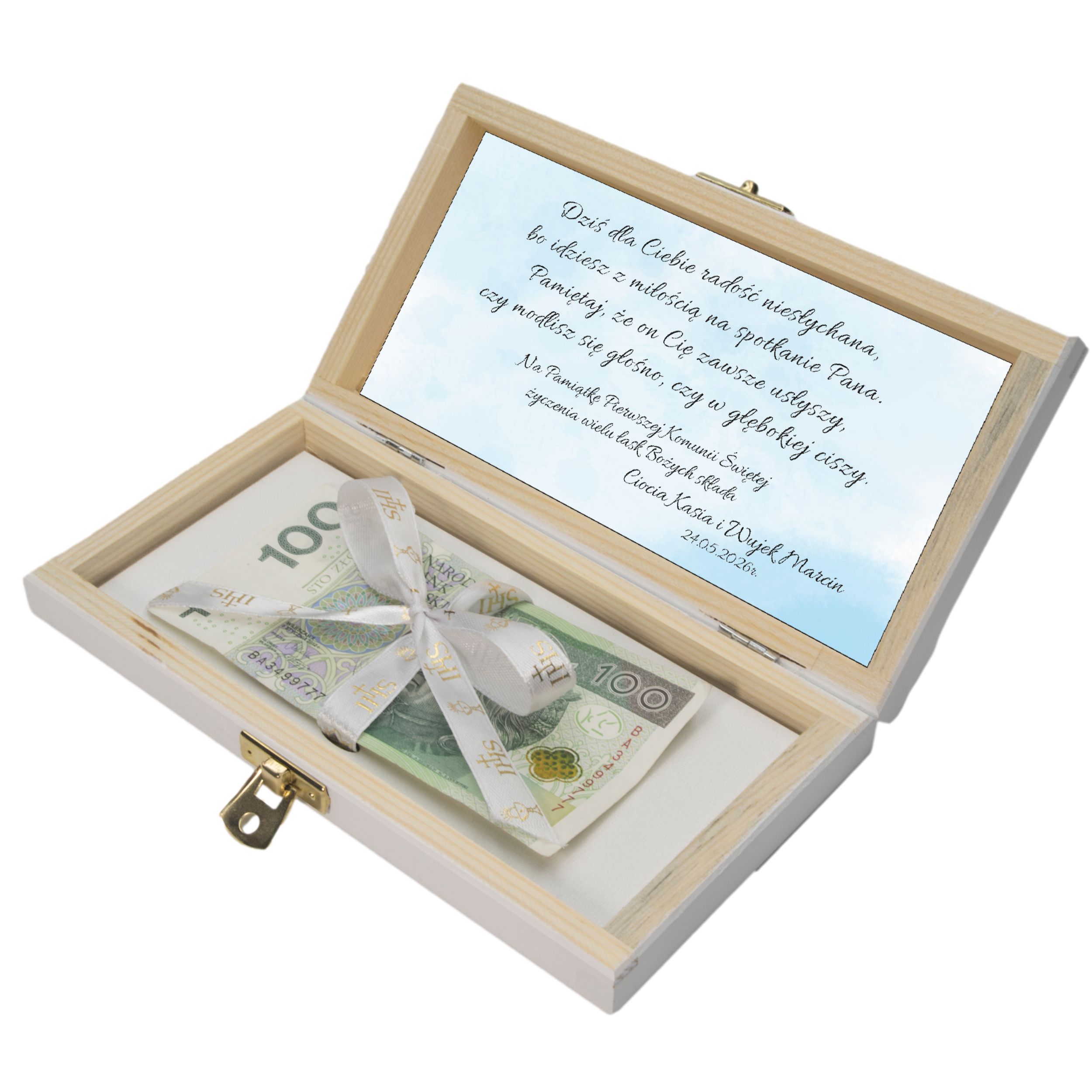 PAMIĄTKA I KOMUNII ŚWIĘTEJ Pudełko na Pieniądze KOMUNIA PREZENT na Komunię