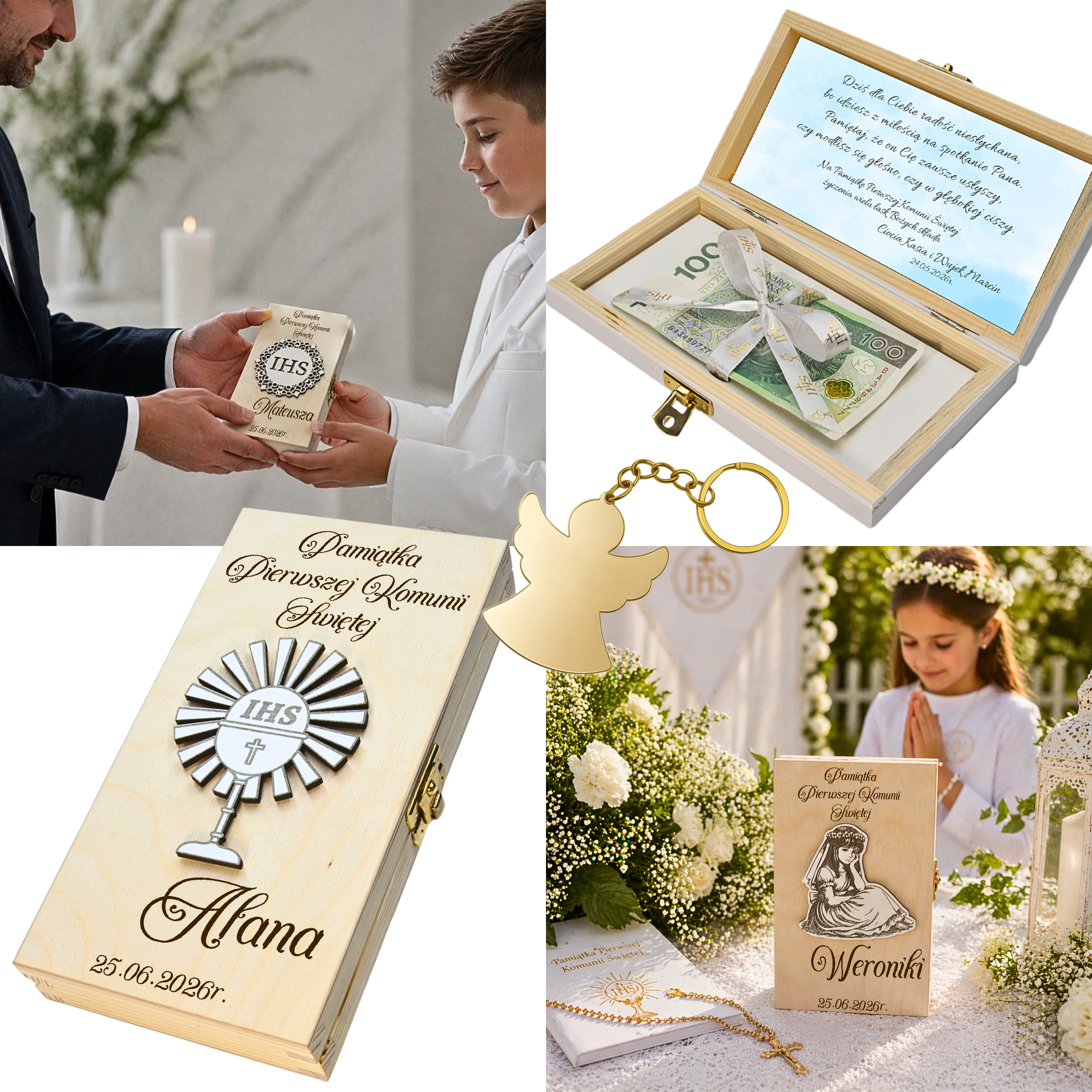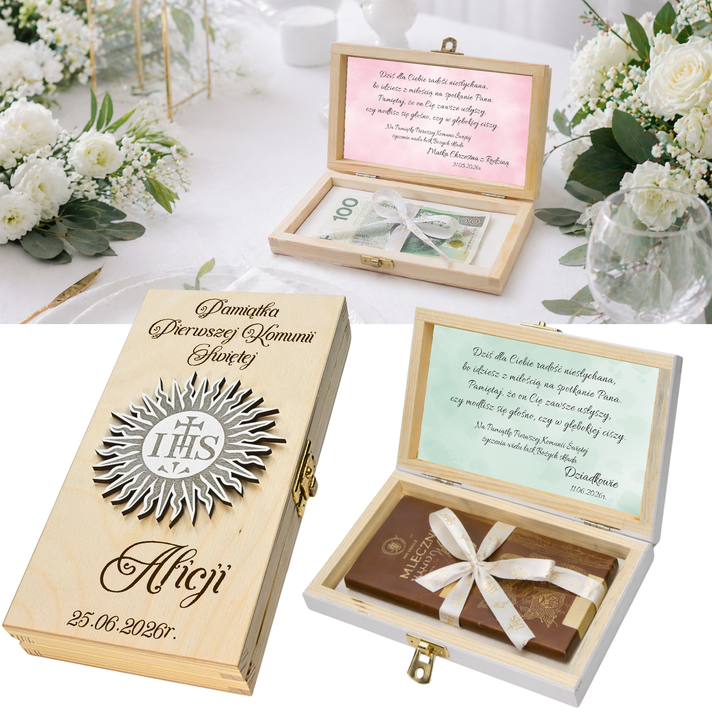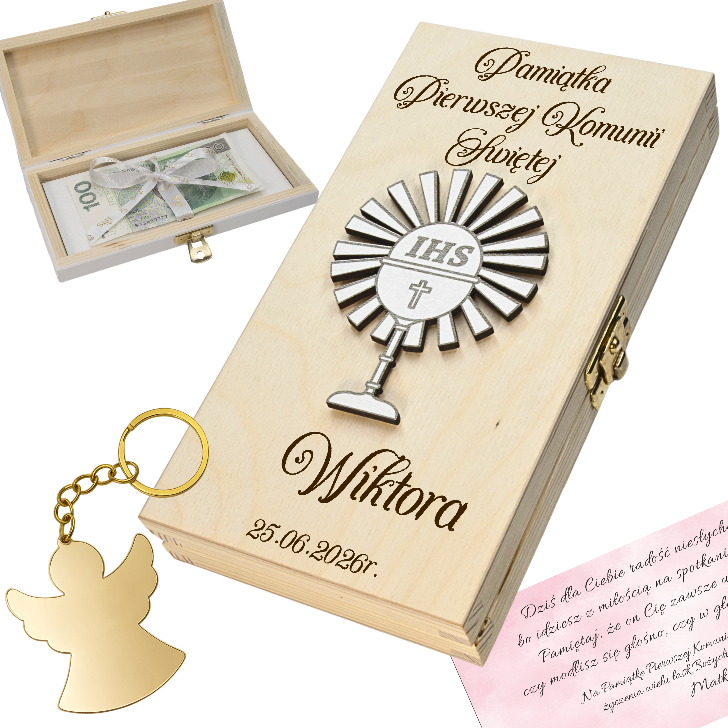 PAMIĄTKA I KOMUNII ŚWIĘTEJ Pudełko na Pieniądze KOMUNIA PREZENT na Komunię