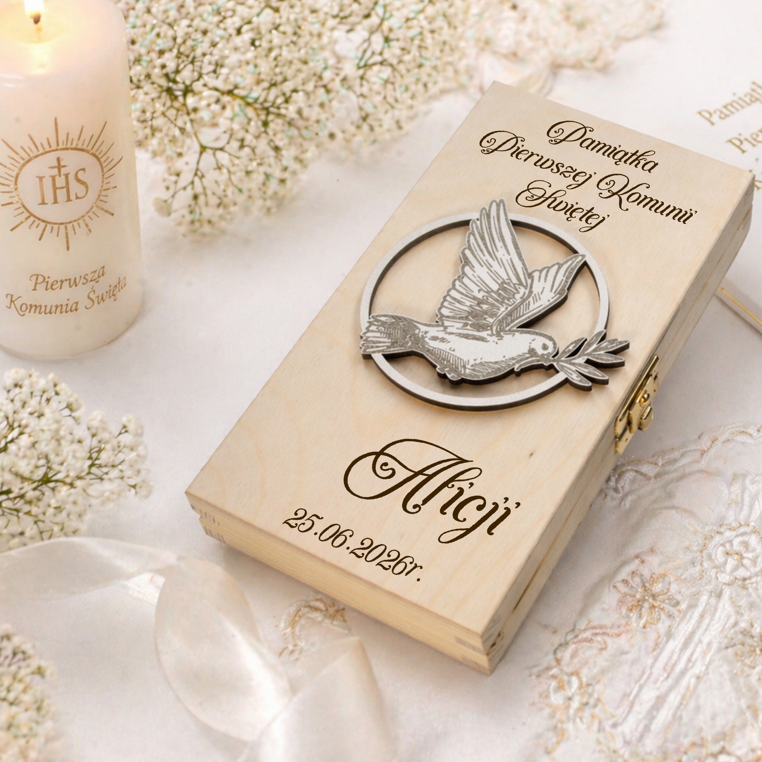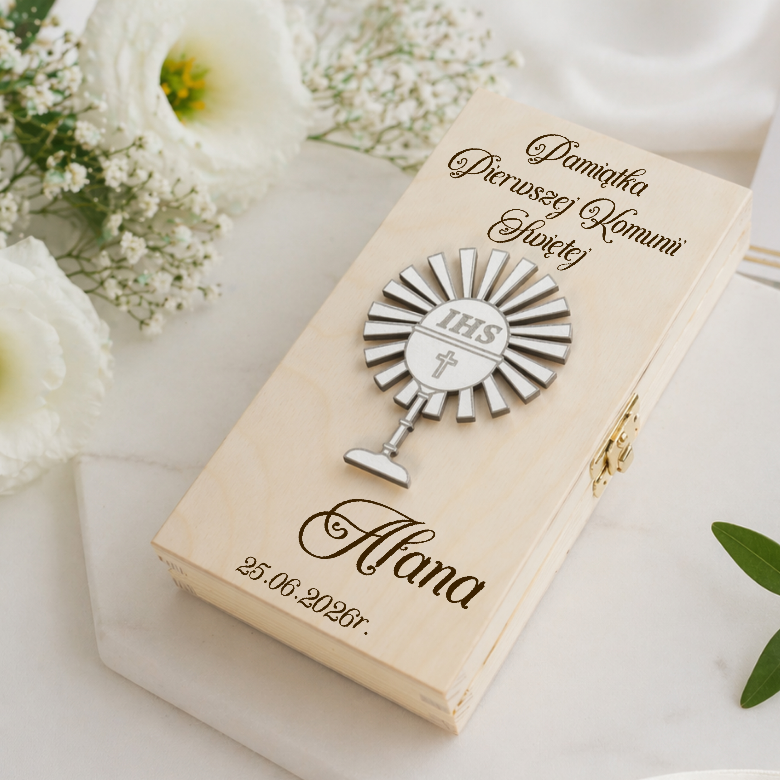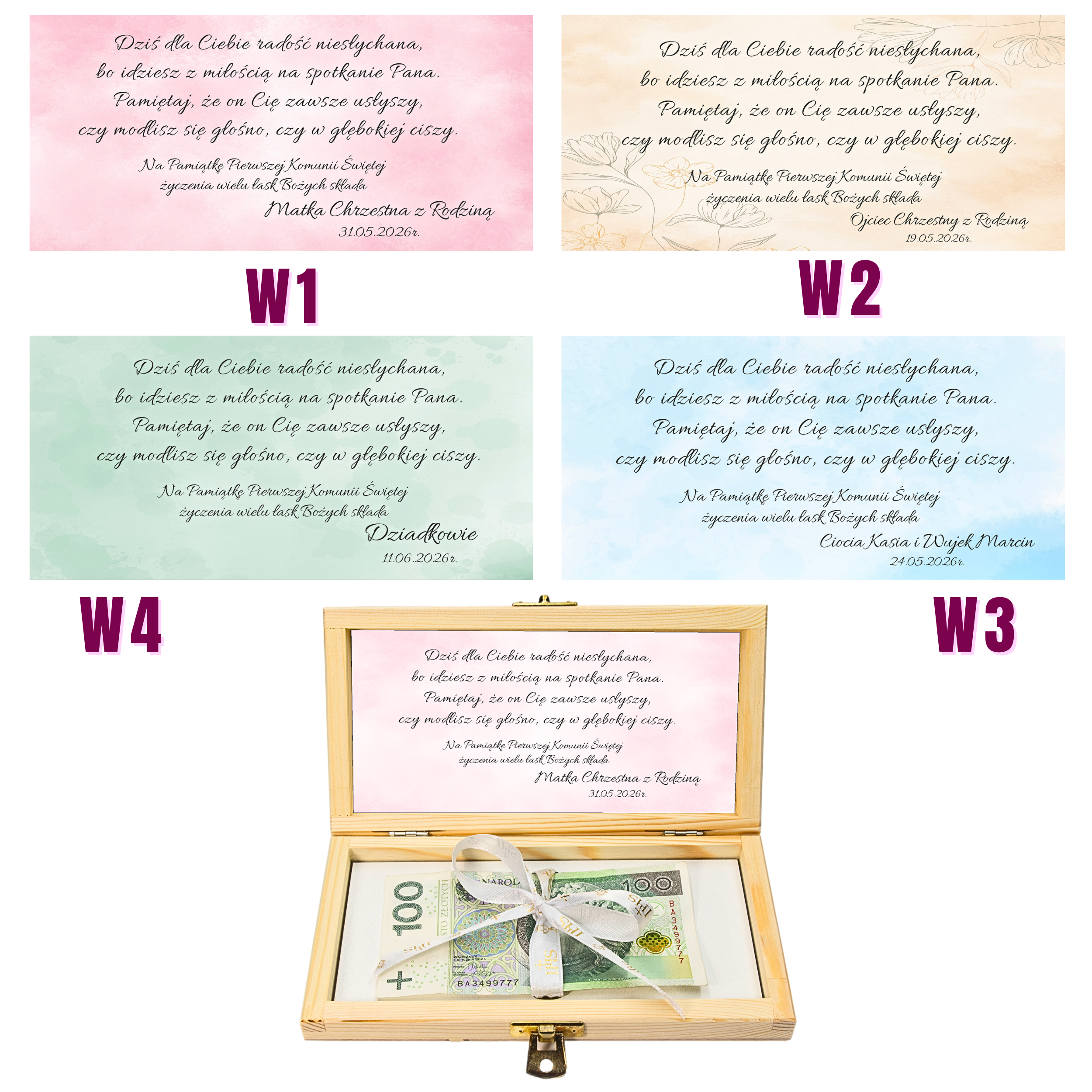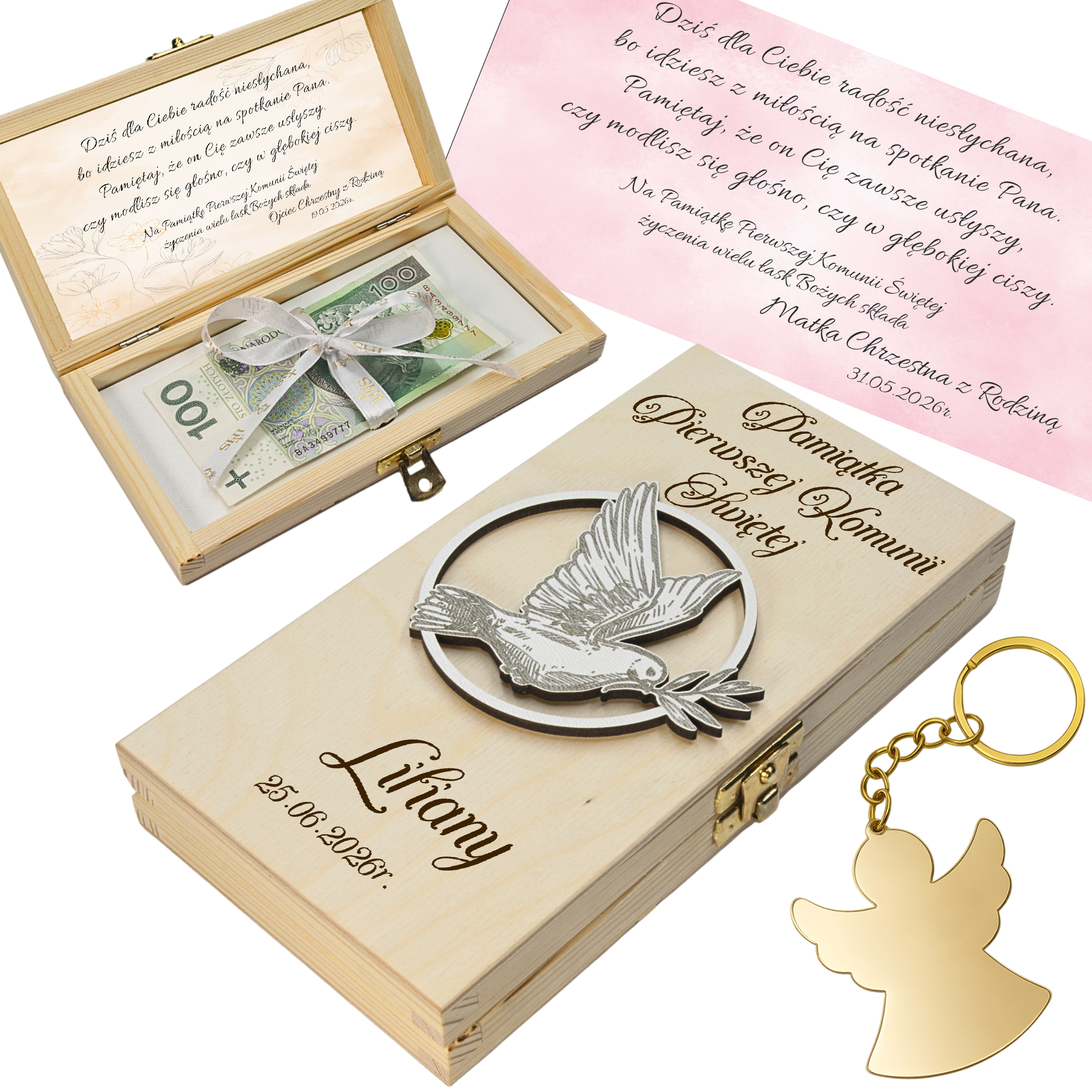 PAMIĄTKA I KOMUNII ŚWIĘTEJ Pudełko na Pieniądze KOMUNIA PREZENT na Komunię