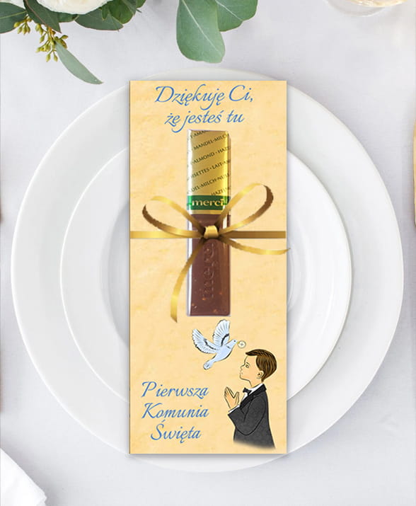 PODZIĘKOWANIA DLA GOŚCI PODKŁADKI POD CZEKOLADKI MERCI NA KOMUNIA 5 SZT