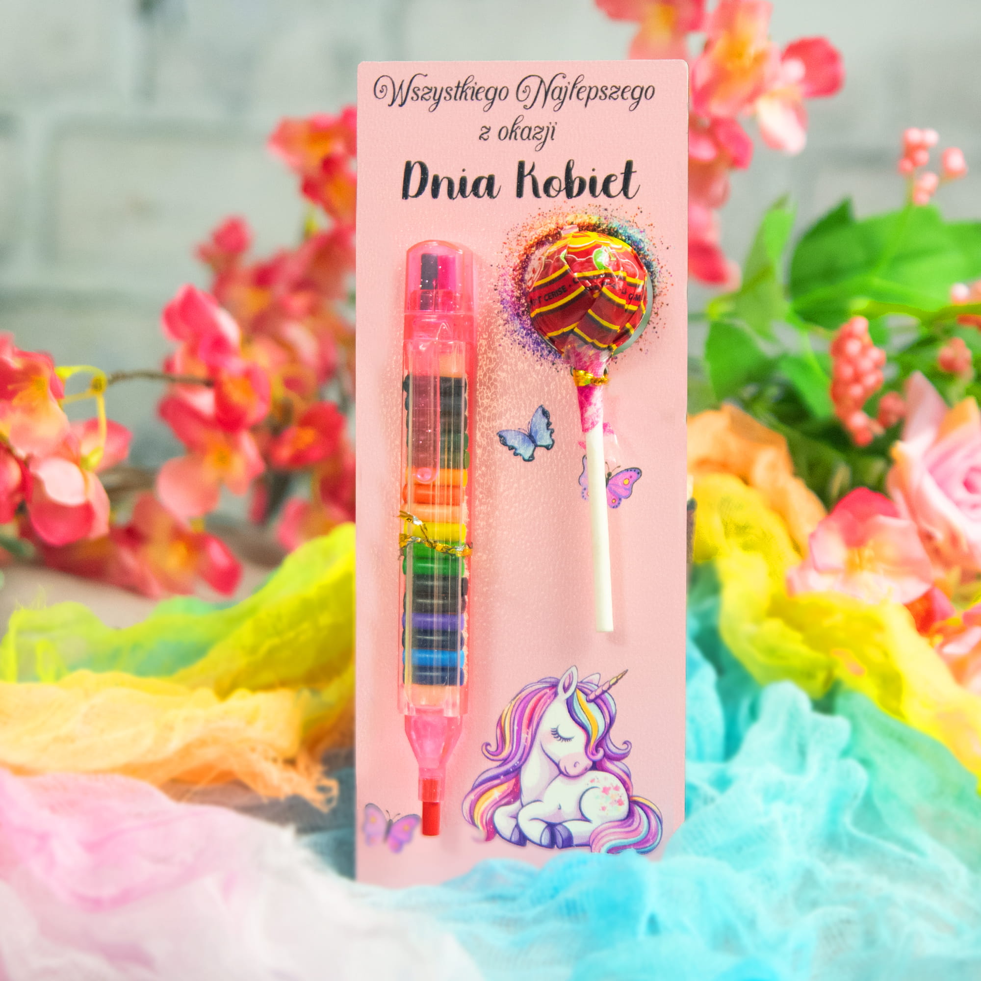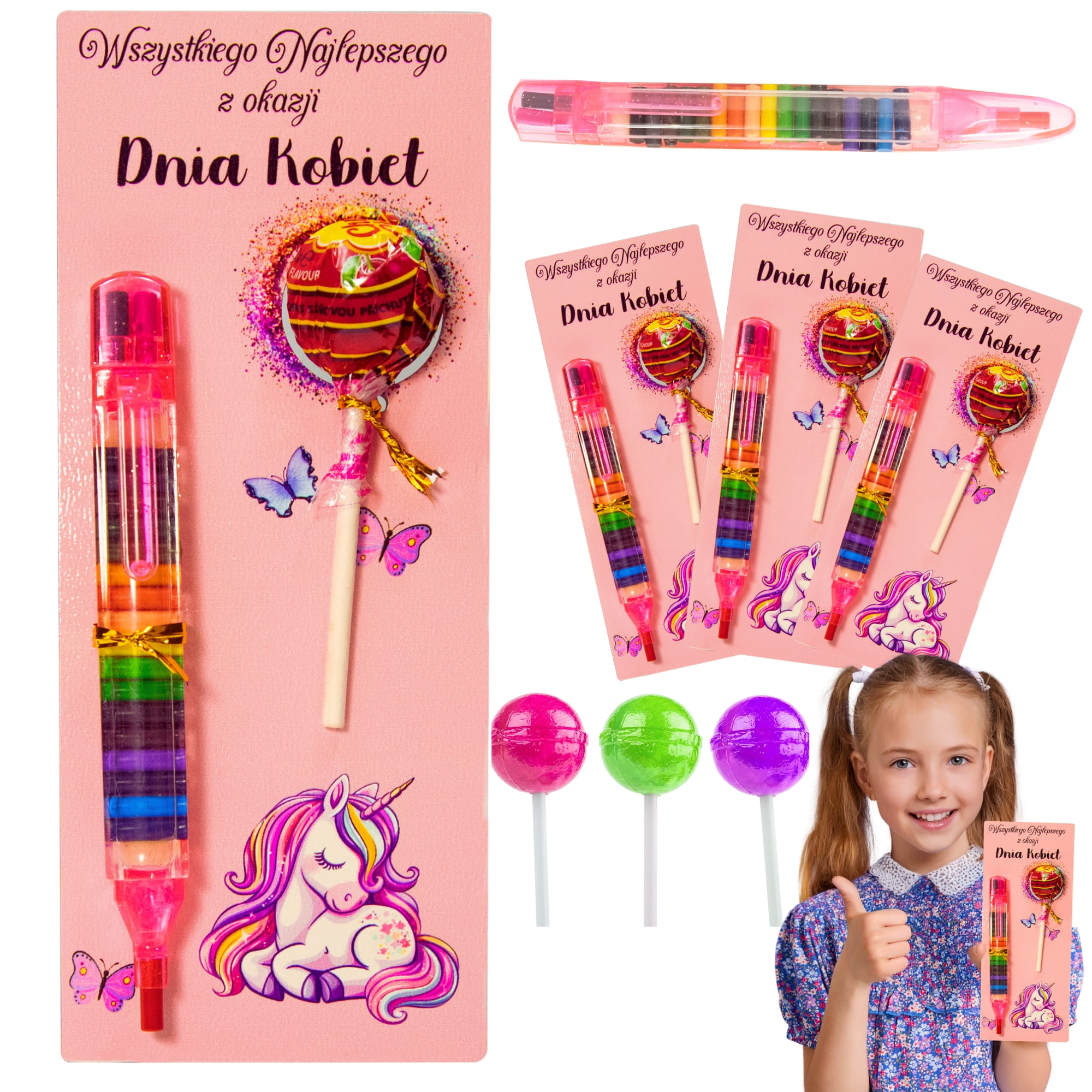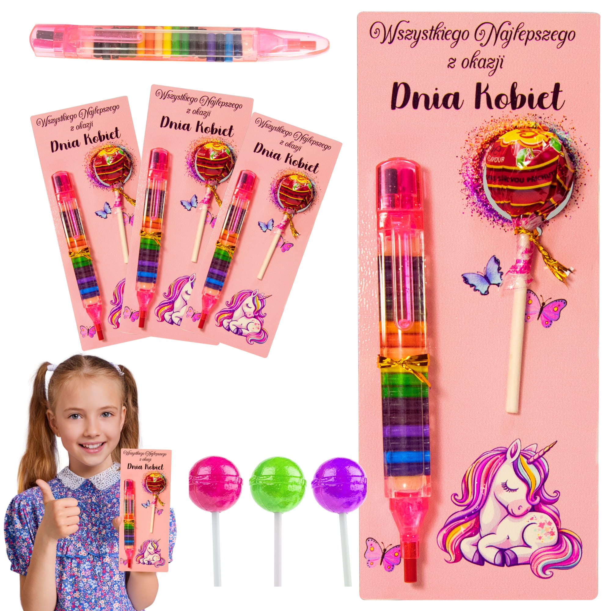 Spraw, by Dzień Kobiet stał się przyjemną i niezapomnianą chwilą. Nasz wyjątkowy zestaw, składający się z kolorowego upominku z miejscem na lizaka oraz kolorowej kredki, to uniwersalny prezent, który z pewnością zachwyci każdą dziewczynkę. Ten uroczy i praktyczny zestaw nie tylko dostarcza mnóstwa radości, ale także rozwija kreatywność i artystyczne zdolności najmłodszych.