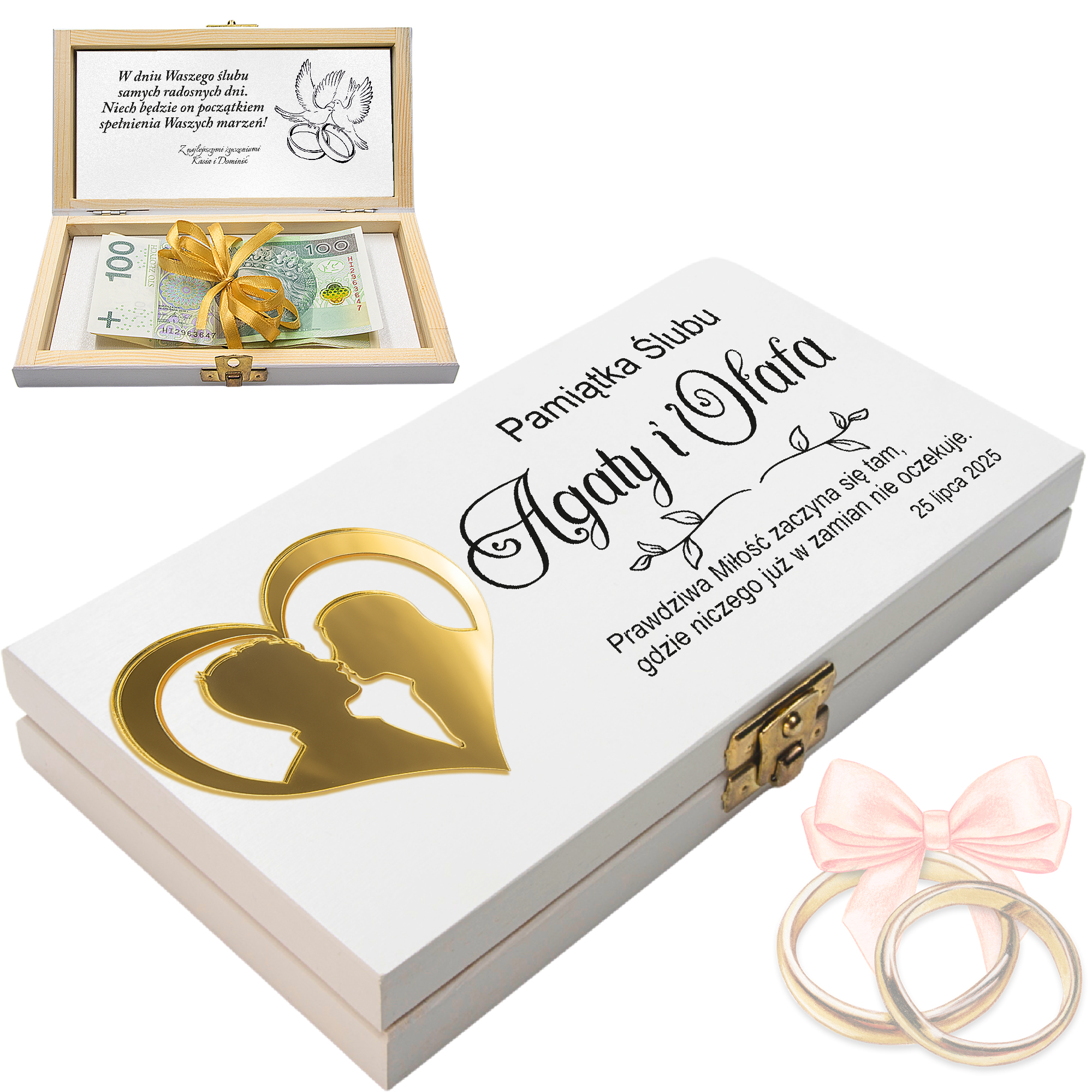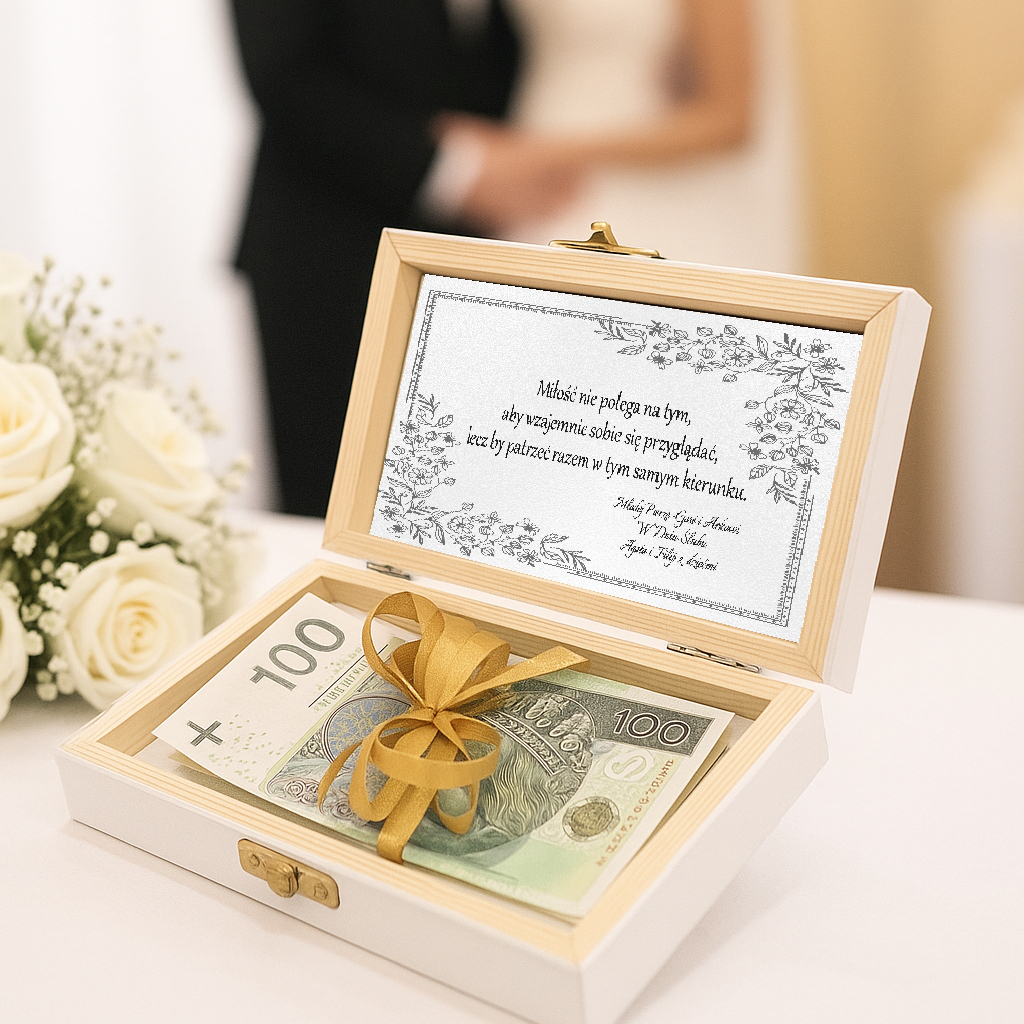 GOTOWE Personalizowane pudełko na banknoty jako idealny prezent dla Pary Młodej!