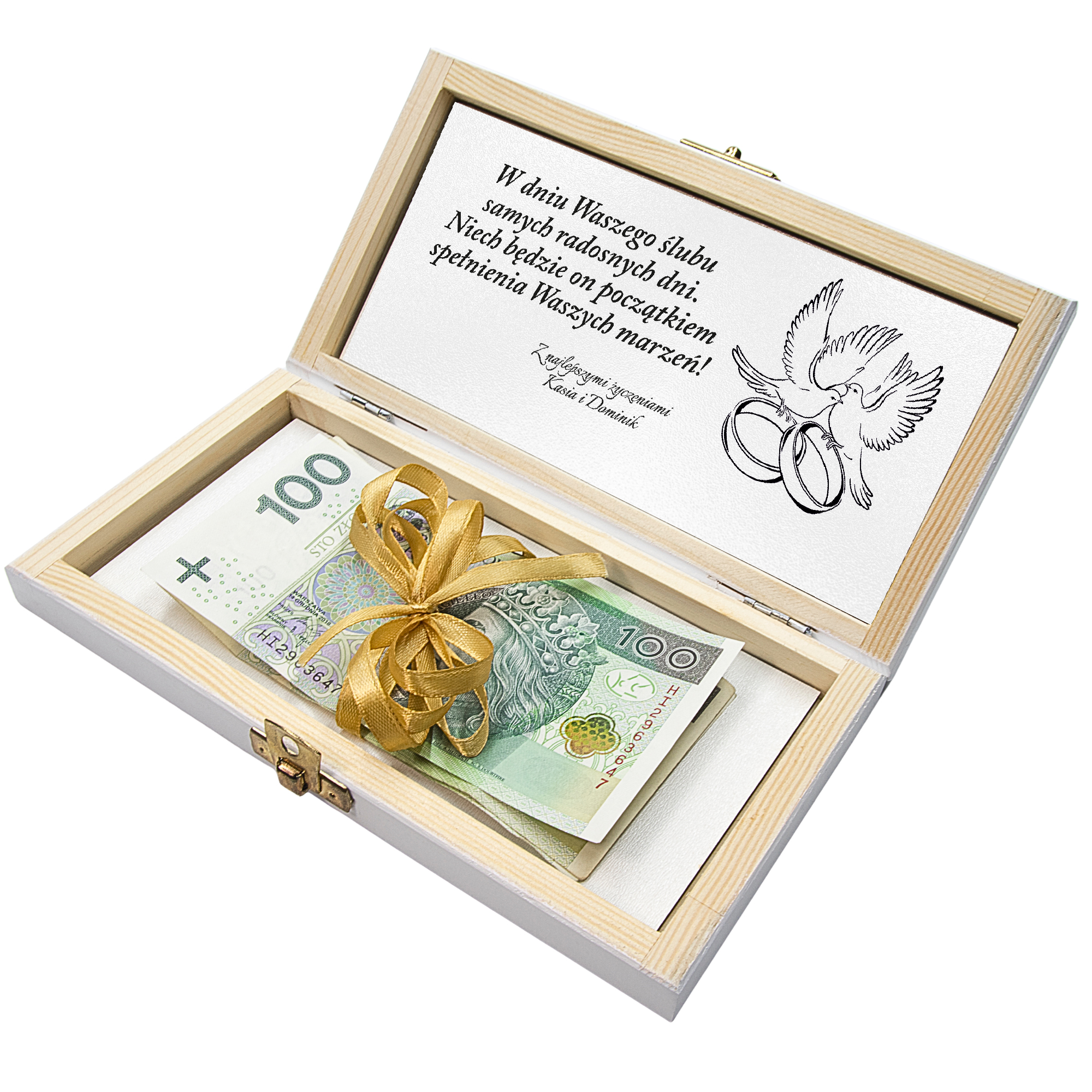 PUDEŁKO NA BANKNOTY PREZENT NA ŚLUB Wesele Pamiątka Ślubu Nadruk Życzenia